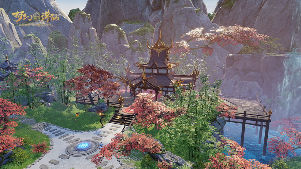 焚香谷河流纵横交错,主殿山河殿便设立于此,四周红枫环绕,土层深厚,植被茂盛,香火缥缈,好似一幅山水古画。