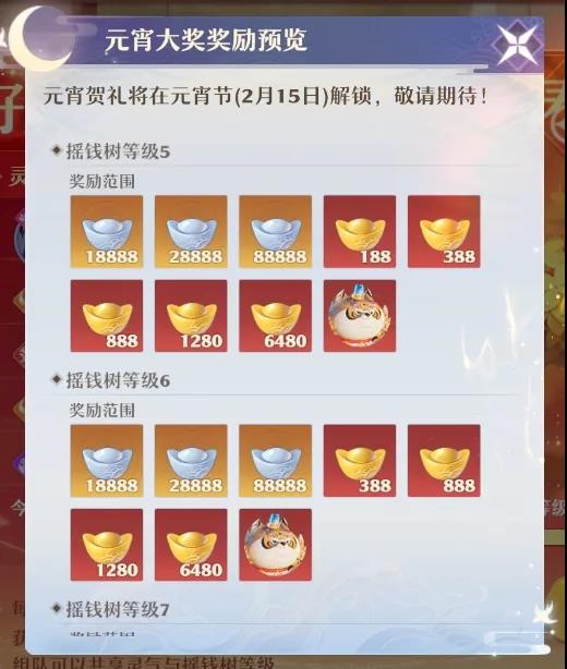 值此新春佳节之际 仙盟古植摇钱树重新焕发活动 来给各位道友发福利啦! 各位已经找到一起栽培摇钱树的小伙伴了吗? 不要慌,今天道哥就来帮大家牵线搭桥 助你找到心仪的植树小伙伴! 恭喜发财摇钱树 辞旧迎新,福满乾坤! 盟主诚邀诸位道友呼朋友唤栽培摇钱树,为其聚集天地灵气,帮助喜发财摇钱树茁壮成长,同神州万民纵享一整年的好运气!小手摇一摇,好礼抱回家! 1月27日-2月15日活动期间,道友们每日登录即可免费领取众多福利,银两、元宝、果脯拼盘、天帝果都有机会等你带回家~ 要说这摇钱树活动哇,那奖励可谓相当丰厚!不但有超多银两拿到手软,在元宵节(2月15日)登录更有元宵贺礼相送,其中包含了超多银两、元宝、神兽寅虎等大奖! 道友们的摇钱树等级越高,在元宵节当天登录能够获得的好礼也就越大! 大家可组队共享摇钱树灵气与摇钱树等级,而为了帮助各位道友找到心仪的植树小伙伴,道哥特举办【财源广进招募活动】,赶快来看看吧! |