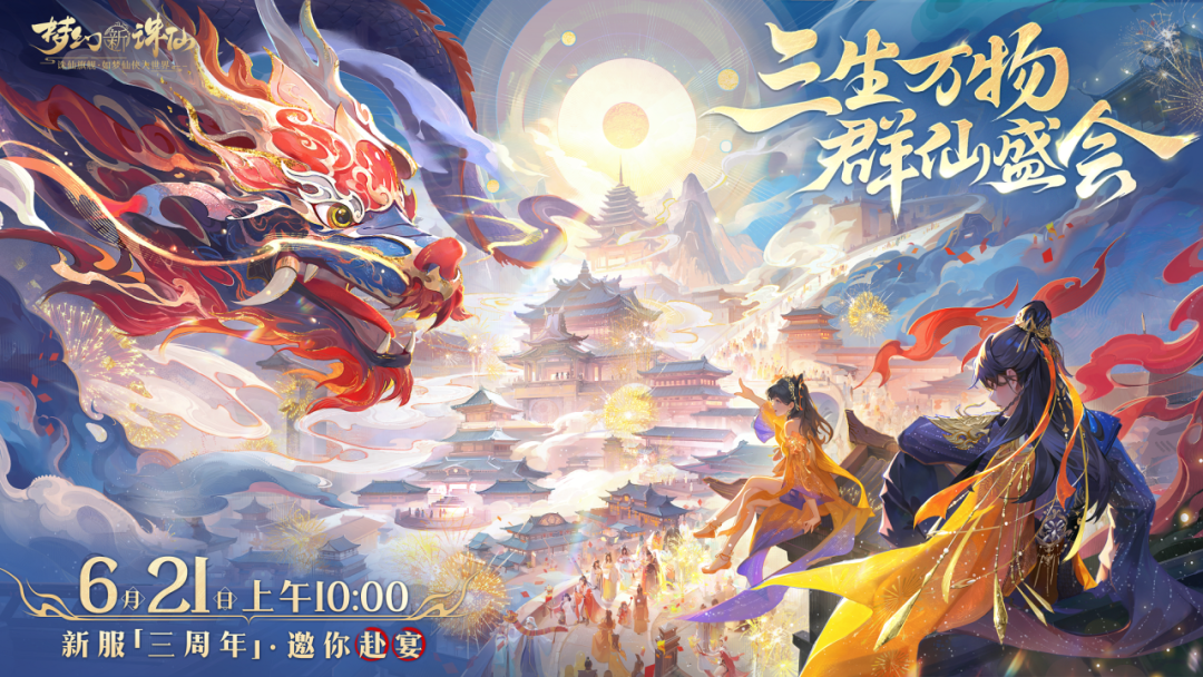 重磅 天外来客再相逢,远赴神州同庆三载之喜 昨日仙盟公开了三周年的消息,道友们喜不自胜,纷纷奔走相告。不少道友发出问询,三周年新服何时到来? 今日,仙盟再度传来好消息——新服,如约而至! 大服正式定档!6月21日(星期五) 10:00,盛大上线,恭贺三载! 一期一会的空前大典,特备众多福利,只等道友前来畅玩! 大服,自然要以“三”为重,但送给各位道友的,远不止“三重福利”! 三千元宝,周年月卡全民都送 凡是踏入服务器的道友,开服都将免费享有一个月的月卡,月卡激活期间,道友每日登录均可无门槛领取100元宝!连续30天,3000元宝直接带回家~ 三载时装,纪念外观上线就领 一周年、二周年时装2选1领回家,三周年时装直接免费赠送; 三重资源,灵玉武勋物品三倍掉落 灵玉、武勋,奖励掉落三倍开启; 三倍福气,消耗减半概率三倍返还 周年庆期间,福气消耗减半,更有概率三倍返还; 三生有幸,赏烟花抢红包得888元宝 烟花大会红包雨,天降海量元宝,静候道友领取; 三宠同乐,亚古兽小狗兽天使兽0元购 数码宝贝全家福登场!这次不仅免费送幻兽亚古兽、小狗兽,得可刮出珍稀皮肤天使兽的幻兽刮刮乐,更奉上材料让你免费进化~ 当然还有熊猫坐骑蜀道山、唐三彩与坐骑五花马免费带走,首月送行侠、每日抽神兽、任选神兽印、聚宝摇钱树等超多福利活动,同样等待道友启封! 预创角活动现已火热开启,邀道友同赴三年之约,点击【阅读原文】,完成预创角,更有额外惊喜解锁! 道友们都知道,每逢周年庆,也就意味着一年度中最大福利的版本来到。 在三周年庆之际,为了向各位道友表达最真挚的谢意,仙盟别有用心地准备了一份谢礼:全民赠送周年专属月卡! 仙盟首次全民赠送月卡,不论新老道友,无需点赞助力,不需要做任务,没有任何门槛,也没有任何套路,纯粹是实实在在的“直接赠送”。 除此之外,6月13日至6月30日,连续18天赠送三周年好礼!周年月卡、庆典家具、纪念时装、纪念飞剑、武器皮肤……衣食住行,应有尽有!这些福利,同样也没有门槛,没有套路。 为了让道友们一目了然,特呈此福利月历,还望道友喜欢三周年的福利。 ●6月13日 捕鱼玩法「跃金鳞」再临,全新「烟花璀璨」活动登场,两大活动不仅好玩,更有海量元宝奖励与多种彩蛋等你解锁 ●6月14日 营造庆典氛围感,直接赠送头像、气泡、表情 ●6月15日 资源加倍,灵玉、武勋,掉落三倍开启 ●6月16日 首度全民免费赠送周年专属月卡!凡30级以上道友,直接送,没套路! ●6月17日 周年庆典家具免费送 ●6月18日 周年庆时装、背饰免费送 ●6月19日 晚19:30,三周年主题晚会“群仙晚宴”开启,诚邀道友共同赴宴,飞天茅台、雕塑级手办等丰厚奖励届时大放送 ●6月20日之后 更有全新《数码宝贝》联动幻兽与魅灵、坐骑千乘令百连抽、拿奖拿到手软的锦鲤活动、三周年纪念飞剑、特定纪念家具…… 凡神州道友,无论是谁,都无需额外费神,都能轻松、直接地拿到这次全方位的福利。日日皆有佳礼相赠,不绝如缕,愿道友仙运昌盛。 三周年盛会,众多嘉宾纷至沓来,首先揭开神秘面纱的盛会来宾是——数码宝贝!传奇永存的天外来客,邀你继续这场华丽的冒险! 脚踏祥云,突破次元,数码宝贝再度破空而至!穿梭时空的隧道,在三周年盛会上惊艳降临,只为奔赴童年之约,与道友们同贺三载之喜。 《数码宝贝》最强人气角色亚古兽,今作为幻兽亮相神州,免费赠送,一比一还原,再现辉煌进化瞬间!届时更有限时活动,赠送材料免费进化!进化之路轻松养成~ 值得一提的是,三周年送福送彻底!仙盟为助力各位道友早日结缘数码宝贝,更有好礼相待。此外,还邀请了坐骑·加鲁鲁兽陪你踏遍神州,更有犄角兽&加布兽化身魅灵古灵精怪。 还请各位道友期待后续爆料~ 数码宝贝秘技尚未公开,敬请道友静候揭秘,拭目以待! 如今,数码灵兽与道友共同漫步在神州浩土之上,欣赏着神州浩土的壮美河山。相互扶持,共同成长,书写着属于你们的羁绊与传奇。愿各位道友在修仙之路上童真永存,快乐无边。 更多前瞻资讯,请锁定叶子猪《梦幻新诛仙》官方合作专区。 |