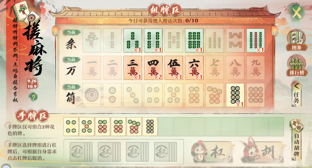 各位道友,好! 本台记者小梦为你发来报道: 近日,一女子在河阳城以一己之力打败某恶势力团伙,受到广大道友称赞,让我们一同回到现场看看。 据热心道友提供线索,该女子人称千面妖姬,在交手时千变万化,变幻莫测。 更多消息,请道友关注后续报道! 接下来,让我们将目光转向即将到来的国庆假期。 *以下内容请以游戏内实际上线后版本为准 听闻不少道友已经制定好了国庆出行路线,小梦也为大伙找好了一起出行的伙伴,还有在路途上打发时间的全新休闲玩法,让你的假期趣味倍增! 接下来,咱就一起来看看~ 道友在旅途中口渴了怎么办?别担心,小梦请来了会泡功夫茶的美少女雪芽! 全新鬼道红色仙友·雪芽,9月26日(维护后)将与各位道友见面,期待与大家一同踏上假期的旅途~ 在「麻辣好礼」中累计签到15天,道友就能免费将雪芽带回家咯! 仙友档案·雪芽 名字:雪芽 品质:绝 门派:鬼道 特点:减防降疗 密档: 与千面妖姬同时拜入千门,学得茶艺绝学。千门内讧后,流落鬼域,师从鬼医。后重回河阳,成为千面妖姬助手。 主动技能: 离魂咒 怨灵附体 魂灭九幽 黄泉归来 被动技能: 蒙顶甘露 峨眉雪芽 碧潭飘雪 蒙顶甘露:离魂咒的目标数量+1,且释放离魂咒时也会给命中目标附加[怨灵状态]。 名词解释 怨灵状态:降低物防法防。 峨眉雪芽:[怨灵状态]的效果提升,且己方单位击杀有[怨灵状态]的目标额外施加[魂灭状态],持续2回合。 名词解释 魂灭状态:受到治疗效果降低50%。 怨灵状态:降低物防法防。 碧潭飘雪:使自身和随机2个己方角色获得[碧潭]状态,特殊状态,持续到战斗结束。 名词解释 碧潭幽诀:自身倒地时,100%概率使自身触发黄泉归来,临时复活,且不会获得黄泉无归,每场战斗仅触发1次。 雪芽的茶到底有多好喝?她的茶盏中蕴藏着什么的秘密?她与千面妖姬又有着怎样的纠葛? 9月26日(维护后),雪芽驾到,一切都等着道友去细细探索! 旅途的路上无聊怎么办? 全新休闲玩法兜兜牌,你的出行好伴侣!随时随地来上一把,让快乐如影随形~ 兜兜牌的玩法十分简单:道友每一关在有限出牌次数的情况下,达成关卡所需要的得分就算过关。 展开说说,其实兜兜牌还挺考验大家的策略的。 道友可从自己的手牌中选出1-5张,构成不同的牌型,以获得更高的得分,得分的计分方式为:伤害*倍率。 而说到这牌型,就藏着不少玄机了!顺子、同花、葫芦、四条、同花顺、五条同花葫芦、同花五条……不同的牌型所带来的得分自然也是大不相同,从5分到2560分,全靠道友的运筹帷幄! 小梦建议大家优先构成基础伤害*倍率更高的牌型,打出一把同花五条,不要说轻松过关,小梦高低要炫耀个几天几夜! 除此之外,在成功挑战每一关后,可以进入商店,在商店可以购买强化卡牌,目前共有5种不同大类的强化卡牌供道友选择。 使用强化卡牌,能让自己的手牌能够组合出更高的得分哦! 小梦温馨提示:跳关不会进入商店哦~ 悠然自得地玩玩兜兜牌,就能轻松获得每日奖励与关卡奖励——兜兜宝藏。开启宝藏后,有机会获得千乘令、唤灵宝、拜帖等其中一项奖励。 此外,搜集特殊卡牌的图鉴,也能获得更多丰厚的奖励哦! 更有最高得分的全服排名奖励,红色称谓、幻彩凝露、摇光神石、遗落仙镜统统抱回家! 到了四川,不整把川麻怎么行?小梦喊你来打麻将啦! 完成每日任务获取麻将包,打开麻将包获得麻将牌,也可同好友互赠麻将牌。 将你手中的麻将牌排列组合成为胡牌牌型,就能获得奖励哦~ 更有图鉴奖励、累计奖励、排名奖励等你解锁。累积胡牌20次,还能获得限定头饰·三六九;累积胡牌25次,更能带走限定家具·竹下茗! 和小梦一起,在“杠上开花”中,共“搓”精彩时光吧。 别忘了还有咱国庆的头等大戏——全新特色服,9月27日震撼上线! 灵兽命格,定制专属套路;自在交易,畅玩赚金两不误!更多新体验正在等你,只为让你的假期更加精彩! 在国庆旅行的途中,来发现神州大地的更多惊喜吧,一切只希望能为道友的旅程添上更多趣味! 更多资讯,请锁定叶子猪《梦幻新诛仙》官方合作专区。 |