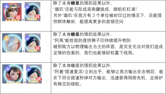 道友们好! 全新仙友 ·瞻星已正式上线一段时日啦,这位来自南疆的辅助仙友,以其独特的“星月同相”机制,在攻防两端展现出非凡的潜力,被许多道友视为改变当前竞技场环境的关键棋子。 今天,小梦将为大家带来一篇玩家深度心得,从技能机制、定位优劣到实战搭配,全方位解析瞻星的运用之道~还有?热门仙友搭配,可别错过咯! 作者:@雷天磊 *道友投稿非官方建议,不代表官方立场,道友按需参考哟~ --·【目录】·-- 1.?瞻星核心技能解析 2. 瞻星天赋加点推荐 3. 瞻星阵容组合推荐 4. 当前版本主流仙友搭配分享 核心技能解析 技能名称:星月守护 技能类别:被动 治疗门派不高于2个,可触发的全体防御光环,实战效果很明显,有瞻星在场的情况,类似“鬼东来”等物理爆发输出单位的效率会大打折扣,竞技场碰到鬼王飞机队也不那么害怕了,如果配合高速天音仙友阿禹提供狮子印的buff,那物理单位就会受到很大的限制。 技能名称:星月同相 技能类别:被动 月相期间,更加偏向于输出,配合蔓草蛊的伤害,以及20%的法防降低,为后续法师单位提供爆炸输出。 星相期间,更偏于防守反击,配合双奶,我方即使减员,也能通过高奶量稳定战局。 技能名称:星月祈福 技能类别:被动 当敌方减员或者我方减员的情况,会让大招司祭减少2回合冷却。实战中,最快第2回合,瞻星就可以先手使用“司祭”,能瞬间提供团队的血量以及血量上限,是重要机制型技能。 天赋加点推荐 满级属性 加点思路:主要以增加治疗技能为主,增加自身存活为辅。 瞻星阵容组合推荐 法系爆发流 这个战术的主要思路:利用首回合月相的蔓草蛊的伤害及20%的法防降低的buff,并配合高爆发的法系输出,尽快让对战方形成减员,并扩大己方的战局优势。 推荐仙友比较看个人爱好,道友们可以视情况自由组合。 双奶稳定流 主题要战术思路:利用星相期间瞻星治疗加成,以及星月祈福的司祭技能来组成,尤其是在对方是以物理输出为主的仙友的情况,我方生存能力更强,道友几乎可以不需要操作,直接挂机来获得胜利。 推荐仙友比较看个人爱好,道友们可以视情况自由组合。 整体来说新仙友的各方面的强度还是挺大的,推荐有资源的道友可以考虑优先培养,会让单人副本以及竞技场获得更好的游戏体验! 当前版本主流仙友搭配分享 当前单人PVP中比较常见的仙友搭配主要有以下几种: 暴力输出流-物理篇 适合主角是输出单位或者比较喜欢快速打完竞技场的玩家。 主要核心围绕鬼东来,乌娜吉,商之垒。 鬼东来提供爆炸输出清场,暴击越高,伤害次数越多最高能打8下。 乌娜吉提供识破技能,让小泥巴无所谓遁形,并且能够提供输出概率冰冻地方。 商之垒提供天道光环,对复活的单位立即使用止戈技能,并且能打出多段伤害。 以下阵容推荐,可以借鉴组合思路,目前仙友较多,玩家可以自行选择与搭配。 优点:打的比较爽快,速战速决 缺点:当前版本会受到瞻星双奶流的制约 暴力输出流-法师篇 适合主角是输出单位或者比较喜欢快速打完竞技场的玩家。 主要核心围绕瞻星,阿箬以及各种法系仙友的组合。 前文介绍过瞻星在法系阵容中的优势了,阿箬主要补充第一回合的星月歌,让输出更高一个台阶,另外第一回合有单位暴毙,也可以直接复活出手,把输出打出去,增加容错率。 法系仙友推荐:玄龙公子,单体高爆发。陆雪琪,群体爆发加概率解封。昭君,群体高爆发,奇数回合自带法连。 以下阵容推荐,可以借鉴组合思路,目前仙友较多,玩家可以自行选择与搭配。 双奶奶挂机流 适合辅助职业或者希望挂机打竞技场还能高胜率的道友。 主要核心围绕瞻星,璇玑,云怀瑾,鱼南翔。 “璇玑“在我方有3个单位被封印过的情况下,还能提供群体解封,能提高更多的容错空间 “云怀瑾“的反伤光环,可以慢慢磨死对方 “鱼南翔“的二手解封,也是这个阵容的重要组成部分 以下阵容推荐,可以借鉴组合思路,目前仙友较多,玩家可以自行选择与搭配。 |