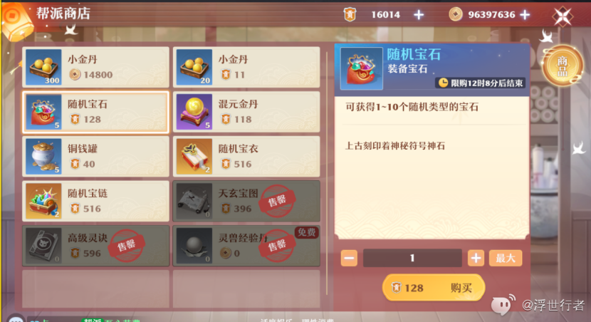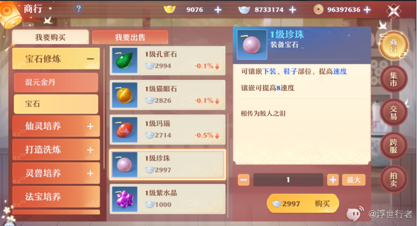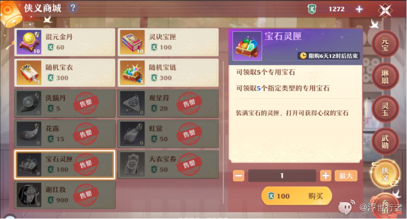 首先侠义商城和灵玉商城每周15个宝石灵匣是必须要拉满的,优先级相对较高。单纯靠这些宝石前期基本可以跟得上等级,但是后期想要升到满级还有突破显然是不够用的,所以必须在商行购买一部分才可以。