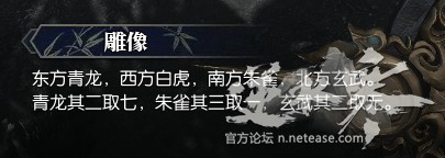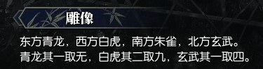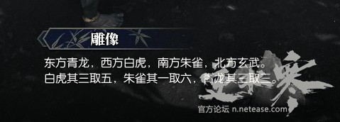 根据提示到(168,148)触发剧情 墓碑旁边 根据提示到(161,189)触发剧情 卧房阁楼门口 三个剧情看完之后打开背包任务栏,把三个宝石合成白玉,使用白玉触发剧情解锁神相 根据其他三个玄武雕像的提示:401 根据其他三个白虎雕像的提示:295 根据其他三个青龙雕像的提示:073 根据其他三个朱雀雕像的提示:681 然后想办法把四个雕像面向都转到中间触发剧情 (一定要有耐心,因为我是随便转的,只找到了一个规律,白虎只会180度转,因为另一个号没61,所以如果有需要,明天补发转雕像的攻略) 触发剧情后跟着老头走,然后回到现实,去后厨门口拿锄头(138,166) 最后挖信的坐标是(131,105) 挖出来之后把任务栏的盒子打开,给老头,就结束了,最后让你选 如果人生如果重来,你是拥有美貌、才华、体魄、财富,我选的美貌(感觉并没什么用) 从副本里出来可以选择一个称号 以上就是本文的全部内容,更多逆水寒攻略请关注叶子猪逆水寒专区。叶子猪逆水寒玩家群欢迎你的加入:711879579。 |