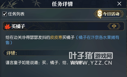逆水寒奇遇任务买橘子攻略,边关的皮皮寒在哪里?