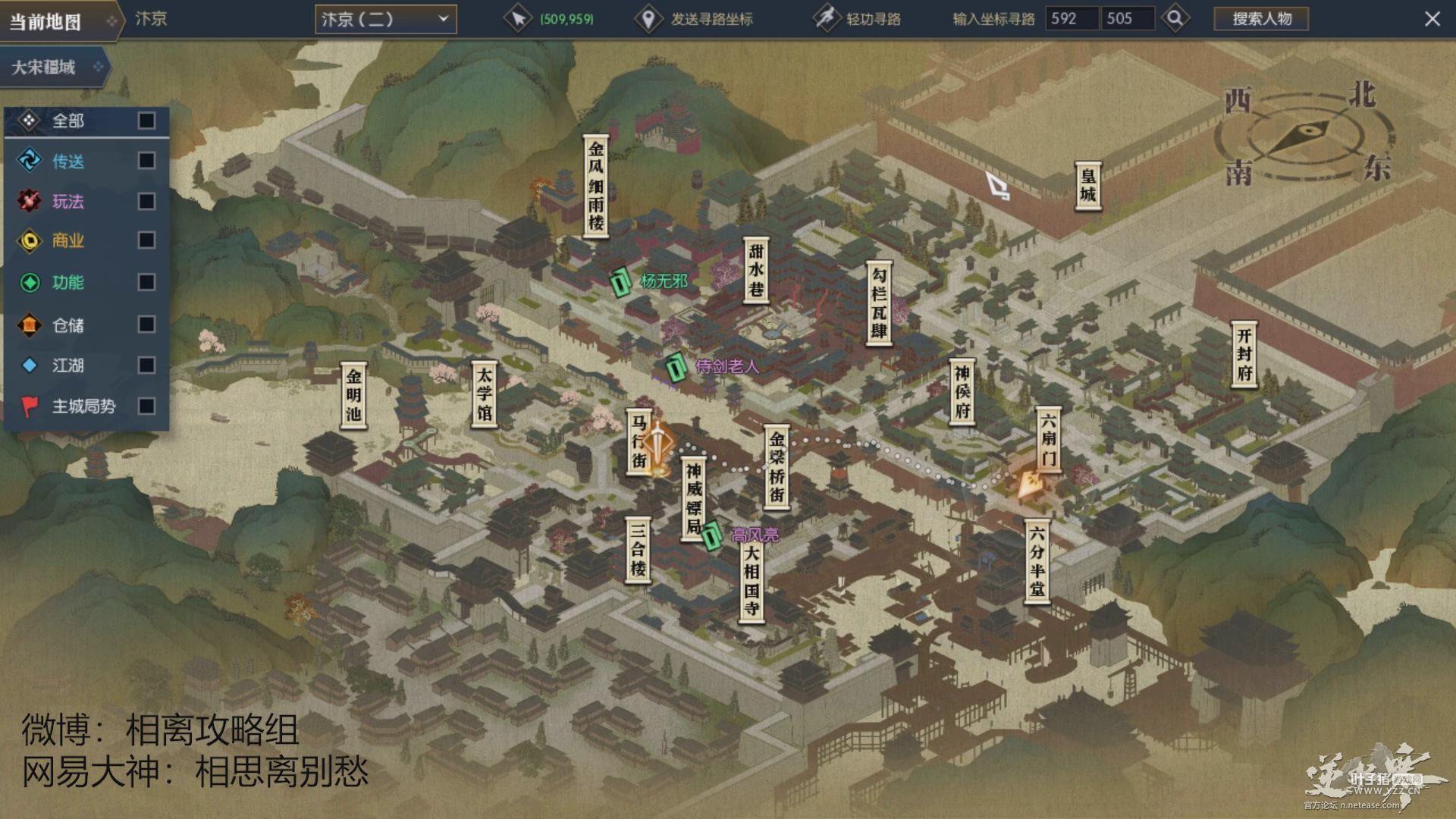 逆水寒汴河迷案支线任务怎么做?汴河迷案是目前游戏中的一个支线任务的玩法,很多小伙伴们可能还不知道这个支线任务该怎么做,今天小编给大家整理了流程攻略,以便大家查阅。 接取任务阅读线索后,前往吴大眼(709,389)。 对话后前往鲁凤儿(800,396)。 对话后前往华舟(809,667)。 对话完毕后前往杜嫂(608,718)。 对话后前往华舟(349,628)。 对话后前往马正午(800,705)。 对话后前往沙绿萝(592,505)。 对话后前往何老九(709,370)。 对话后一起跟随任务前往沙绿萝,对话后再次前往杜嫂(608,718)对话,再前往马正午(800,705)对话,再前往沙绿萝(592,505)对话,再前往杜嫂(608,718)对话,再前往鲁凤儿(800,396)对话,再前往唐实(692,496)对话。 跟随任务指引和唐实和唐夫人对话后前往沙绿萝(592,505)和何老九对话,最后前往朱月明(812,710)结案,最后跟着剧情走就完事了。 以上就是逆水寒汴河迷案支线任务攻略的全部内容,更多逆水寒攻略请关注叶子猪逆水寒专区。叶子猪逆水寒玩家群欢迎你的加入:711879579。 |