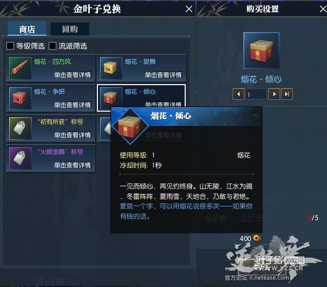 逆水寒金叶子有什么用?又在哪能找到呢?下面就给大家介绍一下逆水寒中金叶子的兑换方法,以及仙居原所有金叶子位置坐标。 兑换NPC:蒙面商人 消耗道具:金叶子 获得道具:烟花、称号(佩戴有属性) 一、找到兑换NPC 蒙面商人(1913,4581),右击金叶子就自动寻路了~ 二、兑换道具 烟花 四方风兑换消耗:金叶子2个,100铜钱 旋舞兑换消耗:金叶子3个,200铜钱 争妍兑换消耗:金叶子3个,300铜钱 倾心兑换消耗:金叶子5个,400铜钱 称号: 初有所获兑换消耗:金叶子28个,100铜钱 属性:耐力+1、身法+1 偶有所得兑换消耗:金叶子128个,1000铜钱 属性:让我在努力一下 火眼金睛兑换消耗:金叶子328个,2000铜钱 仙居原所有金叶子坐标大全: 每隔24小时刷新一次,勤快点一周。坐标从第一个开始一直依次输入下去就可以了。只要捡一次你就知道路线了。 注:如果放了几次没反应就是卡了,换线!如果到了没石头,换线! 541 814 566 745 741 777 771 747 777 911 847 857 942 871 937 932 1103 855 1059 712 1085 731 1233 650 1256 865 1191 1002 1192 1071 1259 1130 1383 865 1621 820 1623 932 1548 965 1480 1102 1456 1447 1585 1434 1726 1221 1737 1431 1832 1506 2107 1801 2114 962 2250 384 2051 417 1671 540 1153 305 1074 422 1100 479 1060 548 1010 622 860 595 以上就是逆水寒金叶子介绍,仙居原所有获取位置以及用途的全部内容。 点击加入叶子猪逆水寒玩家群QQ群:711879579。或者打开微信,扫码添加叶小猪好友,回复“14”,叶小猪将拉你进玩家微信群。 更多逆水寒攻略请关注叶子猪逆水寒专区:http://www.yzz.cn/game/nsh/。 |