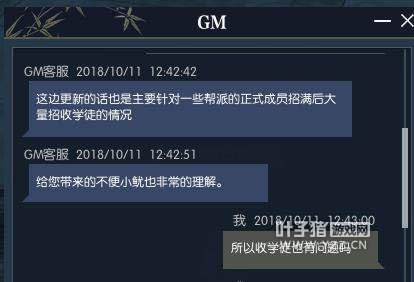 逆水寒最新维护中有一个新的改动,却受到了不少玩家的抵制,原来这个小更新却有着官方劝退的意味,下面一起跟小编来看看吧。 游戏中某帮会成员发现,帮派里的学徒,在今天上午11点钟突然集体退帮了!如此大批量同时间离开帮派,只可能有一个原因,那就是游戏在捣鬼。 随后有玩家找到了GM,GM表示这次更新之后优化了帮派系统,帮派学徒如果72小时不上线就会被系统自动逐出帮会。小编表示这个神奇的设定也是第一次见到,其他游戏顶多是帮会会长长时间不上线会被驱逐,这些学徒招谁惹谁了,最近比较忙不想打游戏了,还能被游戏直接踢走也是非常好笑。 |