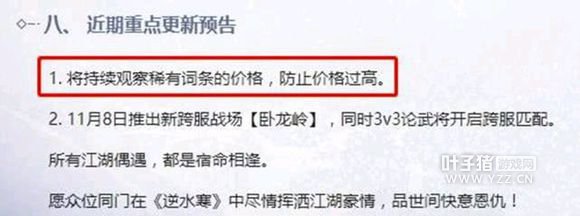 逆水寒:更新公告整治稀有词条,网友:终于开始卖稀有了?