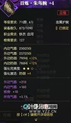 穿这件防具开“破”差不多5万血出头,相信日常本已经可以随便打了吧?在江湖挑战中已经有防御铁衣作为T的情况下,5万多血的DPS也已经满足使用需求了;普通449就楼主前面发的那个“破”的面板,除了老九得切“御”,其他BOSS只要熟悉技能轴,楼主开“破”就能够T了。(当然前提是你家的奶不是按照御铁衣的习惯来奶你。) 再说说这一套装备的好处。 1、不妨碍你在副本里打输出和日常里的T地位; 2、野外打架的时候,你可以秒人,别人却很难秒你,气盾在打架时的地位比防御和血量高的多,楼主在试剑里开破打,人头经常30+,就因为楼主可以秒人,带上金刚以后在没有素问驱散,对面铁衣不带金刚碎梦不带入梦的情况下,你的防御是比其他职业高的; 缺点:这一套装备不能做团本主T使用,除非你修炼点的非常高,或者装备不是楼主的这种低配版,是高配版3气盾双血或者3血3气盾的豪华版!除去高配版的防具或者豪华版的防具千万不能团本做主T,那是坑队友了! 2、首饰的选择 楼主用过三套首饰,一套是全元素最终大小攻力量的首饰,一套是三攻首饰,还有一套是现在正在更换的双攻双会心的镯子,戒指选择百炼戒指。楼主在一以贯之加强以后,选择了暴击流路线,堆会心。 由于铁衣的爆发招式都是一锤子买卖的多(一以贯之,开山拳),因此楼主觉得提高会心,增加这个一锤子买卖的暴击次数,能够有效的提高铁衣的输出。
