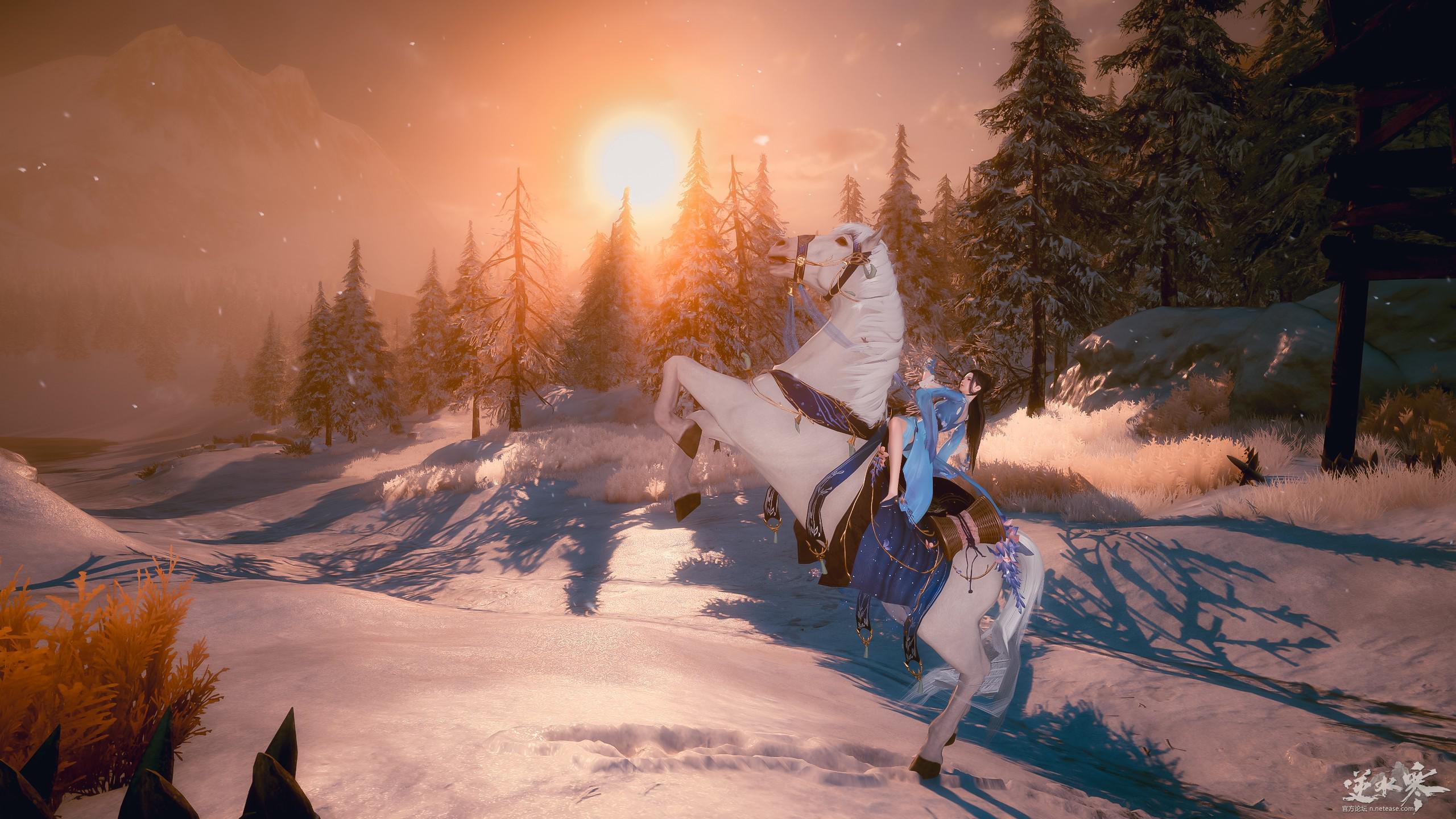 七、等待光与风 为什么会有玩家喜欢看风景?因为当你的人物停留在画面中什么都不做的时候,人物衣带翻飞,沐浴光芒之时,真的很美。在游戏中,我们不必凌晨三点就整装待发,奔赴山顶就可以享受晨间的云海晨光,不必冒着生命危险就可以看到美丽的极光。是什么在影响你觉得游戏画面美呢?并不单单是风景,还有游戏里光芒的角度,你衣带来回翻动的样子在刺激着你的心理。所以,拍下来,用连拍,一定有一张可以美翻你的朋友圈。