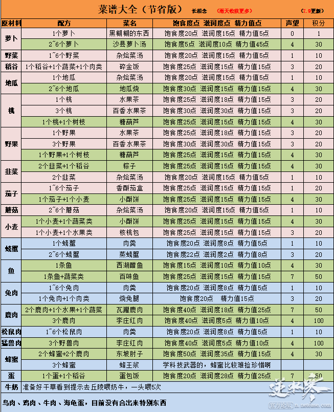 刷分的主要就是:种菜、收菜、做菜。满3天记得吃消风散隐藏牛人称号, 突然战斗状态先跳远一点然后扔技能,十有八九就是蝎子,中了就不停走或者切换角色。 积分和声望是分开的,最后结算的是积分。声望记得门口换交子哦十几万呐。 种子的参考位置。现在就是白萝卜和地瓜桃子这主要3个材料难找,找到了种下去一定要下雨天收获。