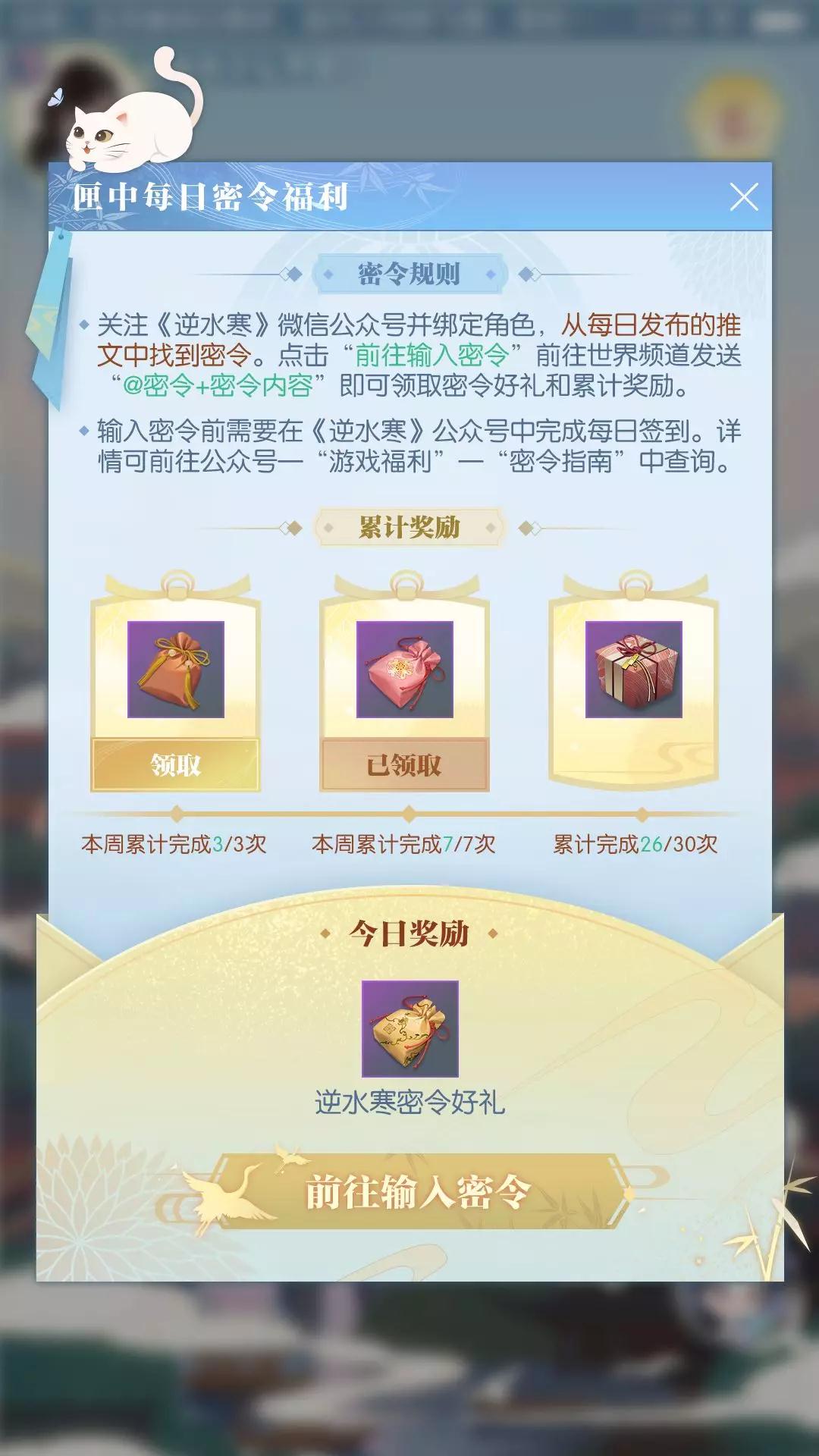 欢迎收看本周《江湖最新鲜》,我是今天的江湖主播,逆小寒。 本周会呼吸的江湖里即将出现哪些全新的面貌呢?请大家跟随我们的镜头一探究竟。 代表逆水寒美学巅峰的小本子时装再现江湖! “天下第一”第三届6V6跨服比武大会即将打响,集观战指南、服务器应援、周边福利三位一体的超级赛事宝典也讲于本周正式与各位见面。这本代表逆水寒美学巅峰的小本子,本次又会给我们带来什么样的惊喜呢?详细情况请查看今日的头条推送。 大宋江湖即将开启互帮互助时代 “人怕成名,猪怕壮”将正式成为过去式,大宋江湖即将迎来互帮互助时代!各路江湖豪杰会开启良师益友模式,助力各位同门更高效地成长,登封武林。种树、帮会活动多塞给你点钱,武林风云录、舞阳城多给你塞点奖励,这些都是小事。 【武林成名赏】系统将于本周在紫禁之巅、挑灯看剑、浮生若梦三个服务器开启测试,各位在达到不同战力阶段后,即可解锁各类道具和玩法收益提升的奖励。 云宫仙君落凡尘,神仙同款外观遭哄抢 有江湖小道消息称,前夜忽有流星划过天际,落在仙居原的海面上竟幻化成一对身着华袍,头戴发冠的男女,周身还散落点点金光。当时在场的王二丫表示:“我怀疑我看到了神仙!” 大宋神仙研究委员会得知消息后,当即动身前往事发当地,但只寻得一段桂花枝,初步判断是云宫仙君/仙子下凡。 本周更新后,真·神仙外观就要来了!以【云宫桂影】为主题的两款时装将正式登陆艮岳奇珍,双十一期间还将开启为期7天的五折限时折扣。 女款 · 【云宫桂落】 男款 · 【云宫桂落】 女款 · 【扶疏桂影】 男款 · 【扶疏桂影】 同时,购买任意颜色的新时装和发型,即可解锁相应成就,解锁后可领取奖励:游戏内首个可以自由搭配的环身特效【桂中仙】,喜欢的同门请一定不要错过! 浴血同袍难觅,跨服战场组排开放! 茫茫人海,知音难觅。在战场中,从相遇、初识,到并肩浴血的感情,何其珍贵。在大宋时空管理委员会新发现的帮助下,再也不用担心找不到浴血奋斗过的故友啦! 本周更新后,服务器概念将进一步弱化。好友列表新增分组【跨服好友】,并可邀请跨服好友一起匹配【卧龙岭之战】、【试剑天下】战场。 出门在外,密令好礼也能一天不落 小寒,我一个月出差10天? 小寒,我下个月要去度蜜月? 小寒,我把电脑弄坏了! 这些问题再也不能能为各位领取密令好礼的阻碍啦!明日更新后,大家即可在“匣中逆水寒”APP中领取密令好礼。各位同门可以点击 “聊天——左上角密令图标”,前往世界频道发送“@密令+密令内容”即可领取密令好礼和累计奖励。 就是这只小猫咪 同样,输入密令前需要在《逆水寒》公众号中完成每日签到。 世界很冰冷,会呼吸的江湖给你温暖 大宋关爱单身计划本周正式启动!只要你想,师兄/师姐就会从三清山赶来,陪你吃喝玩乐一整天,回忆儿时温情故事。 “长相伴”任务将从本周四起,无门槛限时开放两周!无论你有没有情缘,是否单身,都可以触发。光棍节送温暖活动结束之后,“长相伴”任务依然也能单独触发,但需要和师兄/师姐的好感度达到一定程度才行。 点击加入叶子猪逆水寒玩家群QQ群:711879579。或者打开微信,扫码添加叶小猪好友,回复“14”,叶小猪将拉你进玩家微信群。 更多逆水寒攻略请关注叶子猪逆水寒专区:http://www.yzz.cn/game/nsh/。 |
