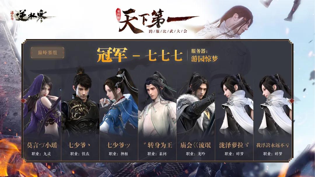 逆水寒:恭喜“七七七”战队夺得本届“天下第一”跨服比武大会巅峰组冠军!!!