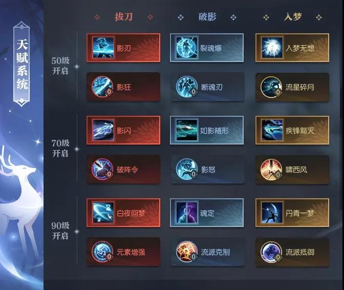 6月24日,全新两周年资料片“万变不离玄机”就将闪亮登场啦!除了重磅级新职业【玄机】登场,我们还将为诸位自在同门们,带来了全新的【流派天赋系统】,让大家感受到免费、自由且具有特色的颠覆性改变。 上回聊到了碧血营弟子们全新的天赋的系统,今天,镜头转向谪仙岛,逆小寒就为大家带来龙吟与碎梦这一对刀剑双绝的流派天赋介绍! PS:当前各天赋还在测试优化中,在上线后也会根据各流派情况进行动态调整。 龙吟流派将有三条天赋特性路线可供选择:强化长剑让招式更加灵动的【长剑破云】;强化重剑让剑势无人可挡的【重剑如虹】;还有强化剑心以剑气克敌的【气剑凌风】,无论何种剑招,都饱含了龙吟的武学至臻。 龙吟天赋系统界面 长剑破云 龙吟流派天赋 长剑过耳,翩若惊鸿。【长剑破云】系列天赋,提升了单体和中距离的输出能力。让龙吟在PVP环境下,变得更加犀利! 天赋特性【感电】能使轻剑龙吟容错率更高,在放【惊雷】时,自动找到离自己最近的气剑,并瞬间穿梭至气剑位置,并且造成额外的雷元素伤害。此招能让龙吟更快速的实现惊雷穿梭,化身闪电侠。 ![]() 【风啸苍穹】可以让龙吟的技能【吟风】获得更高的中距离范围伤害,技能将从两段变为五段招式,每一段的伤害逐步提升,每一段吟风都可以给目标附加一层剑气爆炸效果,当叠加至五层时触发爆炸伤害,且吟风过后的剑意追击会引爆沿路的气剑,再次带来伤害。 ![]() 重剑如虹 龙吟流派天赋 力拔山兮气盖世。拥有【重剑】系列天赋的龙吟,将获得重剑系技能输出的全方位提升。无论是PVE还的PVP场景,都能感受到明显的增益效果。 天赋特性【剑斩天罡】能进一步提升龙吟【破空】技能的输出上限,点选此天赋后,使用【破空】后的【剑意追击】行动将发生变化,龙吟高高跃起,在正前方插下一柄雷电大剑,造成超高的大范围伤害。 ![]() 【雷霆万钧】可令龙吟施放技能【残月】后的【剑意追击】,在圆形剑气场中将不断召唤落雷攻击并眩晕区域内敌人,若是落雷累计劈中3次敌人,圆形剑气场的半径与持续时间也会得到提升。该天赋特性不仅可以提升龙吟的持续输出能力,还能在必要时刻起到分割战场的作用! ![]() 气剑凌风 龙吟流派天赋 【气剑凌风】系列天赋的龙吟,就是战场上最可靠的援军。该天赋系列可极大增强龙吟的续航能力,更能够有力的强化队友、支援保护队友,试问哪个队友不喜欢这样的龙吟呢?在所有需要龙吟持续输出和辅助队友输出的情况下,都是相当重要的存在。 其中,天赋特性【雪映星辰】可使得龙吟辅助性提升,点选该天赋后,技能【逐星阵】的范围扩大、冷却时间变短,还能提升全队的输出能力,是战场上可靠的帮手。 ![]() 【偃武息戈】天赋能提升【二段·止戈为武】的响应范围,原先冲向队友后将击退敌人的设定改成了直接击倒敌人一定时间。该天赋不仅可以提升龙吟的保护能力,还可以增强龙吟的控制能力。 ![]() ![]() 碎梦流派将有三条天赋特性路线可供选择:专注拔刀流追求刀意绵绵不绝的【拔刀】;专注于影子流追求一击即殇的【破影】;让输出爆发提升的【入梦】。天赋在手,碎梦十步杀一人,千里不留行。 碎梦天赋系统界面 拔刀 碎梦流派天赋 挥刀间,樯橹灰飞烟灭。拥有【拔刀】系列天赋的碎梦,将获得更加强力的持续输出能力,在PVP团战和PVE副本中,生存能力和远程伤害输出都将大大提高。让碎梦变成人人恐惧的存在。 ![]() 该天赋特性【影刃】将为碎梦带来全新的操作和玩法体验。技能【碎影连击】将变为原地向前挥斩一刀,造成伤害。释放2次【碎影连击】后下一次【碎影连击】会变成释放影子向前冲砍,对敌人造成伤害和浮空控制效果。【碎影连击】使用后可获得1层破防效果,最多可叠加5层。另外,【无尽·灭】和【影摄魂】生成的影可以模仿天赋改变后的【碎影连击】。 ![]() 【影闪】天赋能让【无尽·闪】变成停留原地,并向前方释放一道影子,对敌人造成伤害,【无尽·闪】刃绝效果强化成必定跳过下一连击的状态。例如当前碎梦处于“刃”状态,释放【无尽·闪】后立即进入“梦”状态,碎梦输出得到强化。 ![]() 破影 碎梦流派天赋 拥有【破影】天赋的碎梦,追求极致的输出巅峰。该天赋系列将强化影子,将碎梦的输出提升到最大值。一切需要输出的PVP团战和PVE副本中都适宜他的存在。 天赋特性【裂魂爆】可以提高影子的伤害输出,在碎梦的所有影子在消失时,会对周围敌人造成小范围爆炸伤害。 ![]() 【如影随形】则可以在碎梦释放【荆轲现匕】后,生成一个影,模仿荆轲现匕,对敌人造成伤害,并造成减速效果。该天赋特性能提高碎梦的输出伤害,降低敌人的逃脱能力。 ![]() 入梦 碎梦流派天赋 夜阑卧听风吹雨, 铁马冰河入梦来。碎梦的第三个天赋系列【入梦】同样适用于PVP团战和PVE副本之中,该系列天赋让碎梦连招更连贯、还能提高爆发输出能力。 该系列的【入梦无想】天赋,能使得技能【入梦之光】主动使用后一定时间内“白刃入梦极”连击状态不会中断,并且主动使用后增加周围队友移动速度。通过这项天赋,碎梦不仅更加容易获得“白刃入梦极”心法效果和“千一”拔刀斩伤害,而且能提升整个团队的增益效果。 ![]() 而【丹青一梦】能提升碎梦的爆发输出,在技能【碧血丹青】对命中的第一个敌人附加【一梦千一】梦