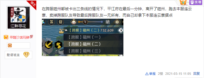 要说最近在逆水寒里,大家最关注最感兴趣的是什么,那答案肯定是跨服据点战了。为了名声和奖励,以帮派为单位的战斗一旦爆发就不会轻易结束。在可容纳千人乱斗的战场里,谁的实力强谁就是老大。可这两天,却有几个在自己服务器里实力最强的帮派成了笑柄,到底是怎么回事呢?让我们一起来看看. 问鼎天阙卡线失误,最后只拿了一个4分点 相信笑若扶风被蒙在鼓里,满怀信心和深蓝一起挑战陌上却被吊打的故事大家都已经耳熟能详了,而笑区长也因此被称为“鼓区长”。而此事过后,鼓区长也是重振旗鼓,下午5点就带了7个团的工作室进行卡线,看样子对这次据点战是势在必得。然而,卡线获得的人数优势并没有让天阙轻松成功,不久后还是被打的溃不成军,转而去拿了一个4分点。 而这样的表现也让玩家们表示:你要早说天阙就想要一个4分点,也不至于陌上拉敌对啊!不得不说,这句话伤害不高,侮辱性极强!谁不知道当初天阙是如何自信挑衅陌上的,这不是赤裸裸的打脸吗? 还有更加过分的玩家直接把天阙帮派宣传片里的片段拿了出来,把“他们真当我笑若扶风死了吗”改成了“他们真当我笑若扶风是个鼓吗”,还给笑区长的头P成了个鼓,真的是太讽刺人了!气势汹汹的九州风雷第一帮问鼎天阙落到这个下场,成了群嘲的对象,真是世事无常! 平江府玩背刺抛弃队友,偷拿本服连云寨据点 平江府是紫禁之巅比较有名的帮派之一了,在这种跨服据点战肯定是要努把力的。在这次跨服据点战中,平江府和队友皓月从一开始就陷入了血战,打得不可开交,就连磁州都卡出了三线,好不容易守住了一个2分点,在最后时刻平江府却离开了磁州,回到了本服连云寨。而跨服据点的队友们也因为这波卖队友没能守住,最后两手空空。 除了对平江府的嘲讽之外,玩家网友们对皓月的心疼也溢于言表,猪队友把人拉回本服了,他们拿了奖励,自己辛辛苦苦打了一晚上被队友背刺了,真是太惨了。果然是不怕神一样的对手,就怕猪一样的队友啊! 不得不说,这事干得确实是有点缺德,尤其是平江府的风评本来就不是很好,总在贴吧与人打嘴仗,而这一次背刺队友也让玩家调侃:平江府最后应该是去守贴吧据点了吧?这届网友夺笋啊!平江府这一次可真成了广大玩家口中的笑料了! 跨服据点战是一个帮会对抗的玩法,“双拳难敌四手”以及“人心涣散,一盘散沙”这两句话不是没有道理的,除了要有足够好的队友以外,同时也要同进退,否则只会一无所获,甚至害人害己!那么,大家对最近跨服据点战的结果有什么看法呢?来聊聊吧~ 点击加入叶子猪逆水寒玩家群QQ群:711879579。或者打开微信,扫码添加叶小猪好友,回复“14”,叶小猪将拉你进玩家微信群。 更多逆水寒攻略请关注叶子猪逆水寒专区:http://www.yzz.cn/game/nsh/。 |