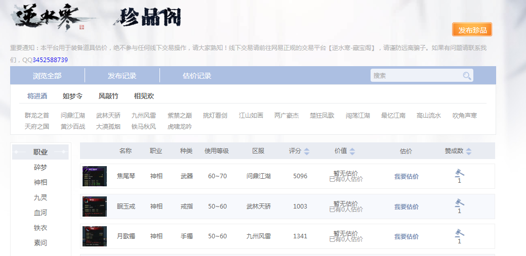 不久前万众期待的逆水寒正式上线,由于是新游而且人气颇高,导致逆水寒铜币价格一直高居不下,所以绝大多数玩家在获得装备之后都选择卖掉来赚取外快。 那么问题来了,自己的打到的装备到底能卖多少钱? 上贴吧?上论坛?苦苦在线等待大神回复?不仅费时而且费力,大多数都是吃瓜群众,只为看热闹而来。很多时候都得不到自己想要的答案。 不过,叶子猪逆水寒珍品阁上线了!!! 逆水寒珍品阁是逆水寒装备道具估价平台,由玩家团为广大逆水寒小白用户提供装备道具估价。在线评估你的珍稀装备、道具,查看相似装备的价钱,查看本区神豪装备属性。一切你想要的都能找得到。 逆水寒珍品阁专区地址:http://www.yzz.cn/game/nsh/zpg/ 赶紧前往试试吧,谁用谁知道! 点击加入叶子猪逆水寒玩家群QQ群:711879579。或者打开微信,扫码添加叶小猪好友,回复“14”,叶小猪将拉你进玩家微信群。 更多逆水寒攻略请关注叶子猪逆水寒专区:http://www.yzz.cn/game/nsh/。 |