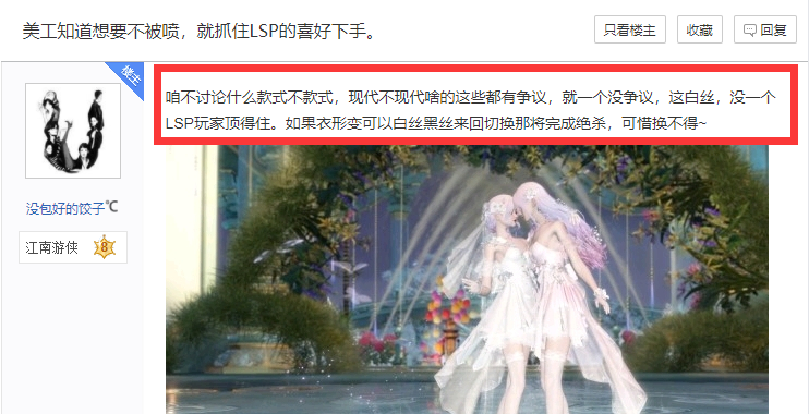 听说《逆水寒》最近又在疯狂晒“新女儿”,原来是刚上线的520特典婚纱盒子,新外观、新白发让玩家又开始沉迷捏脸染发,甚至支持跨性别使用的双人动作银霄尘梦,也被玩坏了,比如策划就示范了可以用来跟“秃头”男号甜蜜互动? 《逆水寒》这套被称为“520婚纱套”的【女·银霄纱月】、【男·银霄坠星】高定礼服真是绝了。整体色调上,纯净白色十分亮眼,简单而不失高级。从细节上来看,恰到好处的剪裁让肩颈线和锁骨格外地养眼,装饰花纹更是增添了几分惊艳,轻盈蓬松的婚纱穿在身上真就像是仙女一般,男款则是大气绅士风十足。 原本玩家还担心这次的时装质量一般,结果……真香!这么显身材的婚纱,从衣服材质、颜色还有头纱各方面来看,有玩家表示:是我梦中的婚纱了。 当然,婚纱主题外观引来好评,在设计上网友也有了自己的一些想法,比如有提到黑色会不会更好看,有白丝怎么可以没有黑丝呢?直言:爷要黑丝!这个就要看后面策划大大的想法了,玩家呼声这么高的话,万一说不定还真的会推出黑丝? 不过也有路人玩家认为,《逆水寒》是一个武侠古风MMO游戏,为什么要花里胡哨整这么“违和”的时尚婚纱外观,笑称这难道是“我在大宋穿丝袜”,而且外观蝴蝶特效,一看就有种QQ飞车、QQ炫舞的既视感! 针对婚纱外观白丝黑丝的设计,更有网友直指:这难道是美工为了迎合LSP喜好?毕竟这白丝,没有一个LSP玩家顶得住。 《逆水寒》婚纱套有赞不绝口的玩家,自然也会有反对、吐槽的声音,不管是认为现代婚礼穿越到大宋江湖中有违和感,还是认为有新意,白丝婚纱简直太香了,都是萝卜青菜各有所爱吧,很难说一套时装的设计能满足所有人审美。 除了衣服绝美之外,《逆水寒》这一次推出的新发型也受到了集体好评!染色各种发色都十分惊艳百搭,长发和短发也有各自的气质,随便一搭就像玛丽苏言情女主。 以至于妹子都要开贴提问:家人们二选一,到底要选哪种发色?到底要长发还是短发?毕竟都太好看了,这可真是幸福的烦恼! 最后要提到的,就是被网友玩坏了的双人动作!这套时装可以解锁双人互动特定动作“银霄尘梦”,在任何时间任何地点享受浪漫的公主抱,而且一向以“会玩”出名的《逆水寒》策划,还脑洞大开设计了“不限性别”,支持跨性别使用的设计! 这下,金兰姐妹“丝滑公主抱”,猛男兄弟“基情满满戴头纱”等骚操作都被开发出来了,除了情侣CP,所有玩家都可以与“最喜欢的人”享受浪漫时刻,逆水寒官方还是蛮懂的。 今天就跟大家聊到这里,对于【银霄纱月】婚纱盒子你怎么看?看了这么多小姐姐的婚纱礼服返图,你是不是也心动了呢?欢迎留言与我分享,来聊聊你的看法吧! 未经作者或本站授权,一律不可转载,违者当追究法律责任。 点击加入叶子猪逆水寒玩家群QQ群:711879579。或者打开微信,扫码添加叶小猪好友,回复“14”,叶小猪将拉你进玩家微信群。 更多逆水寒攻略请关注叶子猪逆水寒专区:http://www.yzz.cn/game/nsh/。 |