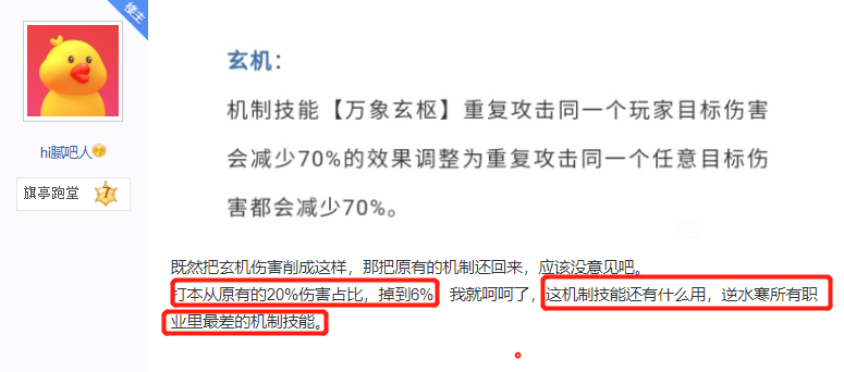 《逆水寒》新职业鸿音上线,三周年资料片“武林盟主”带来更多变数,从玩家的视角来看,其实是更想知道该不该转职鸿音?现版本各个门派会有怎样的影响?而其中,当属玄机玩家的声音最为激烈,一起来看看是怎么回事! 首先,对于网游来说,推出新职业肯定是玩家最为期待的,第九职业新门派鸿音,既有强大的辅助能力,又有迷惑敌人给队友传达BUFF的控制能力,加上角色异域风格演值超高,因此会有一波“转职热潮”出现也不是什么奇怪的事情,只要游戏做好职业平衡调整优化,每个职业都能玩出花来! 不过那“别人家的热闹”,对于最近PVE/PVP被“砍了一刀”的玄机来说,就显得有些难顶了。最新的改动公告中可以看到,玄机的机制技能【万象玄枢】从重复攻击同一个玩家目标减少70%的伤害,调整为攻击同一个人以目标伤害都会减少70%。 通俗来讲,以前【万象玄枢】只有重复攻击同一个玩家伤害才会减少70%,而现在不管是对BOSS输出又或是在联赛里推塔,只要重复攻击任意目标伤害都会减少70%。 有玩家测试过,在削弱之后被动从以前的20%的伤害占比掉到了6%,玩家们表示:这波削弱可能主要是想砍一下玄机的联赛拆塔,不过这样一来PVE的输出也大大降低,这也引得许多玄机玩家表示:这波直接血流不止,这机制技能还有什么用?这不是逼着我们玄机冲到人堆里面输出吗? 玄机玩家们都在打抱不平,可是有的玩家却提出了不同的看法,表示玄机一直以来PVE的输出都是独一档的存在,哪个亮了按哪个就能打出最高输出,机动性还那么强。削几下不是很正常吗?同为远程职业的神相跟玄机比就是个弟弟。 除此之外,还有玩家分析,这波削弱玄机,除了玄机本身表现过于强劲之外,其实可能是为了给“新大哥”鸿音让路?这个当然是玩笑话啦,新职业并不会影响其他职业玩家PVP上的体验,相反还会给PVP战场带来更多好玩的对局,开发出更多新套路。 就像一些已经转职了鸿音的大佬所说的,鸿音这个新职业其实也有短板,技能范围真的大,打了20分钟左右能够刷出9400W左右的伤害,特别能蹭助攻,报名能力也挺强的,机动性更是不弱,但是这是打群架的体验,1V1鸿音可就不见得有优势了! 在PVE方面,此之前龙吟站桩打能打出15.5W的秒伤,鸿音最大程度上,测试出来也只得到了12W秒伤。偏功能型辅助,团战辅助加指挥,打帮战真的强,这个应该算是鸿音比较中肯的实测评价,大家可以参考一下,好不好玩,其实是看你怎么玩,专注于玩哪种玩法,每个职业都是相对而言的,有强势之处,自然也有短板。 今天小编就跟大家聊到这里,不知道大家对于新职业鸿音有什么看法呢?对于玄机这次削弱又作何见解?欢迎在评论区中留言! 点击加入叶子猪逆水寒玩家群QQ群:711879579。或者打开微信,扫码添加叶小猪好友,回复“14”,叶小猪将拉你进玩家微信群。 更多逆水寒攻略请关注叶子猪逆水寒专区:http://www.yzz.cn/game/nsh/。 |