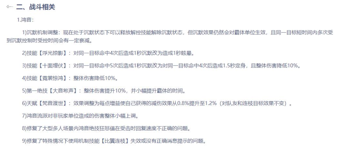 《逆水寒》新职业鸿音上线之后,在战场中的表现并没有让玩家失望,甚至还让一些被挨打的玩家,大呼“鸿音不削,天理难容”。今天小编就带大家一起来看看,新职业鸿音在到底有多强吧! 首先先来了解一下鸿音在战场里的定位,鸿音虽然没有爆发、治疗能力也没有达到很出色的地步,但是鸿音有着范围极大的AOE输出技能以及极强的控制能力(沉默)。 有玩家表示,鸿音真是太强了,不近能奶人,伤害技能范围还贼大,各种霸体和沉默简直能把对面的近战职业恶心死,太招仇恨了! 还有玩家补充道:何止近战职业怕被鸿音沉默,远程也一样,沉默解不掉,还能打断霸体状态下连续释放技能,不敢进去只能在外围被乱切…鸿音简直是所有远程职业的噩梦?! 从他晒出的战场战报我们也能看到,在这场卧龙岭之战里字基本上都被鸿音拿了,并且鸿音在奶人的同时还能打出高额的伤害。不得不说,鸿音目前在战场玩法里还真的是“霸霸”级别的存在! 这边争执热火朝天,那边策划却在更新公告中,又再一次对鸿音技能进行调整,主要有以下几点: 首先,沉默状态调整之后,处于沉默状态依然可以释放解控技能了,但是对霸体单位仍然生效。另外,技能浮光掠影和十面埋伏,则由原本的沉默效果分别改为眩晕效果和定身效果,就连第一绝技大音希声,整体伤害提升10%,并小幅提升霸体。 那么,这波对鸿音进行的改动,到底是增强还是削弱?我们都知道,鸿音最强的就是沉默不能解控,现在沉默能解控了,并且只剩下绝技才能沉默,这相当于削弱了鸿音的看家本事。 但从技能的改动来看,虽然小技能没了沉默,改成了眩晕和定身效果,控制却变得更多样了。沉默了还能跑还能动,超大范围的眩晕,这个可就比沉默恶心多了! 而且,现在《逆水寒》当中,鸿音定位辅助,奶妈生存能力增强,对于输出职业也有配合空间,是可以提升整体团队实力的,全奶鸿音比素问差了一大半奶量,这样看来也并不存在让奶妈失业的情况,相反只会让鸿音更加吃香。 好了,今天就跟大家聊到这里了,关于逆水寒新职业鸿音,你有什么看法呢?在改动调整方面,你觉得是增强还是削弱了,欢迎留言与我讨论。 点击加入叶子猪逆水寒玩家群QQ群:711879579。或者打开微信,扫码添加叶小猪好友,回复“14”,叶小猪将拉你进玩家微信群。 更多逆水寒攻略请关注叶子猪逆水寒专区:http://www.yzz.cn/game/nsh/。 |