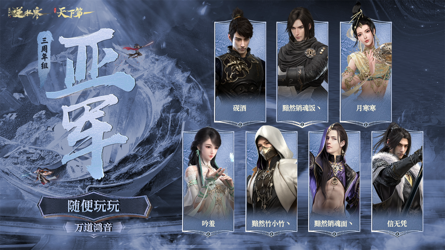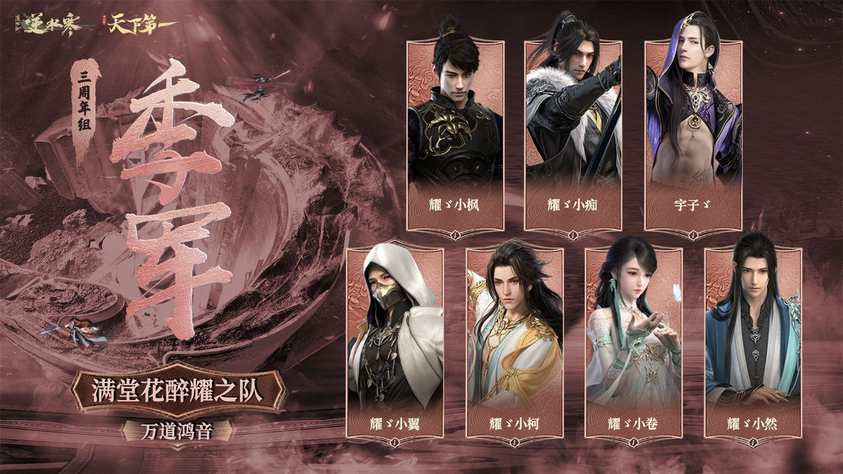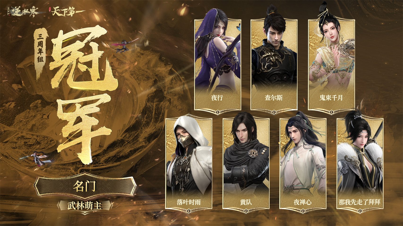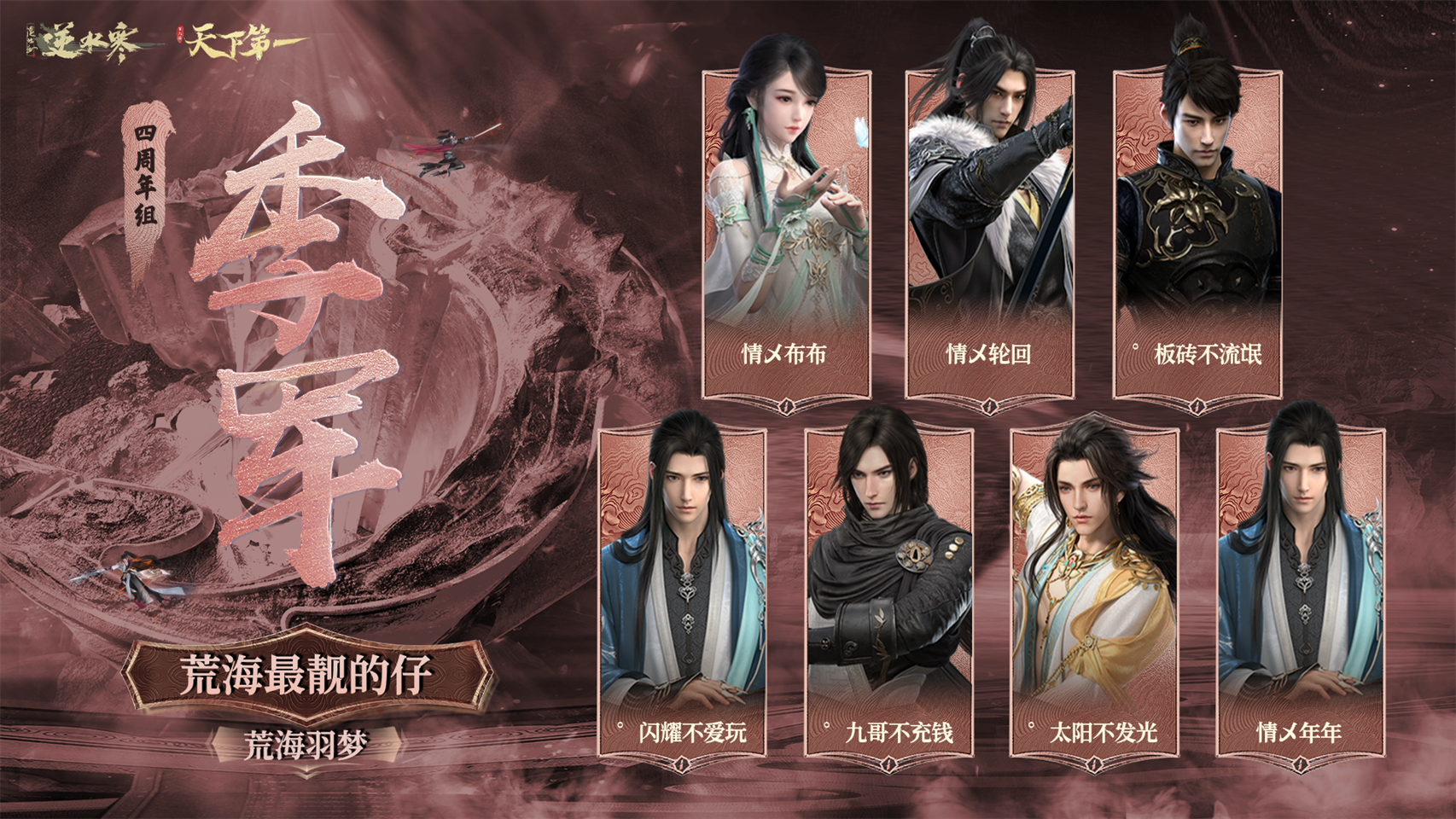 黑云压城城欲摧,甲光向日金鳞开。伴随重重试炼的刀光剑影,万众瞩目的第九届“天下第一”跨服比武大会,终于正式拉开了序幕! 为在2022跨服比武年度赛中拔得头筹,江湖顶尖豪侠齐聚一堂,共商武道,为江湖众生展现了一场场精彩绝伦的视觉盛宴! 两日前,三周年、四周年组的比拼率先打响,为争夺“天下第一”的至尊荣誉,豪侠均使出浑身解数,展开实力与谋略的双重博弈! 接下来就由小寒,为各位同门揭晓本届跨服比武大会周年组四强席位的最终归属! 三周年组 恭喜来自武林萌主【名门】的夜行、查尔斯、鬼束千月、落叶时雨、黄队、夜禅心、那我先走了拜拜七位同门! 他们每个人都具备超群的个人能力,又凭借默契的团队配合,完美适应各类战况,最终成功揽下三周年组的冠军宝座! 恭喜来自万道鸿音【随便玩玩】的砚酒、黯然销魂饭丶、月寒寒、吟羞、黯然竹小竹丶、黯然销魂面丶、信无凭夺得亚军! 他们的表现亦可圈可点,在比赛中贡献了无数精彩战斗场面,期待今后能看到更多赏心悦目的奇招! 恭喜来自万道鸿音【满堂花醉耀之队】的耀ゞ小枫、耀ゞ小痴、宇子ゞ、耀ゞ小翼、耀ゞ小柯、耀ゞ小卷、耀ゞ小然获得季军! 他们用不俗的实力诠释了自我,有朝一日他们的名号定会响彻整片江湖! 恭喜来自武林萌主【名门世族】的玖无伤、柒夜、倾星、仙君君、漓刺゛、烛狼获得殿军! 面对强劲的对手,他们丝毫不显惧色,沉稳应对,出奇制胜,相信未来他们必将向更高的荣誉发起冲击! 四周年组 恭喜来自雷霆觉醒【六皇一后】的请叫我资少、独零ゝ、紫殇ゝ、曦禾、毛小毛丶、一衫青、策壹ゝ七位同门荣膺四周年组桂冠! 赛场之上,【六皇一后】的队员们展现出了杀伐果决的王者风范,以极强的统治力横扫千军,这个冠军,他们实至名归! 恭喜来自雷霆觉醒【真的不充钱】的噩梦梦梦梦丶、清君彻、小土匪゛、玲娜贝儿、燚凡、寸心万绪丶、超神秘的嘉宾゛夺得亚军! 赛场之上的他们宛如一阵飓风,具备极强的凝聚力和侵略性,在每位观赛同门心中都留下深刻印象! 恭喜来自荒海羽梦【荒海最靓的仔】的情乄布布、情乄轮回、゜板砖不流氓、゜闪耀不爱玩、゜九哥不充钱、゜太阳不发光、情乄年年获得季军! 胜不妄喜,败不惶馁,他们秉持着沉稳自省的心态,稳扎稳打拿下每一场战役,再次恭喜! 恭喜来自雷霆觉醒【动感光波】的蛋蛋的秋、知秋的蛋、局座、得不到的结局゛、会蹦跶的咸鱼゛、晴朗、恰饭打豆豆获得殿军! 他们团结一致,壮志凌云,以不屈的精神让我们看到了江湖的无限可能! 再次恭喜以上各组位列前四的战队,同样感谢所有参与周年组比拼的同门,是你们每一个人的付出,共同组建成了这场无与伦比的武林盛会! 本周末,比武擂台还将迎来巅峰组、新锐组的顶尖高手们!武林至尊宝座将花落谁家,让我们拭目以待! 昭日月,耀千秋,为纪念江湖中并肩拼搏的侠客豪情,即将有一套赛事至尊级别时装现身江湖!更多情报,敬请期待明日推送~ 更多资讯,请关注叶子猪《逆水寒》官方合作专区。 点击加入叶子猪逆水寒玩家群QQ群:711879579。或者打开微信,扫码添加叶小猪好友,回复“14”,叶小猪将拉你进玩家微信群。 更多逆水寒攻略请关注叶子猪逆水寒专区:http://www.yzz.cn/game/nsh/。 |
