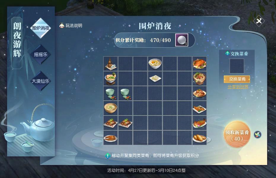 各位自在同门: 为了保证服务器的运行稳定和服务质量,《逆水寒》将于2023年4月27日早8时停机进行维护工作,预计维护到上午10时。五一劳动节即将到来,预祝各位自在同门节日快乐!2023年5月4日早8时-10时将停机维护,无更新内容。 正式服更新公告 ★新一轮转服活动开启,高级万能英雄帖再次发售! 1. 高级万能英雄帖: 1) 在转服时使用高级万能英雄帖可以忽略转服间隔时间转入任意服务器(只能转入符合转入条件的服务器,如未开放转服的服务器依然不能转入),可以在使用普通转服英雄帖后立刻使用。 2) 转服活动开启后,会先竞拍普通英雄帖,再竞拍高级万能英雄帖,普通英雄帖竞拍的全服成交价格的最大值将作为高级万能英雄帖竞拍的起价。 2. 本期转服活动日程: 1) 转服活动开启时间:5月4日12时-5月11日更新维护前(持续约一周)。 2) 普通英雄帖竞拍时间:5月4日12时-5月4日22时(持续10小时)。 3) 高级万能英雄帖竞拍时间:5月5日12时-5月5日22时(持续10小时),仅发售20张。 3. 若在一个服务器同时竞拍到普通英雄帖和高级万能英雄帖,使用普通英雄帖转服后,再使用高级万能英雄帖转服将无法获得【转服新生帮会红包】。 4. 同时拥有高级万能英雄帖和普通英雄帖的同门,推荐优先使用普通英雄帖。 5. 转服后将自动退出玩家所在的军团。 ★第八季“大宋佳人”活动踏春而来,期待各位佳人才子一展风采! “草树知春不久归,百般红紫斗芳菲”,正值春光灿烂,新一季【大宋佳人】活动也将于 4月27日更新后正式开启。诸侠士踏青途中,若遇心仪之人,不妨向其表明倾慕之意。 1. 三大赛道:本届将开启【美颜赛道】、【魔音赛道】、【才俊赛道】,让各位大宋佳人才子各展风姿! 2. 参赛方式:点击游戏主界面【大宋佳人】图标前往专题活动页面,可报名或推荐好友参赛,报名和推荐还有专属称号、限时外观等好礼相送。 3. 丰厚奖励: 1) 有机会获得逆水寒×毛戈平年度限量彩妆礼盒、逆水寒稻城联名考古盲盒、冠军全服雕像、定制无情手办、iPhone14、天纵天昭·佳人版、【名片·春意】、专属称号等缤纷好礼,还有免费获得艮岳奇珍新出时装的机会! 2) 报名的佳人可获得独家定制选手卡,本服得票前50名的佳人会以自己形象生成定制旅人行走于江湖各场景,还可参与CC直播活动赢取10万元奖金池内奖金。 4. 投票有奖:海选赛及成团赛期间,为选手投票还可获得专属限时称号、【绛紫秘宝兑换券】、【虹裳秘宝兑换券】等奖励! 5. 更多详情可在活动专页、游戏内【大宋佳人】专题页或详询小暖进行了解。 1. 五一活动【朗夜游辉】正式开启,等级≥40级的同门可参与活动。 1) 【围炉消夜】活动玩法: a) 活动时间:4月27日更新后至5月10日24点。 b) 玩法介绍:同门每天都可以获得40个随机菜肴,把相同类型的菜肴移动到相邻位置,可融合升级成更高级的菜肴。此外,同门还可以每天与好友交换一个3级菜肴,互通有无,获取更多积分。 c) 玩法奖励:活动专属代币【星光石】、绛紫秘宝兑换券、绝技残章自选礼、庄园组件垂饰·春盛、交子等。 2) 【摇摇乐】活动玩法: a) 活动时间:4月27日更新后至5月10日24点。 b) 玩法介绍:各位同门可1~6人组队跨服匹配参与【摇摇乐】,通过躲避障碍、吃加速球和技能球,争取第一个到达终点。 c) 玩法奖励:每局结束时,将按照排名发放不同数量的专属代币【星光石】。此外还可获得金质硬币、银质硬币、自在点等奖励。累计参与20次可获得专属背饰【清平岁丰】。 d) 玩法排行榜:活动结束后时,进入【摇摇乐】排行榜前100名的同门,可获得专属纪念称号【咩的速度,咩的使命】。 3) 假期出门不用愁,在手机上就能"玩”鸿音!【大漠仙乐】玩法开启: a) 活动时间:4月27日12点至5月10日24点。 b) 玩法介绍:同门可以通过点击屏幕的左右半屏区域,来控制鸿音的左右移动方向,并使鸿音安全踩在祥云上,飞向更高层,就可带走丰厚奖礼。若不幸踩空濒危,还可以通过邀请好友、分享分数等方式赢取复活机会。 c) 玩法奖励:参与鸿音起飞小游戏并累计积分,可获得活动专属代币【星光石】、专属称号【指尖飞天舞】、【浮光霓裳自选匣】、【金玉秘宝兑换券】等奖励! d) 更多游戏规则,详见活动页面。 4) 星光石兑换: a) 本周更新后,各位同门可以通过日课点奖励、每日签到、围炉消夜、摇摇乐、大漠仙乐玩法等途径获得活动代币【星光石】。 b) 可在星光石商店中兑换承天外观自选匣、纳地玉笏、金玉秘宝兑换券、绝技残章自选礼、交子、修气飞仙丸、洗髓丹等道具,以及纪念称号【流萤星夜逐月华】、趣味道具·幻形镜、庄园组件座屏·春盛等外观奖励。 使用趣味道具·幻形镜后,可变幻成所选中的江湖友人模样。 2. 抓抓乐活动上线: 1) 活动道具获取: 4月27日-5月1日期间,艮岳奇珍限时上架【容华金币】、【祝福金币】及【神奇金币】,每类每日限购5枚,其中使用【神奇金币】可自选获得【容华金币】或【祝福金币】。此外,还将上架售价为1元宝的【容华金币】及【祝福金币】,每类永久限购1枚。 2) 活动奖励: a) ≥45级的自在同门,前往汴京【容华娃娃机】处使用一枚【容华金币】可进行一次外观类抓抓乐抽奖,每次抽奖可获1-3个娃娃,每个娃娃对应一件未拥有的时装、挂件、坐骑、宠物、马鞍、庄园组件(可重复)、珍稀外观兑换券(可重复)。每件道具的价值必定不低