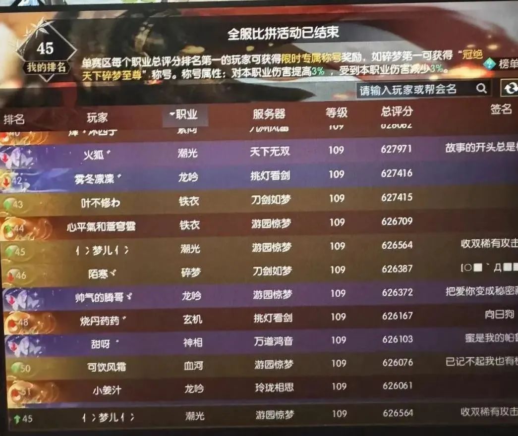 不是我的极限 诸神之战结束后,梦宝就迅速调整状态,全身心投入到战场的比拼。 以扎实的战场经验为基础,辅以在诸神中积累的实战操作,梦宝宛若战神上身,在榜单上一路火花带闪电冲上了第一宝座,这时的他,回归江湖还不到一个月。 “第一是排行榜的极限,不是我的极限。” 凭借远超第二名的胜点登顶战场榜,梦宝依旧不满足,他还希望让自己的名字出现在更多榜单上,让江湖更多人记住他的名字。 梦宝的步伐持续向前,开始投入全服比拼,努力攀上榜单,获得了正式服总评分榜排名45的好成绩! 正式服第六届全服比拼总评分榜 除了战斗和冲榜,梦宝本次回归还有一大目标:体验新流派沧澜。 先前没能第一时间体验到新流派荒羽和潮光一直是梦宝的遗憾,但这次绝不会错过沧澜! 在六周年资料片上线前,梦宝在正式服第一时间体验了沧澜的魅力,顺便给小寒发来了一段超长意见反馈。 “沧澜是不是该加强一下单挑?” “沧澜的麒麟盾好像不怎么吃防御机制?” “星阑战场能不能增加个进圈的积分?” …… 采访时,六周年资料片还未正式上线,但字里行间满是梦宝对江湖的热爱与期许,相信此时,他已在新版本江湖乘风破浪,创造更多精彩! 梦宝的江湖之旅就像登山,不畏艰难地攀上一座座险峰,享受登顶带来的巨大成就感,然后收拾好行囊开启新一段攀登。 或许登顶途中并不平坦,还可能密布荆棘与碎石,但梦宝愿意为此付出巨大的时间与精力,这正是他所追求的快乐。 热爱能够跨越时空阻隔,迸发无数奇迹。江湖中还有无数个梦宝,在他们热爱的领域不断攀登,小寒也希望看到你们成功登顶,熠熠发光的那一天!希望那时,能与大家分享你的故事~ 更多玩家故事,请锁定叶子猪《逆水寒》官方合作专区。 点击加入叶子猪逆水寒玩家群QQ群:711879579。或者打开微信,扫码添加叶小猪好友,回复“14”,叶小猪将拉你进玩家微信群。 更多逆水寒攻略请关注叶子猪逆水寒专区:http://www.yzz.cn/game/nsh/。 |