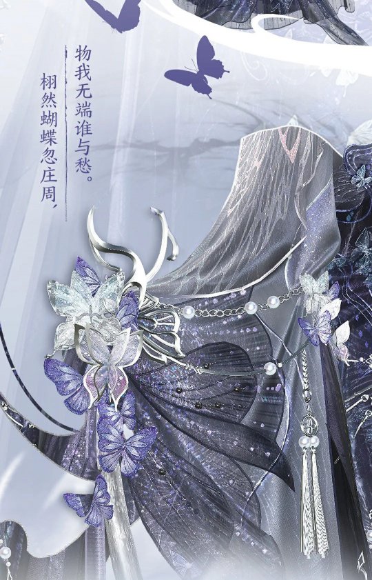 蝴蝶,身量轻小却有力量越过中华上下千年。那些古老的故事中,总能见到它的身影。 大概每个中华儿女,都记得那无垠虚空中,庄周梦里的那只蝴蝶。这千古一梦,模糊了现实与幻境的界限,蕴含的哲思引人冥想千年。 千年已过,庄子抓不住、留不下梦里的蝴蝶,你却可以。现在,蝴蝶飞来大宋江湖,只为你而停留。 这便是以 “庄生晓梦迷蝴蝶” 为灵感创作而成的时装【幽梦伊川】!诗词歌赋是中华民族独特的宝藏,阅读诗词、演绎诗词是弘扬中华博大精深文化的重要途径,后续也会有更多以诗词为灵感的时装在江湖中与大家见面! 都说蝴蝶也是“福”蝶,出现必将带来财气和美满。这不!除了限定典藏时装【幽梦伊川】,还有同主题的稀有发型、轻功皮肤、稀有环身等一齐向你扑来,甚至还有两款超梦幻的珍稀祥瑞,邀你一起入梦! 时装·幽梦伊川 栩然蝴蝶忽庄周,物我无端谁与愁。庄周没有在书中记述下那只蝴蝶的倩影,【幽梦伊川】却将梦境呈现于你眼前。 女款【幽梦伊川】以轻薄透明的纱质面料作底,将梦幻的氛围推至极致,空灵而自由,好似梦境中飘忽不定的思绪。深蓝和粉紫的蝴蝶层层叠叠,好像一路指引你进入庄周梦蝶的奇幻世界。 男款【幽梦伊川】一袭蓝灰长袍,仿佛蕴含着庄周梦蝶的迷离与深邃,在讲述一个古老的故事。飘逸袖子、宽大下摆相得益彰,行走中尽显古朴雅致,不似凡人气度。 各位同门还可以通过衣形变,去掉男装袖子上的轻纱以及女装手臂上的特效,让时装更为轻便简洁。 绣窗人静花瀑垂,蝶影忽至绮梦生。时装自带的双人动特【烟萝蝶影】,更是完美还原庄周梦蝶的故事。紫藤攀木扉,晓梦唤蝴蝶,清醒后恍若隔世,留下无限余味。 蝴蝶的美丽,随着翅膀的鳞粉变幻。支持自由染色的【幽梦伊川】,美丽随你的心意变幻! 8月22日更新后,【幽梦伊川礼盒】就将以2880非绑元宝的价格限时上架全服艮岳奇珍,下架后永不返场! 礼盒内含对应性别时装及配套发型、双人动特、同系列背挂【醉墨烟霏】、头像,买一得五,想要化蝶的同门千万别错过啦! 背饰【醉墨烟霏】 时装【幽梦伊川】为正式服限定时装/赛季服典藏时装,各位同门集齐所有正式服限定时装/赛季服典藏时装,还可解锁称号【风涛引云渊】! 稀有发型·蝶轻 浅梦身似轻,迷蝶闻君意。梦里一切都看不真切,仿佛一团氤氲白雾,银白色中偶尔飞出几只翩跹粉蝶,勾人魂魄。忽而银白雾气散去,稀有发型【蝶轻】的轮廓就此逐渐清晰起来。 获得稀有发型【蝶轻】,还将免费解锁配套头像和立绘,时刻彰显高贵身份! 环身&脚印·繁月映羽 墨翅偏映月,绕砌乍依风。飞蝶不止栖息在你的衣衫上,还将随时伴你左右。 环身【繁月映羽】梦幻至极,羽翼徐徐展开,幻蝶围绕;脚印【繁月映羽】更是一步一蝴蝶,紧紧相随。 环身【繁月映羽】 脚印【繁月映羽】 珍稀祥瑞·极霄天蝶&碎凌寒翼 云锦流璀璨,开扇星河转。珍稀祥瑞【极霄天蝶】的蝴蝶羽翼上,淡紫和烟粉交织,边缘璀璨流光散发着温柔又出尘的气息。翅膀挥舞起来,形态优雅、柔美流畅,带着超凡脱俗的轻盈与飘逸。 骑乘及取消动作 人们对极致浪漫的追求里,【极霄天蝶】就是最接近幻梦的模样。以蝶为形,绕蝶凌霄,独特质感和韵味,令人心生向往。 飞行状态 冲刺状态 休闲状态 除了梦里来的蝴蝶,还有冰原飘来的雪花——珍稀祥瑞【碎凌寒翼】。 如冰之翼,如山之形。剔透的冰晶舒展开来,宛如延伸至天际的梦幻之翼,闪耀着天蓝的渐变光泽,落下一路晶莹雪花。 【碎凌寒翼】在你的背后轻盈舞动,好像飞扬的风雪,送来畅快的凉爽,雪花晶片逐渐分明,清冽得好似看到壮阔的万里冰川。 飞行状态 冲刺状态 8月22日更新后,【浮生幻梦礼盒】礼盒将同步上架全服艮岳奇珍,开启后有概率获取【极霄碎凌自选匣】(开启后可自选获得珍稀祥瑞【极霄天蝶】或【碎凌寒翼】)、稀有发型【蝶轻】、同系列轻功皮肤【化蝶】、数量不等的兑换代币【浮梦蝶】等,让你美丽不停歇! 跳跃轻功皮肤【化蝶】 此外,同门根据抽取【浮生幻梦礼盒】次数,可额外领取一定数量的兑换代币【浮梦蝶】,轻松带走丰厚好礼。 累计抽取达到240次,更可直接带走珍稀环身及脚印特效【繁月映羽】,且后续每次开启礼盒都有概率获得【浮梦惠赠礼盒】,开启后可获得【浮生幻梦礼盒】内同款绑定好礼。 小寒要给所有同们送上好运,祝大家运气加身,都有机会买一得二,拿下超多好礼!同时,同门集齐庄周梦蝶主题外观也能带走诸多奖励哦~ 当同门集齐稀有发型和主题环身时,即可获得全新动态头像【动态·蝶轻】;再集齐任意一款主题祥瑞,即可获得专属限定称号【蝶醉眠花梦今宵】;若是再额外集齐任意2个云纹技能皮肤(正式服可用珍稀外观兑换券兑换,赛季服可用紫薇石兑换),还可带走全新动态头像框和动态头像背景! 蝴蝶最喜于花中翩跹,小寒给大家把花也准备好了!逆水寒X簪花围联动的多款头饰,让你今生簪花,今生来世都漂亮! 簪花围头饰将在后续中秋活动中正式与同门们见面,详细内容别忘紧跟小寒的后续爆料! 在庄周梦蝶主题系列外观中,我们看到的不只是梦幻和美丽,也是中华传统文化和精神的沉淀,是一段古老而自由的绮丽之旅。 梦未醒,蝶已至。等本周四更新后,小寒一定先行“变身”,变成一只彩蝶,去找各位同门玩! 更多资讯,请锁定叶子猪《逆水寒》官