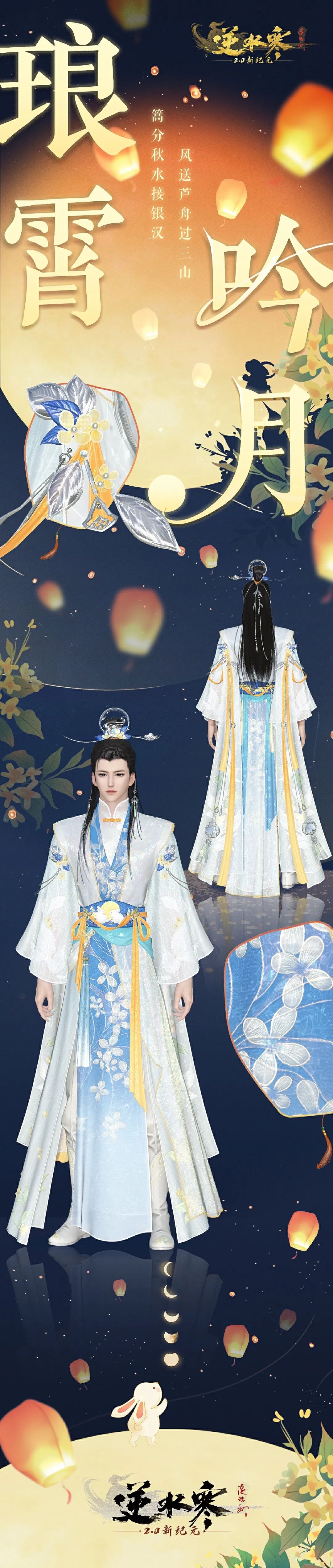中秋主题外观 提到中秋,怎么能不提到玉兔戏月桂花落呢?它们不仅是传统文化的温馨符号,更是设计师灵感的源泉。 中秋节当日(9月17日)0点,中秋主题时装【琅霄吟月】将定时上线全服。时装虽根植于常见的中秋经典元素,却在设计上大胆创新,赋予了它们前所未有的古韵。 女装胸前和男装腰带上,都绣着双兔抱月的图样,相互呼应又氛围感十足,仿佛已经看到夜色渐浓、皓月当空的场景了。 橘黄色的绸带更像是借来了天上圆月的光辉,柔和又明净。下摆上绣着银色桂花,衣衫白纱上又散落着小巧繁密的金桂,清新可人,轻盈又富有动感。 ▼女装更多细节 ▼男装更多细节 【琅霄吟月】支持自由染色,各位同门可以给中秋添上独属于自己的光彩! 月圆人团圆,佳节共欢庆,中秋主题时装【琅霄吟月礼盒】将以1280元宝的价格,在下周二(9月17日)0点定时上线全服艮岳奇珍。 中秋特惠限时直降100元,还可折上折最低13元带走全套外观! 截止10月24日更新前,中秋主题时装【琅霄吟月礼盒】限时折扣仅售28元,折后还可使用抵扣券(最多抵扣150元宝),轻松穿上华服,与皓月相和,过个圆满中秋节! 这么多外观真是让小寒挑得眼花缭乱,于是当即决定:不挑了,我全部拿下! 等本周四(9月12日)更新了,我先穿上【尼罗秘影】体验古埃及异域风情;然后带上【炽渊】系列技能皮肤、换上时装【花朝春信】去闯荡江湖;等到了中秋节,就穿上【琅霄吟月】去中秋活动现场爽玩度佳节! 没有比这更好的安排了,同门们可以直接抄作业了!真不知道小寒一路上又会遇上多少同门,真是越想越兴奋呢!让我们周四见! 更多官方动态,请锁定叶子猪《逆水寒》官方合作专区。 点击加入叶子猪逆水寒玩家群QQ群:711879579。或者打开微信,扫码添加叶小猪好友,回复“14”,叶小猪将拉你进玩家微信群。 更多逆水寒攻略请关注叶子猪逆水寒专区:http://www.yzz.cn/game/nsh/。 |
