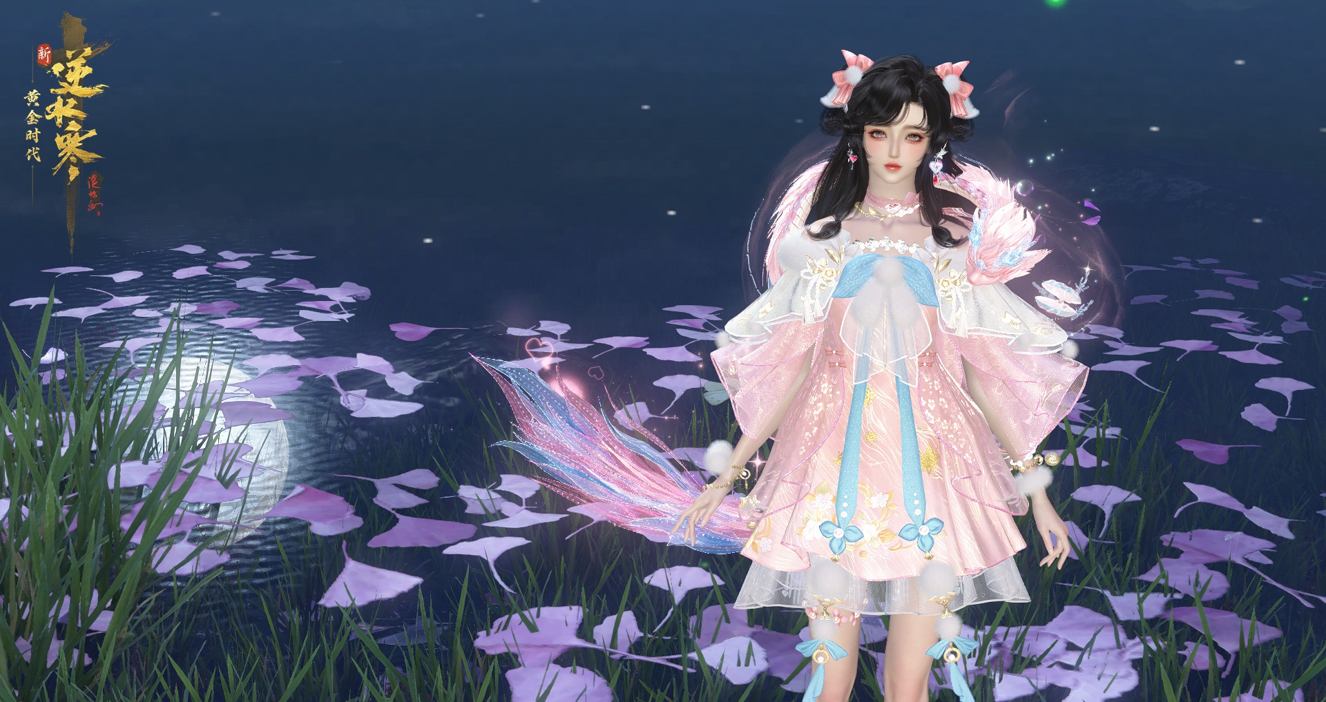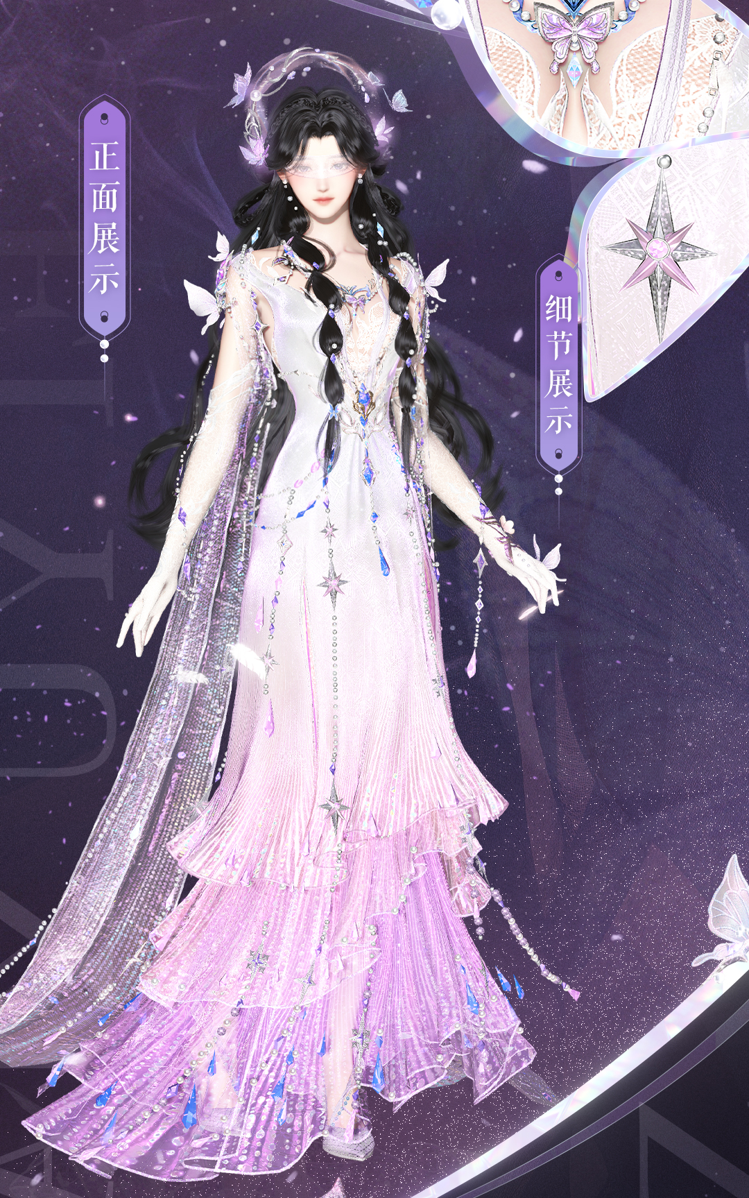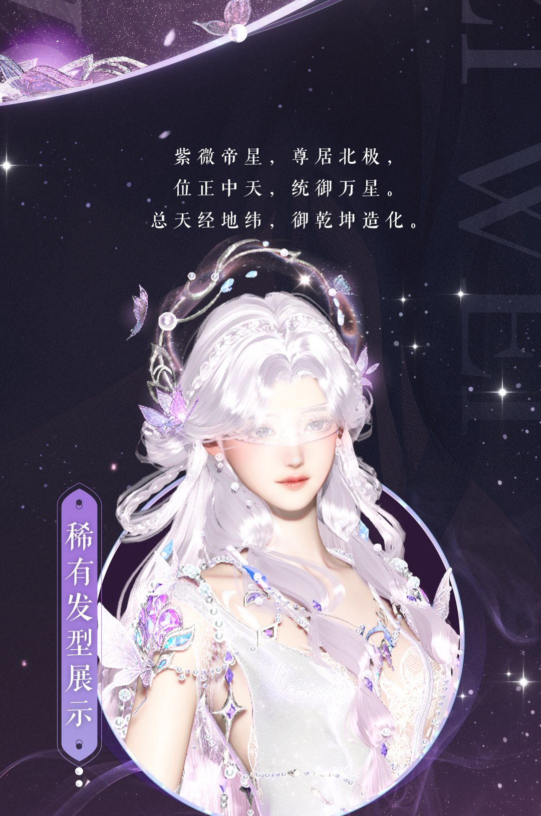 称号【蝶引春霖至】 值得一提的是,同门若是集齐稀有发型【灵影】、稀有发型【紫宸】、珑华系列技能皮肤、稀有肩饰【绯螭浅梦】,还可直接带走稀有发型【霜赋星舟】! 星河隐映彩云渡,遥月初升晓梦沉。稀有发型【霜赋星舟】将是逆水寒截至目前色彩最丰富的发型! 春花之绚烂、天空之蔚蓝、阳光之明媚……几乎是将姹紫嫣红的春天都凝聚在了发丝之上! 星星点点,流光璀璨,如果能拥有这样的发型,当真是从地上美到了天上,小寒光是想象就已经快乐得原地转圈啦! 压缩严重,游戏内效果更佳