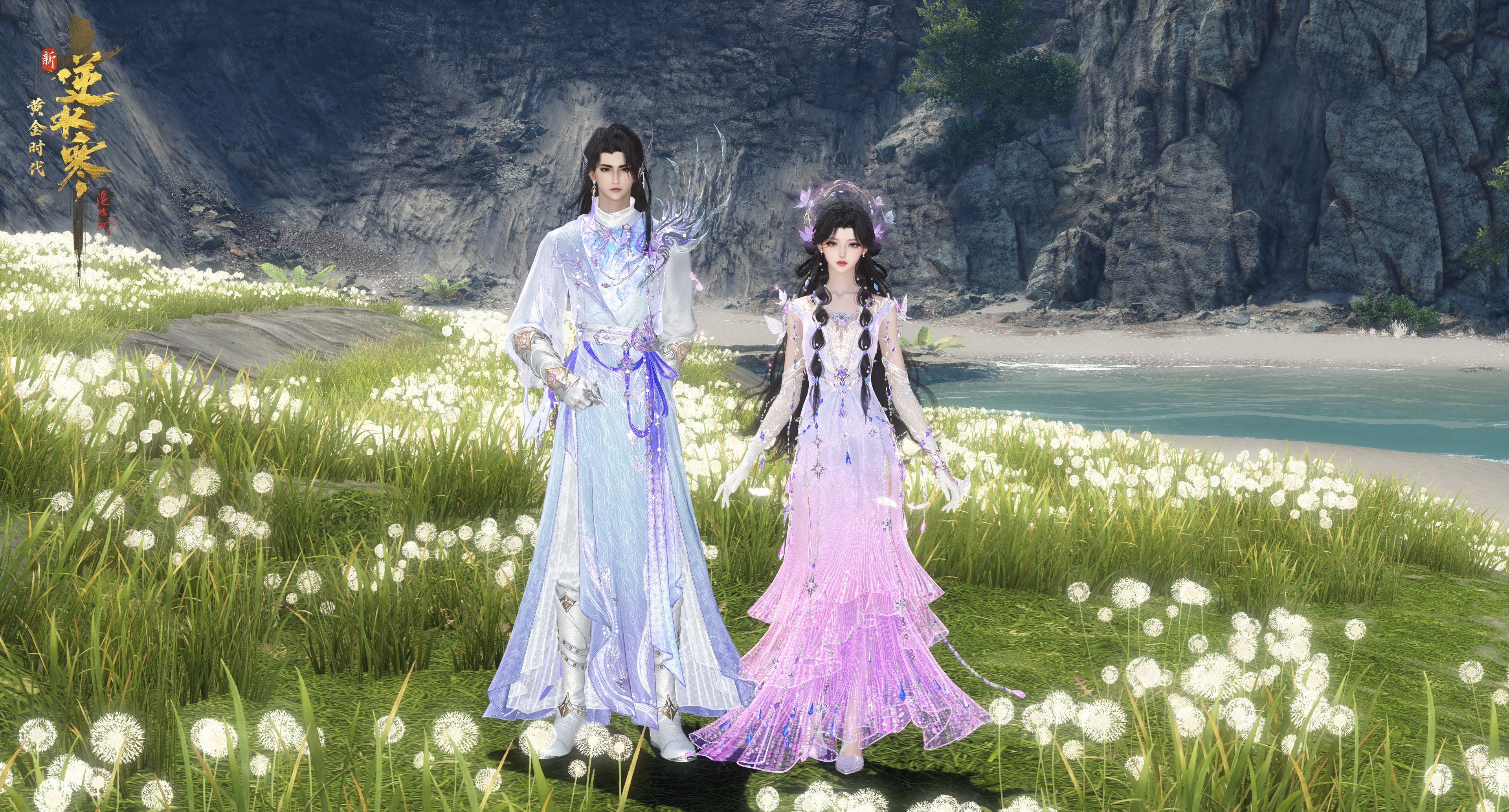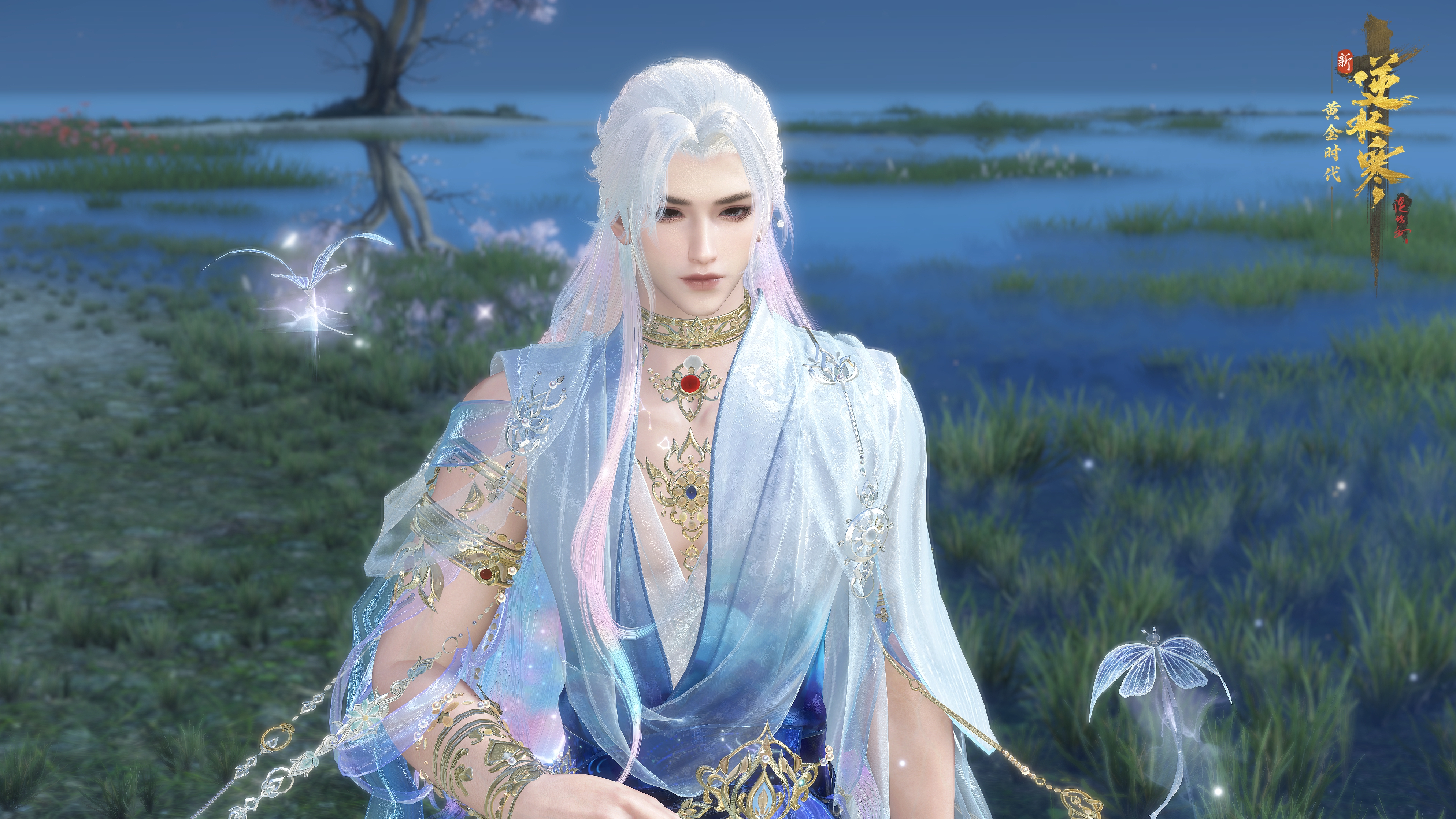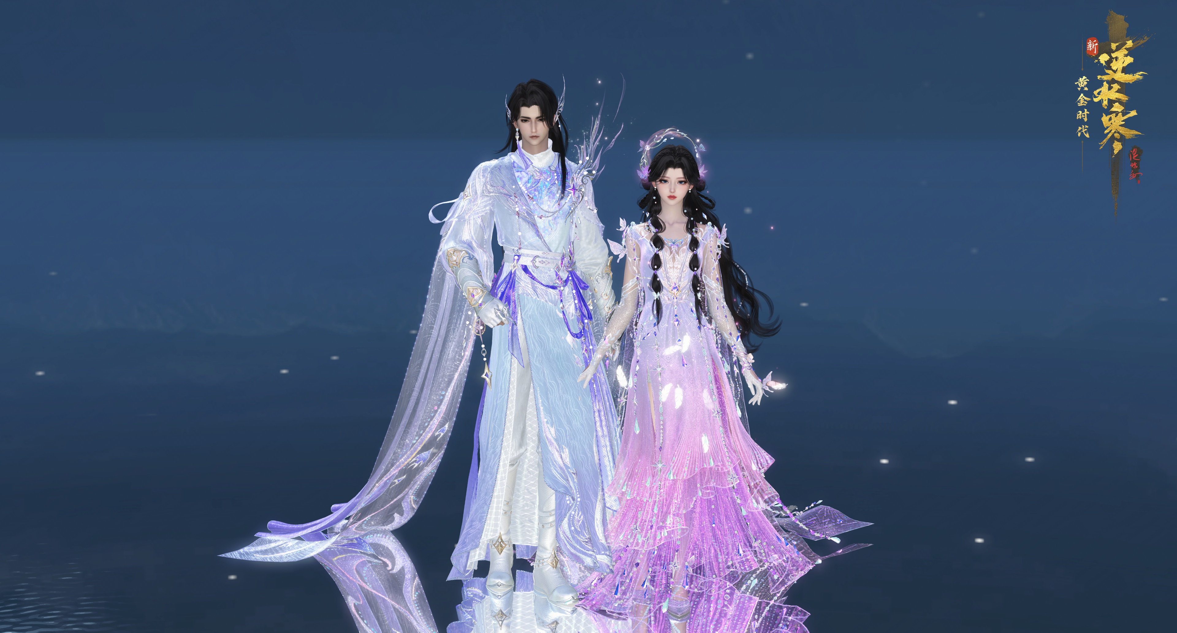 称号【蝶引春霖至】 值得一提的是,同门若是集齐稀有发型【灵影】、稀有发型【紫宸】、珑华系列技能皮肤、稀有肩饰【绯螭浅梦】,还可直接带走稀有发型【霜赋星舟】! 星河隐映彩云渡,遥月初升晓梦沉。稀有发型【霜赋星舟】将是逆水寒截至目前色彩最丰富的发型! 春花之绚烂、天空之蔚蓝、阳光之明媚……几乎是将姹紫嫣红的春天都凝聚在了发丝之上! 星星点点,流光璀璨,如果能拥有这样的发型,当真是从地上美到了天上,小寒光是想象就已经快乐得原地转圈啦! 压缩严重,游戏内效果更佳