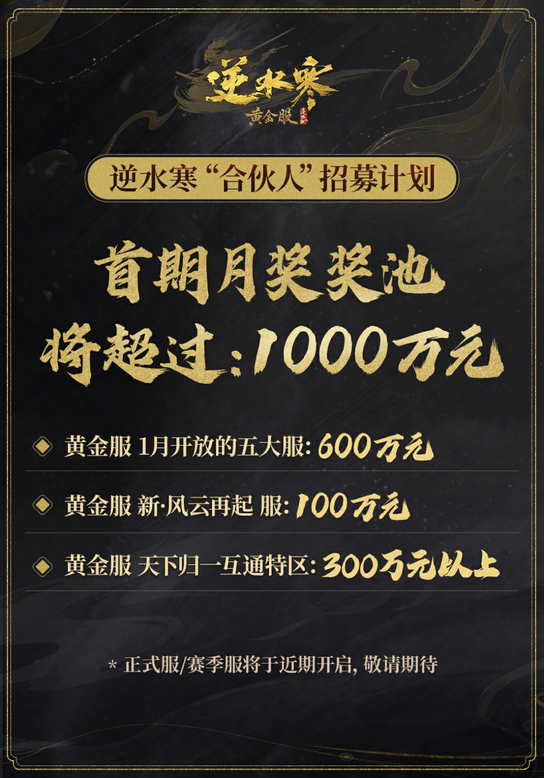 女款时装【灵卉仙华】好似误入人间的花仙子,云纱裁锦、灵卉重瓣,搭配鎏金腰封尽显仙华无双。 男款时装【明辉圣冕】就是那执剑守护花仙子的俊朗亲王,胸前佩戴花束饰品,明辉熠熠、俊雅非凡。还可通过衣形变脱下披风,更显干练简洁。 男款可通过衣形变脱下披风 琼枝为骨,繁花如絮纷纷入梦。全新稀有红发【絮梦】发尾温柔微卷,深红衬托的深沉又热烈,正如我们感谢同门相伴与支持的心意。 更有王冠主题头饰【圣辉冕】可自由搭配,突显同门的尊贵身份,在全新版本中以王者之姿登场,畅玩全新江湖! 女款发饰自带粒子流光特效 明日更新后,各位同门上线即可通过邮件领取时装礼盒【圣冕仙华】(可获得对应性别时装及头饰【圣辉冕】)、稀有红发【絮梦】、时装五折券等丰厚好礼,助您在七周年江湖玩的愉快! 豪侠齐聚黄金服 共襄新江湖盛世 自黄金服上线以来,各路豪杰齐聚、重回2018网游黄金时代,创造了无数脍炙人口的传说事迹,江湖也因此蒸蒸日上! 而今,又有新一波豪侠玩家定制了专属称号与头像框(与拥有者的通行证终身绑定,角色交易时该称号与头像框不会一起交易),尽享江湖顶级荣耀、再创江湖传说! 这其中有已在黄金服威名远扬的豪杰,也有即将入驻的江湖大佬,据小道消息爆料,有多位豪侠正准备前往7月11日开服的经济特区天下归一龙虎服,再创佳话。 话不多说,接下来就让小寒带大家一起看看,传说中的豪杰都自定义了什么样的称号内容: (以下仅为愿意公开身份的豪侠称号展示;玩家昵称以首字母排序,不区分先后) 所属玩家:刺靑 所属玩家:梵克 所属玩家:花落叶倾城 所属玩家:清卿 所属玩家:枭红尘 所属玩家:西門大官人 所属玩家:远道 所属玩家:耶加雪啡 所属玩家:优铭 所属玩家:夜行 十大至尊合伙人 享网易股票好礼 自前几天逆水寒“合伙人”招募计划公布后,引起了同门的热烈讨论,玩逆水寒就能领分红,总奖池超1000万元,而且月月都能领! 甚至是在7月11日14:00开服的龙虎新服,也能瓜分300万元以上。全新服务器、全新生态,大家同一起跑线,获得高额分红的概率更高! 点击查看详细信息: 福利不止如此,今日,小寒再度带来重磅合伙人速报:合伙人权益再度加码,七周年至尊合伙人尊享网易股票好礼! 在黄金服月度奖金开启首月,江湖中贡献最大的十大合伙人将晋升为“七周年至尊合伙人”!他们将获得每人400股网易股票、永久荣誉称号,成为真正意义上的网易“股东”! 其中,黄金服1月服务器将产生9位至尊合伙人,新·风云再起服将产生1位至尊合伙人。 而在即将开启的互通特区龙虎服,将产生三位“龙虎合伙人”:他们也将获得每人200股网易股票。 明日更新后,黄金服同门即可通过游戏内活动页面查询预估分红额度(按角色当前养成估算),在8月2日首期结算前,持续提升角色养成和江湖活跃贡献分,奖金额度还会动态变化。 此外,7月11日开服的经济特区天下归一龙虎新服,由于前期角色养成情况变化幅度剧烈,暂不支持查询预估月奖奖金。 研发界面示意,实际以上线为准 即使还有两天才开服,全新互通经济特区天下归一龙虎服已累积了价值超千万元的好礼,还等什么,快快点击文末链接抢先预约,第一时间瓜分2025暑期最大的黄金蛋糕! 黄金服装备新养成 70级装备独有情报 此外,小寒还打探到了黄金服70级装备养成新情报:装备开放6词条,新属性「精通」,新稀有词条上线,同门快来一睹为快~ 70级装备开放6词条 明日更新后,黄金服同门完成境界提升将突破至70级,更凶险的全新江湖即将启程,相应地装备养成也将发生巨大变化。 首先,70级百炼装备开放6词条,每件装备最多支持带有3个稀有词条。 由于70阶段角色等级开放节奏将大幅度放缓,70级装备可穿戴/开六孔的部位也会随之缓慢开放。同时,70级阶段百炼装备开6词条概率大幅提升,紫色装备开5词条概率也将大幅提升。 因此,同门有更多的时间积攒资源,只需体验新版本各项游戏玩法,就能平缓过渡到70阶段,无忧养成! 研发界面示意,实际以上线为准 此外,明日更新后,各位同门手中的百炼令和60级熔晶,也可以限量兑换为70级养成所需的寒光令和70级熔晶,大大降低新等级初期的养成压力。 新属性「精通」上线 70级全新江湖,也将迎来全新特有基础属性「精通」。顾名思义,精通即为熟练本流派技能和属性到炉火纯青的地步。 因此,当同门提升精通值后,可提高角色的技能增强值,进而按比例提升核心技能伤害,并降低技能冷却,战力大幅提升! 研发界面示意,实际以上线为准 至于如何打造全新基础属性「精通」,则离不开70级全新特色词条星辉·逍遥、龙渊·逍遥(可通过70级副本玩法、熔晶兑换商店、凌霄塔商店等途径获取,仅可打造到70级装备上)。 除了带有全新属性外,该特色词条打造至不同部位的装备时,还可获得不同属性效果。同门可以根据自己的装备属性搭配,进一步提升战斗力! 词条星辉/龙渊·逍遥效果示意 值得一提的是,黄金服7月新服之前的六大服,在服务器等级到达70级后,将开放词条替换功能,助力同门自由搭建想要的属性搭配! 70级同门消耗数个同种类带有星辉、龙渊词条的吸海垂虹,即可指定替换原装备上的星辉/龙渊词条(天玄词条仅可消耗其他属性的天玄词条替换)。 研发界面示意,实际以上线为准 全新稀有词条登场 黄金服江湖进入新境界,装备全面巨变,全新稀有词条星月