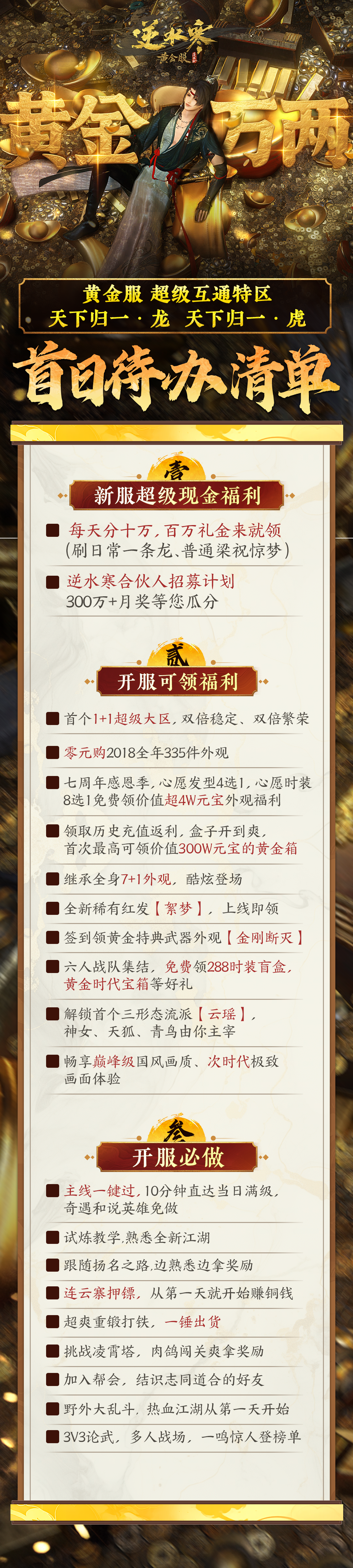昨日资料片更新后的第一件事,当然就是看看自己能分多少钱! 看到玩家群里月奖金额一次又一次刷新上限,小寒不得不再次感叹, 咱们逆水寒玩家吃的可真好啊! 不愧是大佬,这还只是刚踏入70级的奖金哦!真是羡煞小寒。 *图源来自逆水寒OL吧 今日下午14:00,逆水寒首个超级互通特区— —【天下归一·龙/虎服】将正式开服。 作为MMO的终极版本答案,龙虎服的开服也意味更多的机遇! 除了史上最强福利、全面互通的机制外,龙虎服还将见证: No.1 最激情的野外PK 全新活动【血战连云寨】上线,拒绝挤线,爽快战斗!同联盟挤线挂机吃宝石的情况将成为历史。 新服将首次采用联盟报名-匹配模式的缉盗玩法,将替换晚间的常规缉盗。进去就是干,让您名震龙虎双服。 【血战连云寨】将于每周日、周一、周四晚间20:00-20:30开启。(其他时间连云寨缉盗正常开启。血战连云寨模式开启时,连云寨仅开启宝石线不开启缉盗线。) 新服首周可自由报名,并根据联盟排名决定参与资格。后续则会按照帮会联赛成绩决定参与资格,取得资格的帮会内所有成员均可获得下一周【血战连云寨】参与资格,并且可自由组队,不限制同帮会组队。 *【血战连云寨】将在新·风云再起及天下归一·龙/虎服同步上线 No.2 最友好的创业机会 除了逆水寒合伙人的巨额奖金以外,别忘了还有“百万金礼”活动! 这次雷火来做天使投资人,龙虎服直接掉金条。掉落金条将直接转化为可提现金额,可直接通过小程序提现!极速到账,绝不拖延! 开服前10日,除了丰厚的副本掉落外,还能直接拿走雷火的100万元现金! 这次不限于保护,我们将直接投资每一位事业型玩家,越精品挣越多。希望能为还在网游事业打拼的每位兄弟撑起一小片天空,你们是网游生态的非常重要的一环。 至于认真玩游戏,热爱游戏的事业型玩家收益保障,我们将推出全新活跃度体系,动态调整!确保认真玩游戏的玩家有一个最友好的创业环境! 本次活跃度改革后,仅有参与指定副本和玩法(根据开服动态调整)的角色才可获得活跃度,活跃度直接与铜钱收益挂钩。 铜钱收益将最大程度向精品号倾斜,不活跃纯押镖的“人机角色”产出速率将受到大幅削减。 No.3 前所未有的顶级荣誉 ①皇城战永久称号 独属于冠军大当家的尊贵荣誉,称号文字支持自定义!这是专属于皇城之巅的荣耀! ②皇城战奖金升级 超级互通特区皇城战奖金将升级为50万元! 本次龙虎服的备战大佬之多、氛围之热烈、官方政策之好无不让小寒感到震撼!不知道龙虎服开服后,又将见证什么样的不朽传奇呢? 小寒在这里准备一份开服必做清单,希望各位同门玩到爽,赚到翻! 此外,再插播一个好消息! 今晚19:00,四位美女体验官将会在“逆水寒黄金服”抖音直播间陪同大家一起玩逆水寒。但是其中只有一位最受同门喜爱的体验官能够长驻在官方直播间,成为我们的特邀体验官。 点击加入叶子猪逆水寒玩家群QQ群:711879579。或者打开微信,扫码添加叶小猪好友,回复“14”,叶小猪将拉你进玩家微信群。 更多逆水寒攻略请关注叶子猪逆水寒专区:http://www.yzz.cn/game/nsh/。 |