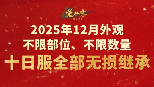 随着十日服开服的日子越来越近,同门们催问十日服爆料的私信也越来越多,其中外观党最为关注的,莫过于十日服怎样才能美出新高度! 今天!小寒就怀着激动的心情,带来第一手爆料! 首先,十日服将开放2025年12月外观全部无损继承! 2025年12月1日~2025年12月31日上架的所有新外观,同门只要在正式服/赛季服/黄金服任一服务器拥有,便可以全部无损继承到十日服,不限部位、不限数量,开服就美美登场! 若是您不满足于此,想要追求更极致的美学穿搭、更夺目的出行排面,小寒强烈推荐冥宙主题顶奢外观,从细节到造型,全方面为您打造犹如神明临世的至臻奢华体验!? 身上的时装,顶奢!搭配的挂饰,顶奢!脸上的妆容,顶奢!静止的站姿,顶奢!动起来的环身&脚印,顶奢!社交形象的头像&立绘,顶奢!举止之间,皆为宇宙至尊! 1月9日,十日服开服后,冥宙主题顶奢外观礼盒将在十日服抢先发售(1月22日,顶奢外观将在正式服/赛季服/黄金服正式登场)! 您在十日服不仅能尝鲜体验尊贵奢华之姿,还可享受充值100%返还现有服务器,甚至前往黄金周年新服更可获得1000%返利! 届时,您在十日服抽取顶奢外观后,回到现有服务器/黄金周年新服,仍可使用十日服充值返还的绑定元宝,再次抽取顶奢外观或选购其他心仪外观,花一份钱享两份美丽,相当于您在十日服抢先免费穿十天! 点击查看充值返利详情: 话不多说,快随小寒一起欣赏顶奢外观的绝美风华~ 上古时候,天地混沌之中渐生出日月昼夜,同时也诞生了司掌白昼与黑夜的两位神明。而穿上冥宙主题时装【冥宙星熠】&【冥宙曜火】,您便能感受到这股来自宇宙洪荒的力量。 建议横屏观看,滑动欣赏更多美丽 女款【冥宙星熠】一身琉璃,在日光下折射出多彩的梦幻光芒,海蓝宝凝结天色装饰,冰清玉洁、不染凡尘; 男款【冥宙曜火】玄中藏白、黄金为配,长袍内里猩红,红宝石点缀长袍,正颜厉色、威严庄重。 男女款一明一暗、相得益彰,正如昼夜,看似截然不同,实则你中有我、无法分割。 配套发型为清冷圣洁的白色长发,昼夜之交、破晓时分,那第一缕最纯净的天光,便在发间静谧流淌。 女款发型 男款发型 为了让各位同门在十日服中作战更清爽,您也可以通过衣形变去掉女款裙摆和男款披风,出招的速度一定更快! 当然,时装和发型均支持自由染色,昼夜包含万物,自然可焕发出不同的光彩! 左右滑动查看更多染色时装和发型 有了闪耀全场的顶奢时装与发型,想要进一步占据世人的目光,就不得不提到顶奢背饰【冥宙羽翼】了! 有了这双能搅动昼夜、贯穿冥宇的巨翼,世界在它的拍击之下也不过尘埃。张开翅膀,万物都将笼罩在它的阴影之下,让众人别无他想,只能臣服于此。 顶奢背饰【冥宙羽翼·晓】 顶奢背饰【冥宙羽翼·幽】 顶奢背饰到位了,能与之辉映的,唯有同属顶奢品质的面饰【圣羽】! 以纤羽遮眼,双目不见尘世光影,更让人寻到内心的安宁,仿佛能听见来自高天的低语,参透凡尘的真谛。 面饰【圣羽·晓】 面饰【圣羽·幽】 穿戴完毕,接下来就是拥有一个美美的妆容!额间花钿状似双翼和日晕,羽毛如月白,又沾染上雾霭霞光的淡紫色。珍珠点缀,日光曜曜,极富神性。 妆容【冥宙星熠】 妆容【冥宙曜火】 真正的天神,风华不仅存在于外貌,更流转于举手投足之间,动静皆有风情。而这些,冥宙主题顶奢外观也为您准备妥当! 当您静止驻足时,站姿【星熠/曜火】凌空浮动,双臂微展,睥睨万物尽享神王之姿! 站姿【星熠】 站姿【曜火】 而为了让您行动时保持优雅神圣,同主题环身【璨星环梦】和脚印【晖耀行】,以及单人表情动作【圣域焕翼】、双人表情动作【冥夜共赎】,皆为典雅华贵、霸气十足! 环身【璨星环梦】神鸟啼鸣引路,星芒垂落为缀,霎时一弯新月自您的身后凝形,化作您出行的障扇,流光随扇影闪耀,让您走到任何地方,都是毋庸置疑的焦点。 脚印【晖耀行】则是步步绽出新月般的冰痕,剔透的晶芒随之迸溅,恍若将寒天的星光都踏在您的步履之下。 单人表情动作【圣域焕翼】从长夜中蜕变,在火光中召唤光明,清朗世间万般邪祟! 双人表情动作【冥夜共赎】则是集昼夜力量,幻形琉璃盛殿,展翅回旋共舞,浪漫非凡! 除了全身顶奢尊贵装扮外,代表社交形象排面的头像、立绘、名片主题、战场动画、江湖称号也不能落下,随时随地闪耀武林,尽显豪杰至尊地位! 动态立绘【星熠】 动态立绘【曜火】 动态立绘框【璨星】 动态名片主题【冥宙浮光】 MVP结算动画 专属称号【六翼华羽曜长夜】 惊喜不止于此!有了昼夜神明的力量,您还可以获得改变天象技能【昭雨云霓】,每隔24小时便可在十日服汴京开启天门、彩云万里,重现曜火焚云之景! 同时,改变天象时还可让您团队所有成员获得24小时增益:地宫爆率+50%,猛猛出货! 因十日服与现有服务器生态不同,同门在现有服务器获得技能【昭雨云霓】后,每隔7天可在汴京改变天象,相应的增益效果也将有所不同。 此外,拥有顶奢外观后,您还将获得赐福道具【幽宙引辉】,令日月变色、福泽众生! 使用后,同样可以改变汴京天象,并在汴京虹桥召唤大量赐福圣辉宝箱,所有同门皆可前往领取青云帖*10,100000交子,玉石碎片*10奖励,瞻仰神迹! 神王临世、好运加身,顶奢排面拉满!当您解锁顶奢外观后,更可获得地宫爆率永久增加200%,让您在地宫刷怪时刀刀爆稀有! 点击加入叶子猪逆水寒玩家群QQ群:711879579。