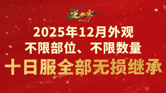 各位自在同门: 为了保证服务器的运行稳定和服务质量,《逆水寒》将于2026年1月8日早8时停机进行维护工作,预计维护到上午10时。2026年1月15日将不进行停机维护,下次更新时间为 2026年1月22日。全新资料片【黄金重铸】将于1月22日同步上线,精彩内容敬请期待。 ★《黄金时代-十日服》将于1月9日(本周五)14时开启:十天就关服,体验MMO全部精彩! 1月9日(本周五)14时将开启5组十日服:【刀刀烈火】、【十日终烟】、【CPDD】、【一夜暴富】、【YYDS】。 1、 十日服预约达百万,开服福利放送: 祥瑞【南山雪】、稀有发型【白夜拂雪】、黄金战甲时装【玄华曜金】登录即送! 2、 十日服充值全额100%返还! 1) 十日服不收点卡,且同门的所有充值全额返还!在十日服关闭后,登录正式服/赛季服/黄金服的角色即可领取等额绑定元宝、等额皇宋通宝(正式服、黄金服),以及角色充值进度,通通100%返还! 2) 选择前往黄金服周年新服,还可额外获得十日服充值900%价值的珍稀外观抽奖代币! 3、 夺金狂潮,十天瓜分三百万元! 1) 官方真金白银投入300万元现金奖励,10天瓜分300万,来战就有收获! 2) 所有解锁畅享权益的同门,参与野外地宫刷怪、皇城争霸系列PVP玩法,均有机会掉落【金条道具】。右键使用后微信扫码即可提现秒到账,无需手续费,最高直接V你288元! 4、 外观继承、历史充值赠礼齐登场,助你十日服美出天际! 1)?【发型·天钧】、【祥瑞·轻冥幻夜轩】、【祥瑞·鸣九皋】等稀有外观也将在本次赠礼活动中悉数登场,将按照历史充值所对应的标准直接送给各位同门! 2) 账号历史充值累计达到标准的同门,在十日服开服后就能免费领取对应的充值称号和首日额外打宝掉率加成,登录即可彰显尊贵的江湖地位! 3) 2025年12月1日~2025年12月31日上架的所有新外观,同门只要在正式服/赛季服/黄金服任一服务器拥有,便可以全部无损继承到十日服,不限部位、不限数量,开服就美美登场! 5、 丰厚结算奖励,祝每一位同门均可“百万撤离”! 1) 在开服第3、5、10天,将分别进行三次战力结算,达到一定总评分即可领取荣耀金币与养成好礼。 a) 同门获得荣耀金币将暂存于十日服角色账号中,待1月18日十日服结算关服后可自选现有服务器角色或黄金服周年新服角色,兑换丰厚珍稀外观与养成道具。 2) 第十日最终全服结算,名列前茅的同门还可获得大量荣耀金币和限量珍贵荣誉奖励 a) 位于全服排行榜前3000的同门,将根据名次获得逆水寒X六福珠宝 流派黄金礼盒与定制春节纪念金钞,金彩加冕江湖荣耀! 排行榜前100名获得 排行榜前3000名获得 b) 全服排行榜前3名的同门,可获得限定年兽坐骑【苍霆圣麟】,冰翼寒光流转,星芒四溢,熠熠生辉。 c) 全服排行榜前10名的同门,将获得江湖首批定制艺术字名称修改权(限时120天),自定义ID,独揽英豪牌面! ★混沌始分昼夜章,冥宙浮光织顶奢,冥宙主题时装上线十日服! 1、?1月9日14:00十日服开服后,冥宙主题时装女款【冥宙星熠】&男款【冥宙曜火】于十日服抢先上线! 2、?同门可前往十日服艮岳奇珍选购【冥宙外观礼盒】,抽取冥宙系列珍稀外观和应龙系列珍稀外观。 3、?同门在十日服解锁顶奢外观,或在兑换商店兑换应龙系列稀有外观、炽渊龙啸系列武器外观、珑华技能外观时,还可额外获赠红包道具,使用后可向帮会或世界发放红包,内含数量不等的青云帖好礼! 4、?同门解锁冥宙顶奢外观后,自身的地宫爆率将永久增加200%!并获赠赐福道具【幽宙引辉】,使用后同样可以改变汴京天象,并在汴京虹桥召唤大量赐福圣辉宝箱,所有同门皆可前往领取青云帖*10,100000交子,玉石碎片*10奖励,瞻仰神迹。 5、?拥有冥宙顶奢外观后,还可解锁改变天象的技能【昭雨云霓】,每隔24小时便可在十日服汴京开启天门、彩云万里,重现曜火焚云之景!并使团队所有成员获得24小时增益:地宫爆率+50%,猛猛出货! 6、 冥宙顶奢外观 1) 女款时装【冥宙星熠】可通过衣形变去除裙摆。男款时装【冥宙曜火】则可通过衣形变去掉披风。 2) 同时,时装支持自由染色。 3) 配套白发同步上线。 4) 顶奢背饰【冥宙羽翼】正式上线。 5) 面饰【圣羽】正式上线。 6) 全新妆容【冥宙星熠】&【冥宙曜火】同步上线。 7) 站姿【星熠/曜火】同步上线。 8) 冥宙主题环身【璨星环梦】及同名脚印【晖耀行】同步上线。 9) 专属单人表情动作【圣域焕翼】正式上线。 10) 专属双人表情动作【冥夜共赎】正式上线。 11) 专属头像以及专属MVP结算动画正式上线。 12) 配套动态立绘、名片主题、江湖称号同步上线。 正式服更新公告 1、【舌尖上的大宋】活动将在1月9日~1月31日期间开启,各位同门可免费补领1月9日~1月18日期间错过的各种日常玩法奖励及1月11日~1月17日之间的周常玩法奖励,减负降肝,放心游玩十日服! 1、 潮光 1) 修正了部分情况下技能【水意流光】穿过铸镜时,未能触发扩散伤害的问题。 1、 【开放世界-山海】第40赛季开启: 1) 新赛季起止时间:1月8日更新后-2月12日凌晨1时,共5周。 2) 在山海第40赛季中,第39赛季的玄元锁被收录进了山海纪念册,同时还更新了第39赛季专属玄元锁、新的每周挑战内容和新的宝箱位置,期待各位同门在山海中玩个痛快! 1、1月15日艮岳奇珍上线时装月夜奏曲礼盒与炫音盛宴特典礼盒,详情关注后续公众号爆料。 2、衣香鬓影礼盒调整为永久上架。 1、本次更新后,各位同门可通过【