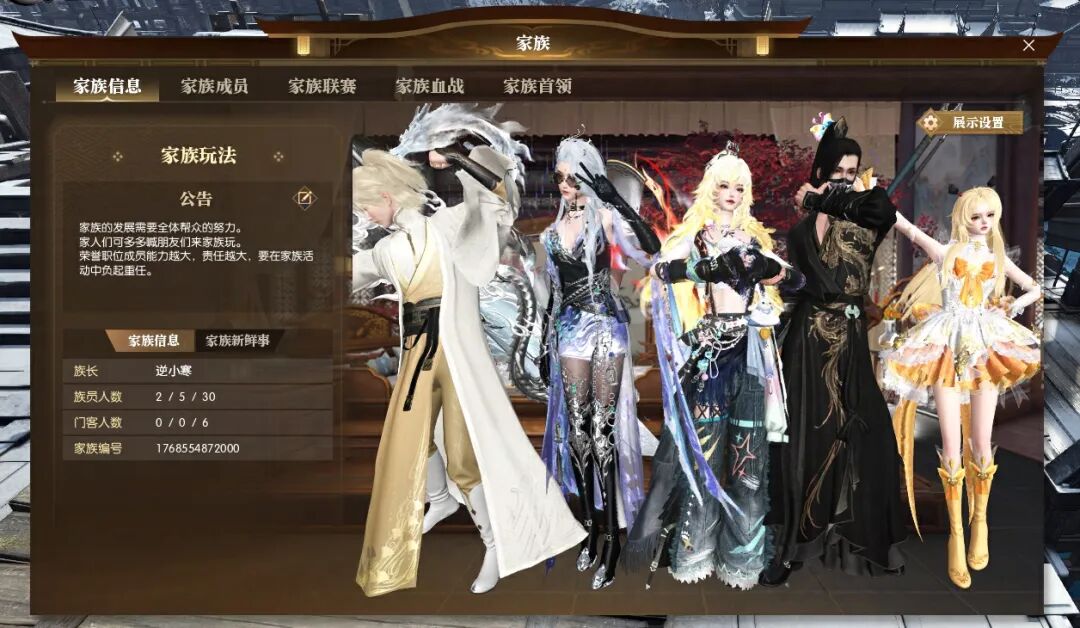 在年度革新计划的第一波爆料中,黄金服70级段将推出的全新社交体系——【家族】,引起了广大同门的热烈讨论。 同门纷纷询问:“家族具体是什么?”“能带来哪些不一样的体验?” 别急,小寒这就揭开它的神秘面纱。 何为【家族】? 轻量化、强凝聚的江湖新单元 随着江湖局势的发展,我们听到了一些期待变革的声音:战斗格局固化、社交压力增大、新鲜血液难以融入…… 【家族】便是为了解决这些痛点而推出的全新社交体系。 研发界面示意,实际以游戏内为准 它不同于管理复杂的帮会,旨在打造一个更紧密、更灵活、战斗更高效的“小家庭”。 首批开放服务器:新·紫禁之巅、新·烟雨江南、新·江山如画、新·群龙之首。 黄金编制:36人精锐小队(12位荣誉成员 + 18位正式族员 + 6位门客)。 我们相信,更小的单元意味着更紧密的羁绊、更高效的指挥和更公平的竞争起点。 家族核心理念:拒绝人海战术,回归精英作战!在这个小家庭里,你的每一次输出都能被看见,你的每一个操作都能决定胜负。 为什么要加入【家族】? 四大核心红利解析 红利一:跨服摇人,打破服务器壁垒 江湖无界,兄弟无疆!家族系统全面支持跨服组建! 无论你的好友在哪个服务器,只要同处一个跨服组,就能并肩作战。这将极大拓展您的社交圈,让“天下英杰,皆可为我族兄弟姐妹”成为现实,也为家族间的对抗注入了更多未知与激情。 红利二:荣誉职位 不仅有面子,更有“压制力” 不想当将军的士兵不是好少侠!家族特设12个荣誉职位,人人都有机会上位! 荣誉职位:荣誉职位共分为长老(1席)、护法(2席)、执事(3席)、幕僚(6席)四档,总共12个席位。 职位压制:长老、护法、执事三档职位自带专属“职位压制”属性。在面对其他家族的非长老、护法、执事成员时,将产生压制,获得一定程度的增减伤效果(压制效果将弱于十日服的一阶境界压制),该效果仅对战力低于自身的对手生效,长老、护法、执事相互之间将不存在职位压制。幕僚作为家族智谋型辅佐人员将不带有职位压制属性。 额外奖励:在家族联赛玩法中,包含幕僚在内的荣誉职位将会额外奖励,且所有档位的荣誉职位奖励均一致。 门客福利:作为正式族员的预备役,可灵活参与家族全部玩法,即使未参与玩法也可获得全额奖励! 红利三:全新跨服家族PVE 是兄弟,就来砍BOSS!族长一键拉人,全员瞬移战场,开启双线作战模式: 【精英组】高危区(6人):尖刀小队直面BOSS,每砍掉10%血量直接发奖,手慢无! 【支援组】低危区(30人):并不是只有砍BOSS才叫输出!清理小怪积累士气,为精英组提供高达100%的伤害加成!你们就是主力输出的最强后盾! 红利四:PVP玩法革新,百万奖金人均暴涨 这是属于精锐的战场,更是属于你们的奖池! 家族血战:经典“血战”玩法家族化!每个家族只需管理进行报名后,除门客外家族成员即可随时入场开战!告别漫长的组团和报名,?一键匹配,上线即战! 家族联赛:首届家族联赛即将在3月打响,总奖金高达百万级别!资料片更新后即可在每周六晚间体验家族联赛练习赛(同步将关闭对应赛区的据点战活动)。由于家族成员相比帮会更少,因此分到每个人手里的人均奖金将史无前例的丰厚!这波不冲,更待何时? “家族”系统的引入,绝非简单地增加一个玩法,而是整个竞争格局,甚至游戏生态的变化。 如果说帮会是庞大的帝国,那家族就是一只只凶猛的狼群。这里不再是大势力的独角戏,而是无数热血家族“百家争鸣”的大时代! 群雄逐鹿,全新升级 奖励更丰厚,对战更激情 【群雄逐鹿】跨服赛制全面革新,奖励重磅升级,巅峰荣耀等你来战! 【赛区调整战斗升级】 凌云赛季结束后,群雄逐鹿将取消原赛区划分,黄金服老区与龙凤区将各自合并为单一赛区,跨服对抗将更加激烈、竞争更加白热化! 新·紫禁之巅、新·群龙之首、新·江山如画、新·烟雨江南将在同一跨服赛区,共有64名帮会进入群雄逐鹿跨服赛区,并分为四个联赛小组,分别为:问鼎组(8名)、凌云组(16名)、踏岳组(16名)、藏锋组(24名)。 天下归一·龙,凤鸣九霄将在同一跨服赛区,共有48名帮会进入群雄逐鹿跨服赛区,并分为三个联赛小组,分别为:凌云组(8名)、踏岳组(16名)、藏锋组(24名)。(天下归一·龙,凤鸣九霄本赛季时长将会延长一周,群雄逐鹿新赛季将于1.29开放) 【联赛奖励全面升级】 酣战获厚赏,荣耀伴福利!本次群雄逐鹿跨服帮会联赛,奖励体系将重磅迭代,让每一场胜利都更具含金量! 每场帮会联赛结束后,所有获胜方同门都将额外获得?1?个?联赛宝箱。 联赛宝箱可根据帮会在本赛季中的表现不断升级:每场胜利后,将根据敌我双方连胜数、战力对比等因素结算宝箱经验,经验累积后提升宝箱等级,逐步解锁更丰厚的养成资源奖励,让整个赛季持续成长,奖励越打越丰厚! 【联赛匹配机制革新】 全新群雄逐鹿跨服帮会联赛中,匹配机制全面升级,竞争更公平、对抗更激烈! 在全新群雄逐鹿跨服帮会联赛中,首次赛区分组将根据帮会的联赛积分、联赛胜负场、帮会战力等综合因素分组,并获得相对应初始联赛宝箱的等级; 每两周,每组排名靠前或靠后的帮会,将会与临近分组的帮会进行晋级赛,根据胜负进行组间升降级。胜者会成为较高排名组成员,败者将成为较低组成员(详细信息请参考游戏内小暖咨询) 全新赛制、全新奖励,群雄逐鹿,究竟谁能登顶荣耀之巅?让我们拭目以待! 逆水寒黄金