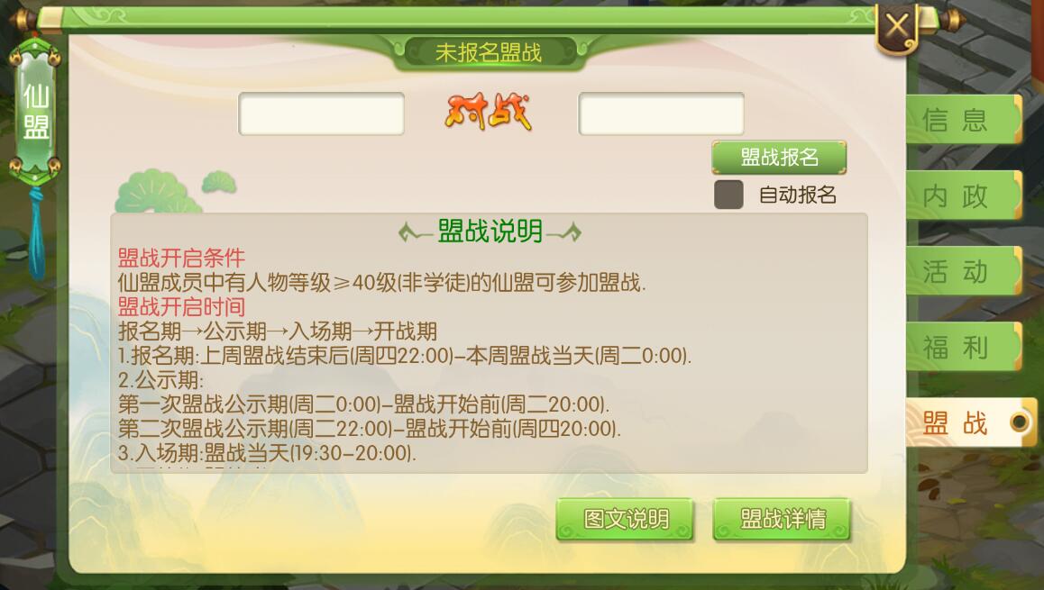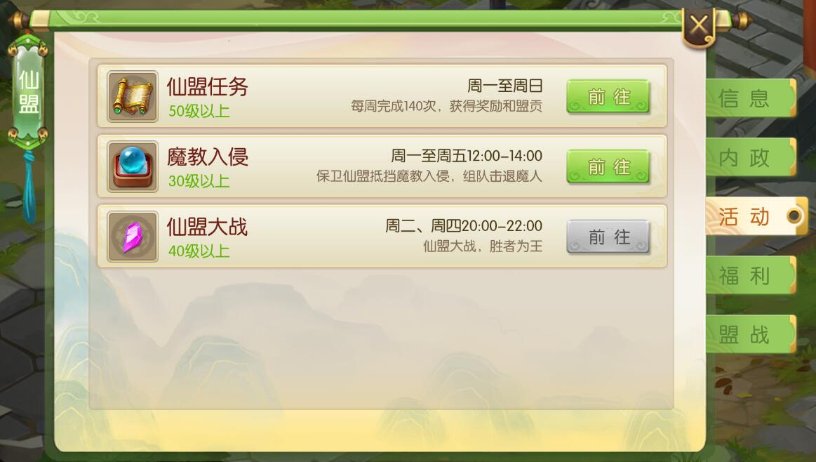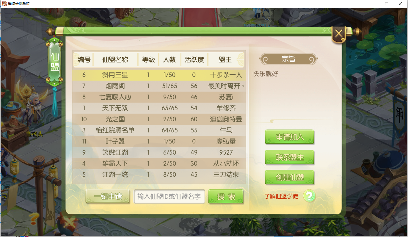 蜀境传说仙盟如何建立?蜀境传说仙盟建立需要什么条件?今天我给大家介绍一下,仙梦如何建立以及需要的条件。 仙梦的作用类似于其他游戏的帮会、公会等,仙盟的建立条件难度不是很高,进入游戏之后,会在右下角看到一个仙盟的按钮,如果你看不到那就按一下那个黄色加号看看是不是隐藏了,如果还是没有那么说明你的等级还达不到加入仙盟或者创立仙盟的地步,因此你需要达到30级以上才能看到仙盟的按钮。 点击仙盟你就可以进入仙盟列表页,这里可以查看已经建立的仙盟信息,在右边可以选择加入自己喜欢的仙盟、联系盟主或者自己建立一个仙盟也行。加入别人仙盟需要别人同意,这里就不过多介绍了,这里着重介绍如何建立自己的仙盟。 如果你选择自己建立一个仙盟,那么你需要准备60龙纹玉,这里建议首充6块钱就可以获得60龙纹玉。首充福利可以看看这里:蜀境传说首充福利>> 当你花费60龙纹玉后,就可以命名自己的仙盟名字和仙盟宗旨。这里建议写的吸引人一些,方面吸引跟你志同道合的小伙伴。 当你点击提交之后,就建好了属于自己的仙盟。下面让我们来看看仙盟里都有什么内容。 首先就是你的仙盟信息,这里可以看到你的仙盟一共有多少人,个人信息,成员信息和相关福利联系按钮。 仙盟内政,这里可以看到你的仙盟建立时间、等级、人数、维护资金、分红、等级和申请加入的人员信息。 仙盟任务,可以让你每天都有事情可以干,不同等级的仙盟任务有不同的奖励和时间要求。 仙盟福利,这就是加入仙盟的好处,仙盟的技能可以让你的人物角色变得更强大,而且也有不定时的仙盟分红,越强大的仙盟,这里的福利越高。 仙盟盟战,这里就是你的仙盟和另一个仙盟进行对战的模式,可以让你对其他仙盟进行征伐,盟战有单人战和组对战,谁最后的积分高谁就会获得胜利,而胜利会有奖励。 以上就是关于蜀境传说仙盟的相关介绍,看到这里小伙伴们赶紧找一个仙盟先加进去,至少有仙盟福利可以给你带来不小的帮助。希望本文能对你有帮助,更多蜀境传说内容,请关注叶子猪蜀境传说官方合作专区。 |