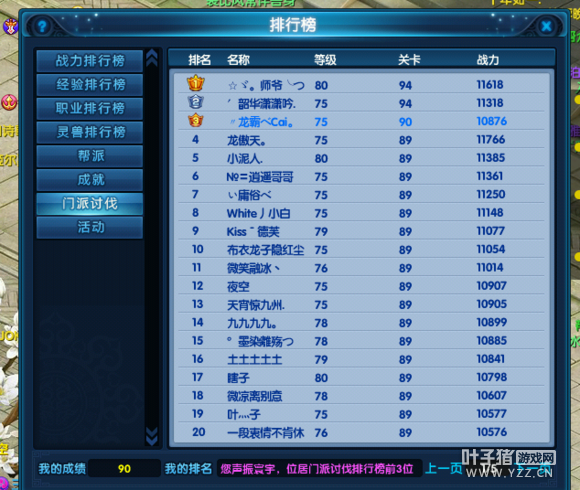重打N遍 万战龙隐艰难突破门派讨伐90关 最后都残血又没蓝了 吃药都限制了 感觉要没戏了 没想到最后和BB一起合击就过去了