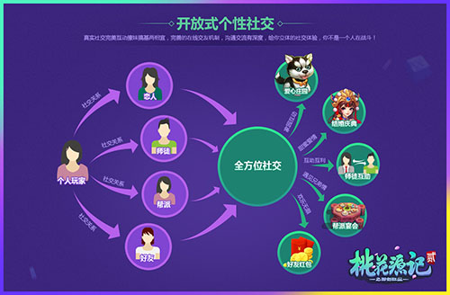 领取桃花源记2鸡祥如意礼包:http://card.yzz.cn/fahao-4794.html 开放式新派回合《桃花源记2》2017畅玩不停,恢宏浩瀚的仙侠世界,充满期待的冒险故事,还有特色的开放式交互系统,360度环形社交,轻松结交新伙伴,女神、萝莉、基友,一个都不能少!别样大唐带你体验小拳拳捶打胸口般的奇妙感觉,快来试试吧! 【开放式交互系统 四海之内皆兄弟】 社交系统作为回合制游戏的亮点,一直被广大玩家所津津乐道。开放式新派回合《桃花源记2》开创性的采用了朋友圈互动的方式,不仅可以建立讨论组,玩家们还可以通过定位功能查找当前周围的玩家以及NPC的位置,极大的帮助了玩家们进行游戏和交友,与此同时,游戏中内置的征友系统,还可以帮助玩家们公开发布征友信息,无论是找师傅还是找伴侣都是一个很好的选择哟,实实在在的让玩家与玩家之间的联系变得更加紧密! 【多系统打造真实社交 等女神来敲门】 在社交方面,《桃花源记2》更将传统观念与现代观念相融合,用极具中国传统特色的婚姻形式打造游戏内的结婚系统,亮丽的红色,花轿游街以及传统服饰等等,真实的还原了生活中的结婚形式。同时,现代观念下打造的特色同袍系统,更让好基友之间变得更加不分彼此,有趣的是,同袍玩家一样可以养育子女,培养自己的孩子,体验为人父母的感受。 在终极内测中全新推出的桃花美人认证系统,更以玩家真实身份信息为基础,并通过官方唯一渠道直达认证,曾经围绕在你身边的女神们变得更加真实,精致的美人尾标将让你轻松结识心中女神,迎娶白富美指日可待! 【360度环形交友 告别孤单从此开始】 在探索桃源世界中过程中,不可或缺的陪伴显然要比孤军奋战更加有益处。好友间的默契协作,夫妻间的相偎相守,师徒间的口传心授等等,每一份感情都将成为一个人成长中美好的回忆,这些都将成为自己未来面对挑战和坎坷时的勇气!告别孤单从此开始,我在《桃花源记2》等你哦! 叶子猪《桃花源记2》专区开始征集写手啦! 还有玩家交流群:428539572 !畅快交流,一秒嗨皮,妹子福利全都有哦! 了解更多相关信息,请前往http://www.yzz.cn/game/thyj2/ [编辑:叶子猪小秘书]