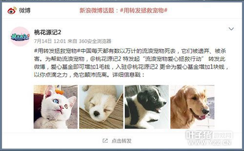 【《桃花源记2》微博“拯救流浪宠物”活动正式开启】