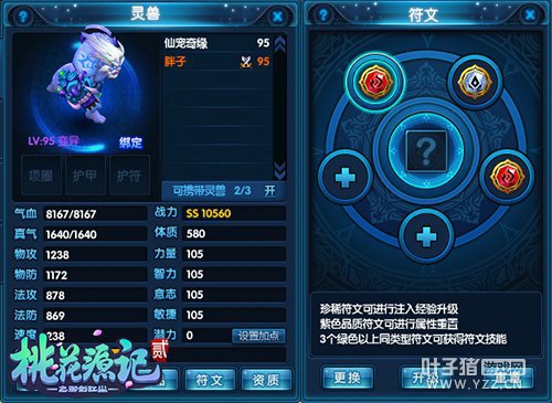 图4《桃花源记2》灵兽符文玩法 【绝美大唐情义出征 仙宠作伴勇闯桃源】 桃源世界不仅拥有令人羡艳的风景,还有灵动惹人爱的宠物们,它们分布在桃源世界的各个角落,小伙伴们可以根据自身的等级前往相应地点抓捕它们,然后对它们进行洗练和打造,使之成为自己未来征战桃源的可靠伙伴!相信在它们的陪伴下,你的桃源之旅一定会充满无尽欢乐!