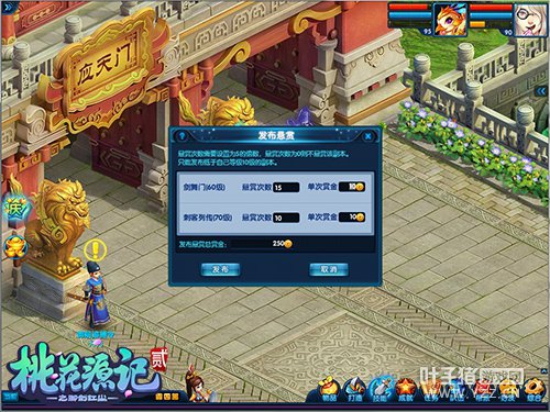 【高额悬赏 有钱任性】 为了方便小伙伴们的成长,《桃花源记2》在游戏内特别设置了悬赏玩法!没有时间的小伙伴可以到神都洛阳的悬赏御史处,通过支付一定金额的赏金发布悬赏任务,让有时间的玩家帮助自己去完成,而任务获得的经验、银子以及物品道具,也可以在悬赏任务界面上领取到哦!我出钱,他出力,轻松体验当老板的感受!