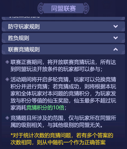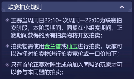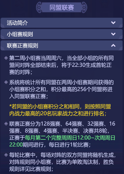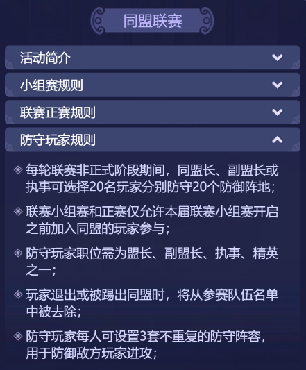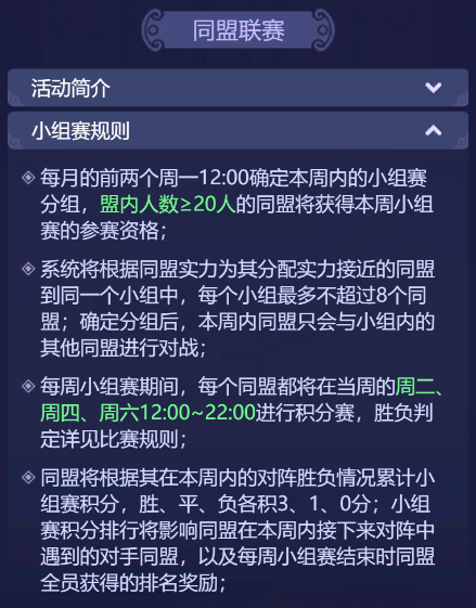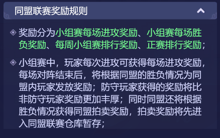 万众瞩目的同盟联赛打响啦!这是一场,汇聚众多精英玩家的盛会,也是一场,展示联盟实力的绝佳机会!小梦也翘首以盼,看看是哪个联盟,最后能问鼎冠军宝座! 本次同盟联赛也开启了全新的竞技模式,今天小梦也来给少侠们好好介绍一番啦! 1、玩法将于玩家180级、开服28天开放;加入同盟的玩家可以参与同盟联赛小组赛、正赛、联赛竞猜,未加入同盟的玩家则可以参与联赛竞猜 2、同盟联赛开始时,讲根据同盟所在的级别,每个级别独立进行相应级别的同盟联赛 3、同盟联赛共分为第一周小组赛、第二周小组赛、联赛正赛、联赛拍卖四个主要阶段: 第一周小组赛:每月首个周一12:00~当周周六22:00 第二周小组赛:每月第二个周一12:00~当周周六22:00 联赛正赛:第二周小组赛当周周日12:00~次周周日22:00 联赛拍卖:正赛第二周周日22:05~次周周一22:00 参与联赛的开启条件 和四个阶段对应的时间 少侠们要留意一下哦 小组赛规则 1、每月前两个周一12:00确定本周内小组赛分组,盟内人数≥20人即可有参赛资格 2、每个小组最多不超过8个同盟 3、每周小组赛期间,当周的周二、周四、周六12:00~22:00进行积分赛 4、根据对阵胜负情况累计小组赛积分,胜、平、负各积3、1、0分 联赛正赛规则 1、第二周小组赛当周周六,所有小组的所有同盟对阵结束后,会在22:30生成首轮正赛的对阵 2、小组赛积分最高的256个同盟进入联赛正赛(若积分之和相同,则按照同盟内战力最高的20名玩家战力之和排名) 3、联赛正赛分为8轮,为单败淘汰制 防守玩家规则 1、每轮联赛非正式阶段,同盟长、副盟长或执事可以选择20个玩家分别防守20个防御阵地 2、小组赛和正赛只允许本届小组赛开启前加入同盟的玩家参与,玩家若退出或被踢出同盟,将从参赛队伍名单中被去除 3、防守玩家每人可设置3套不同的防守阵容,防守玩家在正式开赛前可以设置防守阵容,开赛后将以设置的防守阵容进行防守 胜负规则 1、联赛正式阶段,同盟所有玩家可对敌方防守玩家发起进攻,每人每轮联赛可进攻3次 2、进攻胜利,进攻方得1方并击退敌方一套防守阵容,击败一名敌方防守玩家所有防守阵容后,该名玩家退场 3、若防守玩家退场,则有防守士兵进行防守,每击败120名防守士兵可得1分,最多可得3分 4、结束后,双方进攻得分高者胜利,若得分相同,则击败防守玩家阵容较多者胜利 联赛竞猜规则 1、正赛期间会开放联赛竞猜玩法,只要达到同盟开放条件玩家(等级满足180级且开服28天)即可参与竞猜 2、多轮竞猜期间,玩家通过兑换竞猜积分进行竞猜 3、竞猜成功会发放等值仙玉奖励,但最多不超过消耗竞猜积分的10倍 联赛拍卖规则 1、拍卖时间为:正赛当周周日22:10~次周周一22:00 2、拍卖物需使用金兰谱或仙玉 3、在首轮正赛前加入同盟的玩家才可参与本同盟拍卖 同盟红包规则 1、若本同盟在拍卖期间消耗了金兰谱拍卖,即可在本同盟开启一个仙玉手气红包 2、红包仙玉数量=本次拍卖期间消耗的金兰谱数量*10 同盟联赛奖励规则 1、分为四个奖励:小组赛每场进攻奖励、小组赛每场胜负奖励、每周小组赛进行奖励、正赛排行奖励 奖励分为三大类:小组比赛、小组排名、正赛排名 小组比赛 包含了荟英令、神兜兜、晶石选择礼包、宝石精华、金兰谱、随机强化石等好礼。 其中防守玩家奖励包含金兰谱,非防守玩家不包含金兰谱。 小组排名 奖励包含:仙玉、兽决残卷、金兰谱 甲到丙级的参赛同盟,能领取到的奖励数量会有不同,小组排名同盟内非参战玩家也可领取哦。 正赛排名 根据胜方、败方、平方 或者是正赛排名先后 获得不同的奖励 甲、乙、丙级同盟 获得的奖励也不同 除了一些常规奖励 还有入围甲级正赛三十二强内 可获得同盟拍卖奖励 1-2个金色尊享礼盒 十六强内可获得同盟拍卖奖励 1个元初勋章 二百五十六强内可获取同盟拍卖奖励 1-2泽佑勋章 元初勋章可用于在联赛商店兑换 极其尊贵的头像框——联赛战神 尊享坐骑——元初帝泽-极昼、元初帝泽-永夜以及6级晶石自选礼包 泽佑勋章可用于在联赛商店兑换 尊贵的头像框——联赛骁雄 尊享坐骑——帝泽-绛烟、帝泽-凝铁等 还有炫酷的祥瑞、锦衣、 光环、武器外观 以及6级晶石自选礼包等 少侠们,现时联赛已经开打啦!每场联赛都是一场激烈的对抗,是一场热血澎湃的战斗,更是一次难忘的游戏体验,还有众多丰厚奖励等着大家! 那么,就让我们拭目以待,看谁“战到最后”! 更多资讯,请锁定叶子猪《梦幻西游网页版》官方合作专区。 |
