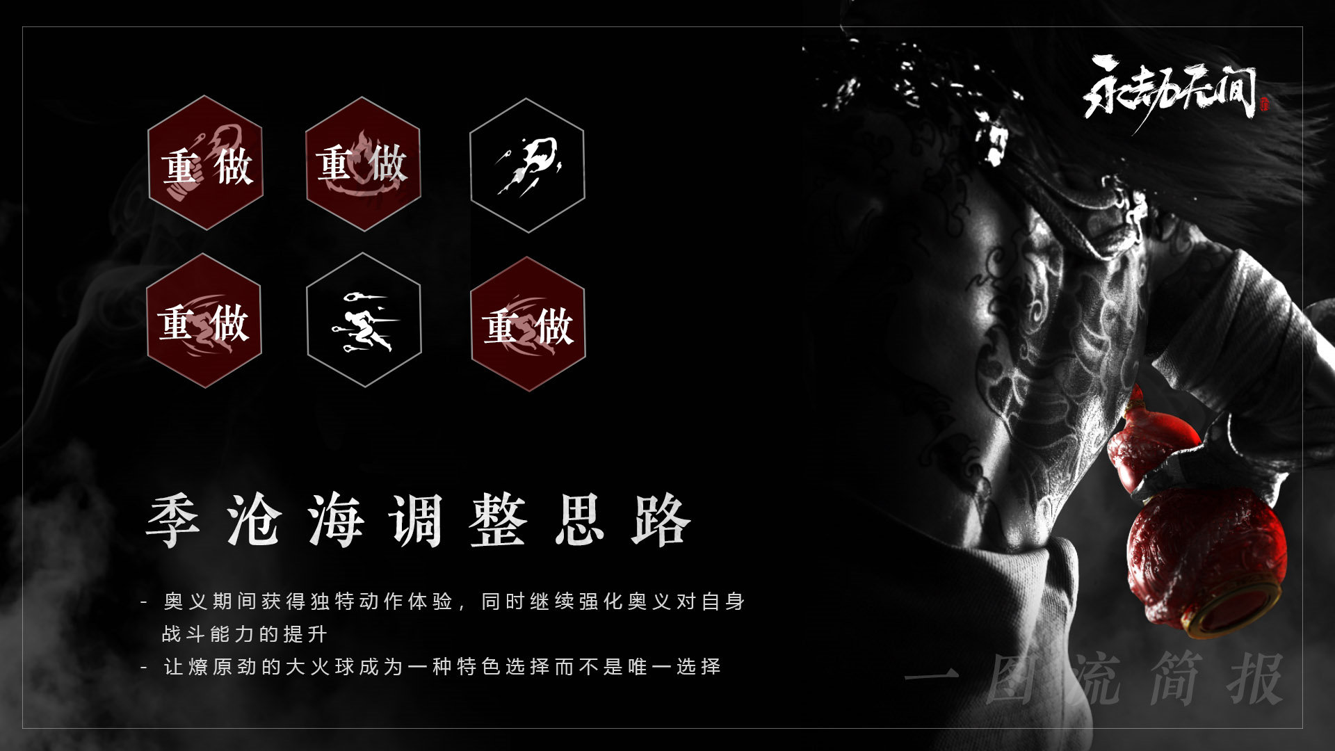季沧海在永劫无间中被玩家戏称为火男,原因是他的火系技能能对敌人造成伤害的同时还会导致无法疾跑和快速冲撞敌人造成大量伤害,因此他也成为玩家最喜欢的单排角色。在美服封闭测试的时候他就是玩家最喜欢的单排王者,然而在国服测试和首轮steam测试中,他的强度有所降低,因此官方决定对季沧海的部分技能进行调整。 官方简报: 季沧海由于奥义对自身机动力的大幅增强,在曾经的美服测试中是单排王者,而在上一轮测试中,季沧海虽然获得了炫酷的大火球,但强度却有所下降。因此我们将结合两次测试的反馈,重做季沧海的部分技能。 从官方上面这个图片内容来看,季沧海一共有4个技能将会重做,2个技能2个奥义: 重做的技能 燎原劲,季苍海打出内劲,并且对敌人造成炙热效果。 此状态下敌人无法疾跑,且受到灼伤翻倍。 燎原劲-火雾,可以在地上制造一个雾气只要进入雾气的敌人就会收到炙热效果。 重做的奥义 迅烈如火 ,以火焰内劲包裹全身击退周围敌人并且提升自己运动能力。 迅烈如火-护身,则是一个可以疾行的时候免疫所有远程子弹。 目前官方还没有给出修改的方向,但是玩家们已经按耐不住内心的策划之心,纷纷给出了留言希望季沧海的技能应该这样重做: 白空的梦:大招生成火焰领域,烫伤敌人或者减速敌人,或者给领域内队友加buff,或者让敌人不能震刀,或者让敌人精力减少之类的dbuff。 A丨mber:可以将季沧海大招改为对武器进行附魔火焰 然后也是灼烧 但武器附魔会加大你们的工作量 不知道你们愿不愿意。 爱喝奶茶的香飘飘啊:一个小建议,建议开了大之后 别人钩索不能命中。 笨笨的大笨龙:做成冰火大法师。火球打输出,冰系打控制。有CD,可切换。 ashone灰烬:f技能给武器火焰附魔,持续10s,cd你们看着办。 那位得道高僧:关于强季沧海增强 我的一点想法,1.大招霸体,开大震荡倒地时间延长范围增加,避免开大期间被集火。2.开大期间附加减伤BUFF,近战减50%,远程减50%,附加碰撞灼伤效果。3.F技能附加灼伤效果 增强输出,现有动作和技能特效不用改动,这些可以做到天赋里,既有生存,又能抗,又有输出,直接变成和和尚一样的T定位。 旁门小妖:这人物挺强的,f可以穿插在武器普攻之中,一个f不能重置普攻,但两个f正好可以,他的大招加f无cd,这并不是为了让人只用f。而是灵活运用,如果自己先手了,就穿插两个f打两套普攻,如果对面和尚变大,就跳起来无限火球,担当火力掩护,让自家队友可以快速找到掩体,躲避和尚的抓取,分割战场。 各位怎么看? 想了解永劫无间更多消息,请关注叶子猪永劫无间官方合作专区。 |