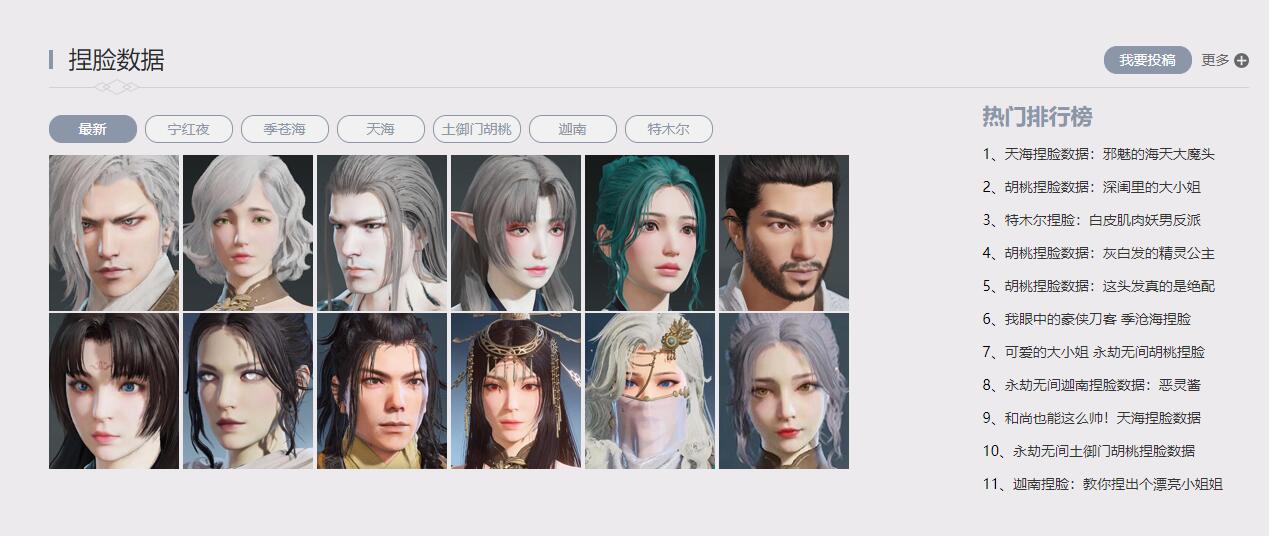 永劫无间捏脸数据哪里下 载?永劫无间好看捏脸哪里找? 想捏出好看脸,很多游戏的捏脸系统都能做到,但是能捏出另一个种族的就极少,而永劫无间的捏脸系统就是这少数之一,在内测的时候经常能看到一些玩家走不寻常的道路,把一些正经脸捏成奇奇怪怪的样子,就跟下面这些一样。 ![]() ![]() 上面的捏脸这也能侧面反映出永劫无间的捏脸系统只有你想不到的,没有你捏不出来的。 不过捏脸这东西很考验技术,好的捏脸需要大量的时间去琢磨和调整,一般人如果不了解头部肌肉结构和化妆技术,捏出来的脸可能跟你预想的会有很大的出入。而好看的捏脸能让你在体验游戏时有非常大的满足感,因此好看捏脸的需求就很大。那么这样的捏脸数据应该在哪里找呢? 叶子猪永劫无间专区就给大家提供了非常多好看的奇怪的捏脸数据分享。 目前叶子猪永劫无间专区的捏脸频道已经整理了不少好看的帅气的人物角色捏脸提供给大家下载,宁红夜捏脸数据、季沧海捏脸数据、天海捏脸数据、胡桃捏脸数据、特木尔捏脸数据、迦南捏脸数据,这些基本上都覆盖了,后面我们还会持续的更新。 而且如果你也有很多好看的捏脸也想分享给大家的话,那可以通过联系专区责编来进行分享在专区上。 想要永劫无间的精美捏脸数据,一定要关注叶子猪永劫无间官方合作专区哟。 |