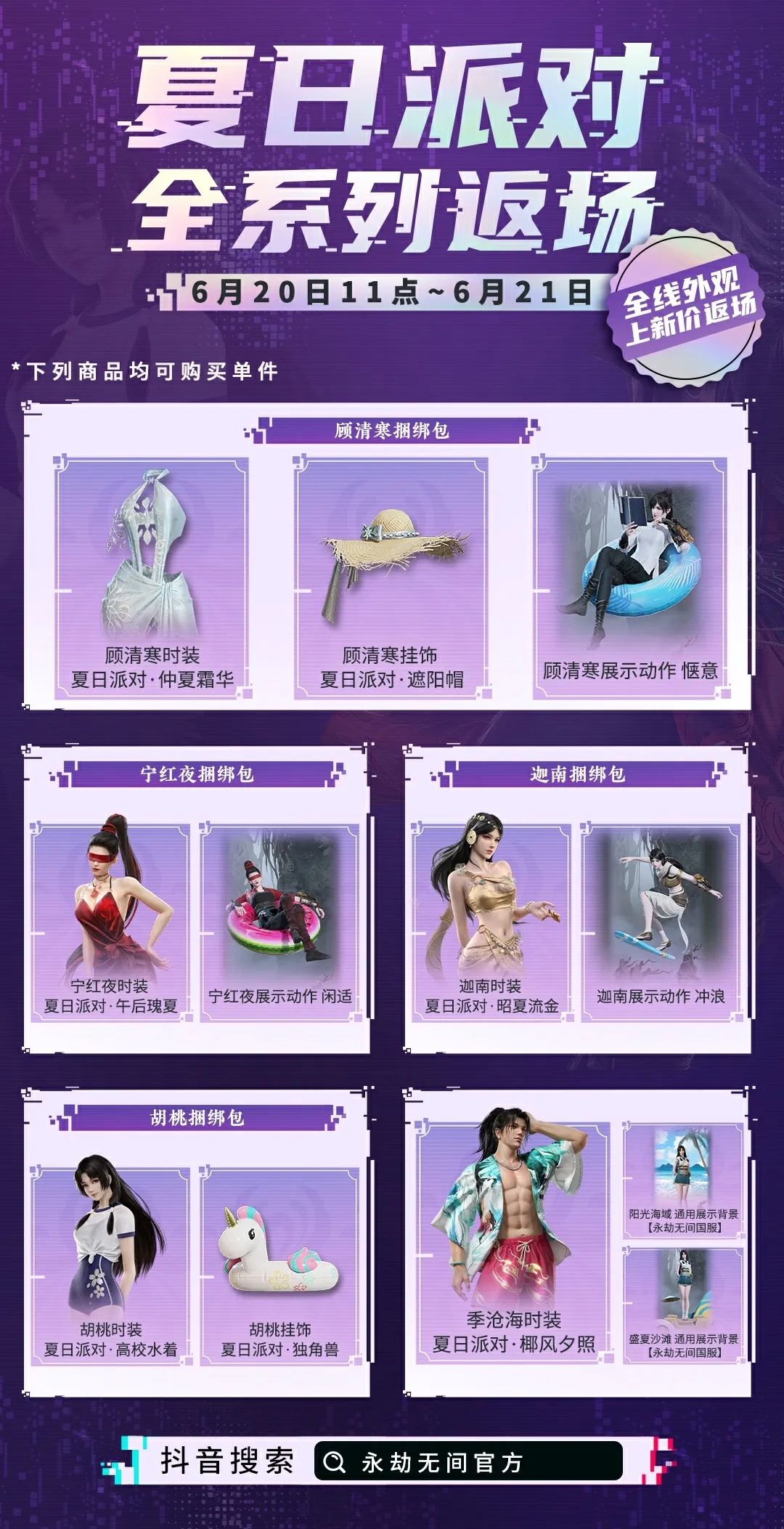 全系列返场,锁定抖音直播间! 炎炎夏日,酷暑难耐,不穿上泳装这日子怎么过呢!劫宝又带了抖音直播的第一手重磅情报——多款夏日派对系列外观限时返场! 联动课代表