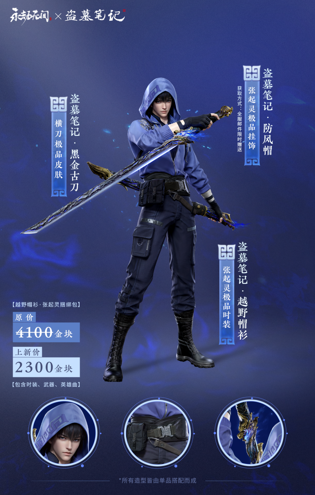 刀,是黑金古刀 人,是一袭锦衣 行,是无言麒麟 我们看到了读者与玩家们对已经曝光的形象的喜爱,与对更多设计的期待。 我们心怀感恩,将打起一百二十分的热情为张起灵打造更多可以体现他个性与强大实力的形象。 张起灵全新形象 寒星照古冢,静水深流踪。 独守千年秘,心随明月空。 永劫无间 X 盗墓笔记 张起灵全新形象【古冢行】 8月2日同步上线! 【古冢行·张起灵捆绑包】 原价:2600金块 上新价:1950金块 张起灵极品挂饰【夜露帽】 幻丝商城12000幻丝兑换! 外观展示 极品挂饰【夜露帽】实机展示 极品发型【静流】实机展示 十年里,他面对了什么。 我们不知道。 百年间,他成为了什么。 我们不知道。 但无论他是谁,是什么,身穿怎样的战袍, 手握哪一把利刃,身处哪一片战场。 他都是最让人安心的战友,最闪耀的英雄。 感谢南派三叔的认可与支持,小哥的到来不是一次简单的穿越,他有故事说与我们听。 张起灵将与永劫无间的数千万玩家一起,开启全新的冒险故事线。 这次的舞台——龙隐洞天! 下一个十年,你也将相伴。 联动皮肤 极品时装【盗墓笔记·越野帽衫】 横刀极品皮肤【盗墓笔记·黑金古刀】 8月2日上架直售! 【越野帽衫·张起灵捆绑包】 原价:4100金块 上新价:2300金块 8月2日第一件事该干什么? 上号看邮件! 8月2日-9月2日期间登录游戏,还将收到来自小哥的神秘来信,不仅会将【盗墓笔记·防风帽】赠送给各位英雄,还会有其他惊喜哦! 错过小哥来信的劫友们也不用担心,【盗墓笔记·防风帽】将于8月2日同步上架幻丝商城,不容错过。 而在明天也将公布张起灵另外一款全新外观的实机演示!敬请期待吧~ 联动机关 与盗墓笔记的联动可不止皮肤哦~我们还设计了联动机关!跟劫宝一起来看看吧! 鬼玺 鲁殇王藏于紫玉盒子里的宝物,可调令阴兵借道,交互后法阵内生出一定数量鬼手,阻挠着试图拨开这片迷雾的人。 【鬼玺】开启对敌法阵 青铜神树 直插云霄的青铜神树,据说拥有让人梦想成真的能力,却也警惕着外来者的入侵。交互后开启对敌法阵,让靠近的敌人陷入迷幻状态。 【青铜树】开启对敌法阵 青铜门 通往未知的青铜门,沉默地守护着古老的秘密。当张起灵靠近时,或许方能一窥其中奥秘...... 青铜门 青铜面具 青铜面具 获取方式:宝窟或飓风客 使用效果:携带青铜面具,被击败后魂冢自动回复。 被击败后魂冢自动回复 不止联动 赴约稻米 赴约是长白山深处的飞雪,重逢是千万次心之所向的永恒。 8月3日,永劫无间也将正式参展稻米节!欢迎各位劫友和稻米们来线下捕捉我们,领取限定好礼~ 什么?你问上次CG结尾浅浅亮相的白发张起灵去哪儿了?别急!明天就给大家揭晓! 各位英雄对此次联动和活动是否满意呢?新英雄张起灵现已上线测试服,8月2日正式上线! 更多爆料内容请关注叶子猪《永劫无间》官方合作专区。 |