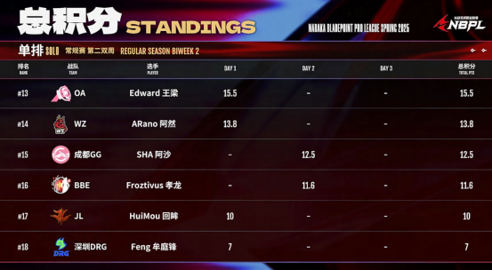 是谁!在赛场上频频骚扰“裁判”? 是谁!丝血反杀还能冷静自持? 又是谁!竟被水友打得吱哇乱叫? 春季赛第二双周火热开赛中,选手们在赛场上制造了一个又一个“名场面”。 新人崭露头角,老将卷土重来。周决名额的争夺也已进入白热化。 跟劫宝一起来看看吧~ 一周亮点速递 新人?老将?谁更胜一筹? 赛场“骚扰”裁判, 既是显眼包也是最强新人! 上周比赛中,阿照通过连续振刀打赢回阳镜后,被自己的操作帅到,竟然频频转头“骚扰”起裁判。 阿照赛场“骚扰”裁判 素材来源:抖音@Alliance战队永劫无间版 帅不帅?嗯?帅不帅?本来上班就烦... 而作为今年刚进入NBPL的新人小将ALL.Azhao(阿照),在整个春季赛中展现出强大的综合实力。总共7次战神的傲人战绩,让前辈们压力倍增。 前有弓箭破磐,现有火炮碎甲。 宣园告诉你谁才是远程的king 去年夏季赛,ASE.xuanyuan(宣园)表演的一手弓箭破磐还历历在目。 宣园弓箭破磐石 而上周的比赛中,他与ALL.Azhao(阿照)回阳相遇。宣园单凭五眼铳和火炮的双切,依靠远程就将对手压至残血。 宣园远程压制 这波操作再次坐实了宣园远程King的地位。 被振起手! 极限血量的完美博弈! SR.Spider(小蜘蛛)在摆脱开赛前两天的低迷状态后,一直保持着较高水平的发挥,周决赛场上也仅以0.4分之差错失周冠。 而在上周他与TE.WuFeng(无风)决赛圈上演精彩博弈,残血开出奥义,飞盾连续命中,最后极限反杀让观众直呼“这就是双骄的大心脏”。 小蜘蛛丝血反杀 大佛魅力时刻! 决赛圈三连双抓终结比赛! 上周比赛中,JL.1Feng(晚枫)在一场决赛圈种化身无情收割机,变身大佛连续三次双抓将OA战队和深圳DRG的选手打得溃不成军,最终配合队友拿下战神! 晚枫连续双抓 周决名额争夺ing 单排 上周战罢,单排小将ALL.Azhao(阿照)以51.2的高分领跑积分榜。 YZG.T225(二二五)和深圳WBG.Verse(周子耀)紧随其后。 而OUG.Mike(麦克)和SR.Spider(小蜘蛛)分别以单日30.1和32.6的傲人战绩,提前拿下了周决门票。 深圳DRG.Feng(牟庭锋)则状态不佳,仅以单日7分的成绩位居末尾。 三排 ASE战队以137.2的高分断层第一,SSONE、SR、成都GG等战队也都有不错表现。 JL更是在三排常规赛Day2的比赛中,豪取3局战神,拿下单日90.9的高分。 而上周遗憾无缘周决的成都Wolves,也及时调整状态,交上了首日63分的及格答卷,期待他们重回巅峰! 不难看出经过第一双周的调整,选手们的状态都在逐渐回暖啦! 本周四、周五将会举行第二双周最后一个常规赛。劫宝预测单、三排周决分数线分别在35和90分左右。 有趣的是,在麦克提前锁定周决门票后,OUG战队为满足粉丝心愿,决定派出OUG.KaiBao(凯豹)出战终日常规赛。 不知这位阔别赛场已久的豹将军,给我们带来的是“名”场面还是“冥”场面呢? 周决看点 夺冠大战一触即发 单排: 魔王回归,准备迎接双骄的怒火 OUG.Mike(麦克)在第一双周周决中发挥慢热,直到最后一局才化身通天老虎,接连淘汰多位赛点选手;而SR.Spider(小蜘蛛)则是在最有可能拿下周冠的时刻,以0.4分之差失之交臂。 憋了一肚子气的双骄在上周常规赛都有惊艳表现,期待他们周决的发挥! OUG.Mike(麦克) SR.Spider(小蜘蛛) 三排: 豪门重组or黑马逆袭? ASE战队自从本赛季从TE战队引入选手Han(小韩)后,两个双周均有不错表现,上周更是高分登顶积分榜。 与之对应的则是JL战队,第一双周以#11的成绩惊险晋级周决。但却在上周化身黑马,单日豪取90.9分,这一次誓要拿回属于他们的一切! 这对重组豪门和逆袭黑马的对决,势必将在NBPL赛场上掀起腥风血雨! ASE战队 JL战队 飞刀即将登陆NBPL 水友挑战赛高手频出 新武器飞刀和专属百战系列赛事皮肤——【百战·惊锋】现已上线。并将于第三双周登陆NBPL职业赛场。 4月1日晚,OUG.Mike(麦克)、SR.Spider(小蜘蛛)、OA.Edward(王梁)、YZG.T225(T225)和深圳DRG.Feng(牟庭锋)在直播中开启飞刀挑战赛。 选手需在只能使用飞刀的情况下接受水友挑战,战败则送出赛事皮肤或宝箱奖励。 挑战赛中高手频出,尤其是Mike的“麦家军”,各种拳切、冠军连招打得掌门人Mike吱哇乱叫,眼神中都是对水友的认可。 麦克大赞水友 |