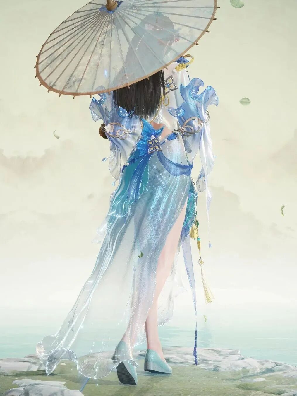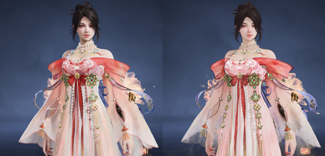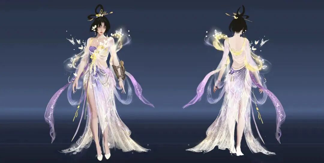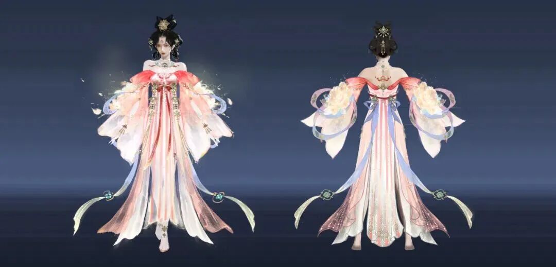 自从【倾国倾城】系列外观上线后,就在英雄们中间激起了不小的波澜—— 劫宝不禁好奇,这套时装为何能引来如此多的驻足与珍视? 是沉鱼的羞赧,落雁的孤傲,闭月的凄美,还是羞花的华贵击中了你们?大家的每一条反馈,都为我们揭示了答案:或许是那抹终于照进实战的,“活的”东方浪漫。 今天,就让我们从这些热爱出发,揭晓这份“心动”的设计始末。 以东方美学,凝美人风骨 殷紫萍【倾国倾城·沉鱼】 清水芙蓉,鱼沉碧波 秀色掩今古,荷花羞玉颜。 ——唐·李白《西施 / 咏苎萝山》 首先是殷紫萍的西施主题时装。本款时装的设计灵感源于西施“沉鱼”之美的古老传说:相传西施在河边浣纱时,鱼儿看到她美丽的倒影,甚至都忘记了游泳,慢慢地沉到了河底,从此她“沉鱼”的代称就开始流传开来。 我们也正是取了这一意象,将时装的整体色调定为蓝色,结合传统的曲裾形制,旨在展现出视觉层次感与水的灵动之美,并且在裙摆上还设计了波光粼粼的效果,来模拟水面的涟漪。 点击下图查看更多设计巧思 衣襟、袖口和裙摆等处,都采用了波浪形的曲线设计,展现出水流一般的动态感与柔美的韵律。 裙身多处采用波浪形曲线设计 波光粼粼的裙摆净显灵动 她胸口上的装饰则是以竹编材质的荷叶与荷花作为主要的视觉设计点,传达出自然、清新的感受。 以竹编材质的荷叶与荷花装饰胸口 时装袖口镶嵌着细密的碎钻,水滴状的点缀设计,强化了水光闪烁的质感,增添了一些华丽感。 袖口点缀水滴状的细密碎钻 而腰部运用的捏褶工艺,则呈现出交织的渔网纹理,呼应西施浣纱的本源身份。 腰部渔网纹理诠释捏褶工艺 我们还在时装的肩部设计了动态的水流和鱼群流动的特效,进一步去强化“沉鱼”这一主题,也为时装增添了很多灵动感。 肩部动态的水流和鱼群呼应主题 顾倾寒【倾国倾城·落雁】 风华绝代,落雁惊鸿 画图省时春风面,环佩空归月夜魂。 ——唐·杜甫《咏怀古迹五首·其三》 接下来是顾清寒的王昭君主题时装。这一套的设计灵感取自历史背景和民间传说,突出其“落雁”之美与和亲公主的传奇色彩,将汉朝宫廷的华贵与北方草原的苍茫结合,强调其清冷孤傲、坚韧大气的形象。 点击下图查看更多设计巧思 配色上,我们采用了深入人心的红白经典搭配,并结合顾清寒“冰雁”的形象,在白色衣裙的剪裁上使用了羽毛元素和汉式交领的宽袖设计。 裙身采用红白经典搭配 而时装的专属发型上,我们搭配了玛瑙珠串流苏,模仿汉宫步摇与草原头带的结合,来体现这个历史人物特殊的身份:既有宫廷女子的优雅,又有草原女子的活泼。 发型用汉宫步摇与草原头带相结合 后来我们为了让整体时装看上去更有昭君出塞的感觉,还给这个时装加上了一个红色的兜帽。在游戏中,大家也可以自由选择是否显示兜帽以及披风。 兜帽及披风体现昭君出塞的民间传说 顾清寒挂饰【倾国倾城·春风面】 在不显示披风的情况下,可以完整地看到里面白裙的设计。在概念图里,我们原本是做了长袖的样式,但是后来在制作的时候考虑到和披风之间的穿模以及手感问题,就缩短了一些袖子的长度。 不显示兜帽及披风的效果 恰到好处的袖长 披上披风之后,你会发现披风上暗藏着雁群的暗纹,在光影下若隐若现 ,呼应“落雁”的典故。 暗藏雁群暗纹的披风充满华贵 而下半身裙摆层叠如塞外风雪,动静结合,用霜花和风雪特效体现出角色的孤傲气质。 裙尾增添霜花和风雪特效凸显人物孤傲 迦南【倾国倾城·闭月】 薄衣轻纱,花容月貌 一点樱桃启绛唇,两行碎玉喷阳春。 ——明·朱权《【越调】白鹤子·咏貂蝉》 迦南的貂蝉主题时装,它的设计灵感源自西汉著名文物“素纱襌衣”,以轻盈的薄纱为主体,叠加不同的华丽材质,凸显轻盈和柔美。一袭紫白霓裳,似貂蝉惊鸿落世。灵蝶绕衣,停在衣袂与青丝,轻纱流转间,玉颜如黛。 点击下图查看更多设计巧思 在剪裁上,我们大胆地去凸显“貂蝉”和“迦南”的性感,相较其他三位美人这套时装有着相对更高的露肤度。整体的配色以黄色和紫色为主,传达出在花园中赏月这一气氛,紧扣“闭月”的典故: 整体传达花中赏月氛围 色彩精心调和的一袭薄纱 她胸口的淡黄色抹胸被动态特效的蝴蝶遮蔽,也犹如荫蔽的皎月一般,贴合“闭月”的主题。灵蝶绕衣的特效,也为这套时装平添了一丝仙气: 灵蝶绕衣的特效装饰如同锦上添花 玉玲珑【倾国倾城·羞花】 锦绣衣香,天姿国色 云想衣裳花想容,春风拂槛露华浓。 ——唐·李白《清平调·其一》 最后是玉玲珑的杨玉环主题时装。取海棠嫣然,承玉环风华,红白渐变的长裙,以金线为丝,以海棠为饰,薄纱交叠,衣袂微动间再现大唐的绝代风华。 点击下图查看更多设计巧思 考虑到杨贵妃的历史时期,我们以唐风襦裙作为时装的基础版型,并融入了一字肩和低胸剪裁,希望能通过这种方式去体现她高贵妩媚的气质,以及大唐的开放和繁华。 充满时代色彩的襦裙 在配色上,我们使用了大胆的粉色作为主色调,点缀着淡紫和淡金色,丰富整体色彩,希望玩家能有不同以往的唐风新感受。 配色在和谐统一中又不失丰富层次 抹胸融蕴唐风且凸显高贵妩媚气质 而背面袖子上的两朵岩彩动态绽放特效的“牡丹”作为点睛之笔,则呼应着“羞花”这一主题。 动态绽放的牡丹定格神韵 以水墨晕染,邂逅绝色倾城 为了能