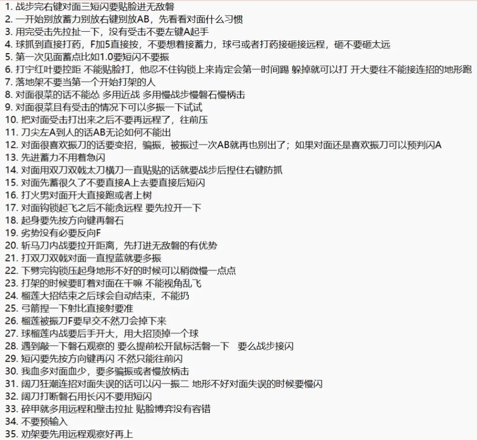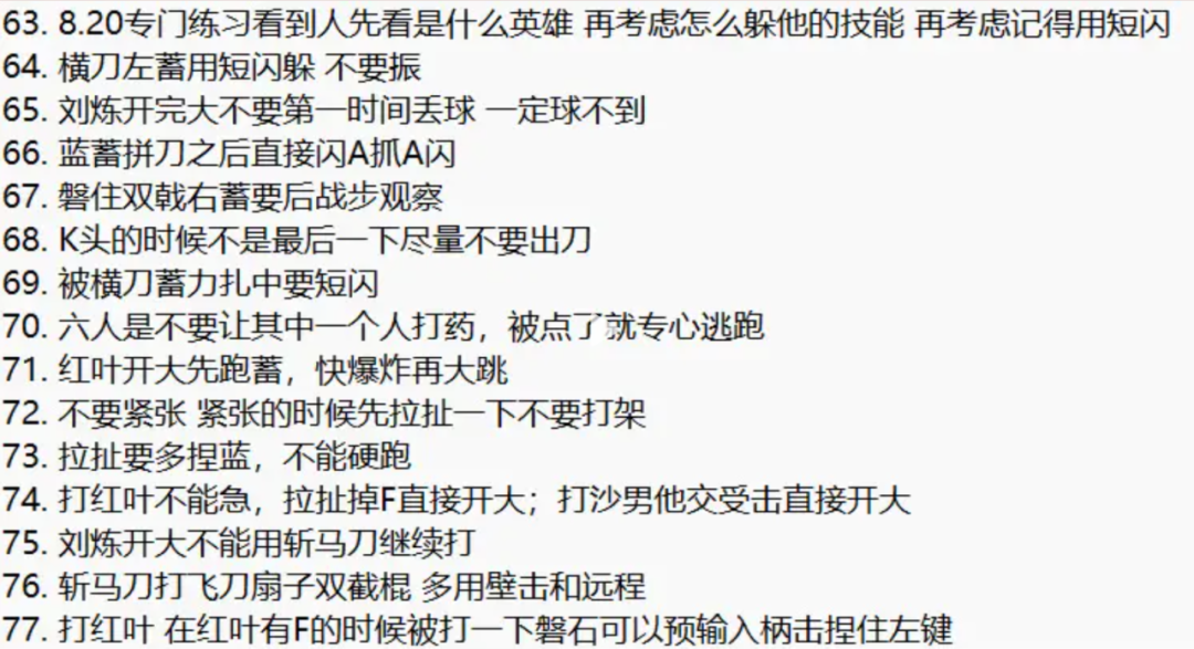 【绝密】万钧行镖杂录手稿 11月30日 近日,那裂隙门后突生的异变闹得聚窟洲不大太平,万某不得不到门后走这趟险镖。 只见病院内静坐着一位陌生的女子,其穿着打扮与周围格格不入,身后的墙面被她刻画出“星辰”样式的抽象图案。 这位女子究竟来自何处?为何会与万某要找的人如此相似...... 裂隙门失踪诡案,门后之人竟是...... 敬请期待后续爆料! 关于斩马刀的技巧,你都知道多少呢? 有细心的英雄看直播就整理出了77条实战技巧,快来把焚诀学回家! 你看的直播我看的直播好像不一样?~同样看过几个斩马刀绝活主播,你还不知道“球弓”刘炼和斩马刀怎么玩? 今天劫宝就整理了克烈同款的几个斩马刀小技巧,还有“球弓”的结合运用,特地分享给大家,让我们一起来学习下万分泰斗的实战思路吧—— 焚诀一:“球弓”刘炼必养成的好习惯 所谓“球弓”刘炼,指的就是克烈在单排时经常使用的一个组合:V2(奥义二)刘炼搭配弓箭。 这个搭配的精髓就在于,当刘炼使用【流金核】捉住敌方后朝空中释放,可以在对方下落的过程中通过弓箭不断击中头部,以达成直接击杀的效果。 素材来自抖音@般木s 斩杀线到了! 这里劫宝给大家简单介绍一下提高“球弓”命中率的要领: 视角要抬到最高,先切出弓箭后再按两下跳跃键(二段跳)朝空中释放敌人,由于弓箭的飞行轨迹不同,射击时可以偏左一些去瞄准。 在自身状态劣势的情况下,【流金核】命中敌人后立马按5/6键(凝血丸/护甲粉末)打药,先别急着砸出哦~ 这种情况建议大家抓取的F(开启奥义后的小技能)和打药键一起按,防止后续来不及砸出敌人! 焚诀二:斩马刀博弈小技巧 利用好斩马刀独特的磐石和战步机制,可以在实战中给敌人造成不小的心理压力。 但你的斩马刀一拿到手里就显得整个人很笨重?一起来看下克烈是怎么使用他这把“专武”的吧—— 磐住后柄击不直接放 可以战步接右键 捏住右键蓄力时被对方打出磐石后,如果直接点按闪避进入战步状态接左键释放柄击,很容易被敌人目压振刀。 素材来自抖音@搞笑的涛弟 这个时候我们就可以选择战步后点按右键,如果对方继续攻击还可以持续磐住,否则就要挨我们一刀,攻守皆为优势~ 刀尖A(平击)到人 不能立马接A或B(纵击) 由于重刃和其他武器不同,第二下普攻即为蓝霸体攻击,因此斩马刀的刀尖A到人后直接接A(平击)或B(纵击)很容易被目压,不建议直接出哦! 大家可以和上一条结合运用,A(平击)到后捏住蓄力骗振再出,让对面摸不着你的出招习惯! A(平击)接右键下劈 可以防对方捏蓝(出蓄力) 对于被打出僵直后喜欢捏蓄力的对手,用这招就可以很好地防止对面捏蓝进蓄力! 素材来自抖音@搞笑的涛弟 需要注意的点在于,必须是在人物跑动状态下释放的左键A(平击)才可以哦! 多用右键蓄力施压 克烈在左键A(平击)到对方一刀后还有一个习惯:紧接着捏住右键蓄力给对方上压力。 素材来自抖音@捏克牛 这个时候就可以观察对手的反应采取下一步动作——骗振成功对面就要吃高额伤害!需要注意不能出容易被目压的右蓄1.0(一段蓄力)! 焚诀三:部分武器特殊应对方法! 前段时间职业选手BBE.Froztivus(孝龙)向克烈请教斩马刀打法时,克烈还道出了斩马刀应对部分武器的一些不为人知的小技巧。 这里劫宝给大家码住,大家快拿小本本记好,下次实战咱们直接靠信息差取胜! 双持武器和短兵器 当你的斩马刀刚好进入磐石架势时,对方又刚好使用双持武器(双刀和双戟)或短兵器(扇和匕首)的下劈攻击打在磐石上,别害怕,反击直接出! 素材来自抖音@捏克牛 双持武器和短兵器的下劈攻击打在磐石上,是来不及振刀或闪避掉磐石反击的哦! 飞刀3B(纵击第三下) 可磐住后闪振 斩马刀磐住飞刀右键2A(第二下纵击)后,立马按闪避进入战步架势后接振刀可以振掉第三下蓝霸体攻击,很多人还不知道这条小细节~ 素材来自抖音@捏克牛 不过这条的反制措施也很简单,只需要将飞刀的最后一下蓝霸体攻击转向身后释放即可,比较考验反应力。 对付长兵器2A(第二下平击) 直接出柄击 长兵器(棍和枪)的2A(第二下平击)打在斩马刀磐石上时,我们可以直接闪避后出柄击,百分百能抓到对方僵直! 素材来自抖音@捏克牛 焚诀四:玩斩马,控距很重要! 那么问题来了,这样看下来斩马刀似乎不是一个很擅长猛攻的武器,为什么克烈用它却能保持如此高的胜率呢?答案就在于——控距。 敌退,则远程消耗! 经常看直播的英雄会发现,对手一旦拉开距离,就会被克烈用远程武器消耗至血条见底,最后被迫与之正面对抗。 素材来自抖音@烈氏春秋 近身打,斩马刀可以给足压迫感;远了些,则用远程武器不断消耗;更远则用飞索钩回,让对方无所遁逃——这就是克烈的核心打法。 大家在实战中不妨也试试套用这个公式,控好距离,让远程武器成为你的第二进攻手段~ 壁击才是舒适区 另外,与其他武器相比,斩马刀的壁击更有优势: 它的壁击相较于其他武器伤害更高,后摇更小,命中后可以直接衔接右键,伤害爆炸,或者无缝衔接闪避或振刀哦! 素材来自抖音@搞笑的涛弟 并且斩马刀在屋檐释放壁击可以向前飞砍,其他武器则会被卡住。在房区追击或逃跑时,斩马刀都是不错的选择。 素材来自抖音@搞笑的涛弟 我身无拘,武道无穷。在这片江湖中,相信你也曾被某个“高手”所触动,为TA们的绝活技巧所停留,劫宝相信大家都能融会贯通,最后找到属