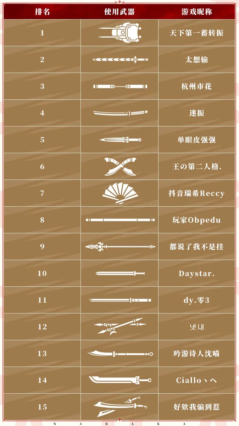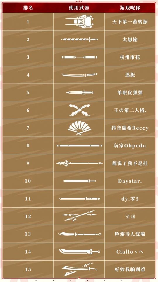 决战紫禁之巅第二赛段已经结束,恭喜—— 使用拳刃的 天下第一蓄转振 以94%的胜率成为 天下第一! 根据劫宝上次的统计,仅有4.44%的英雄选择了拳刃会成为天下第一使用的武器,有谁猜中了快举手! 百兵谱完整名单已出—— 虽然排行榜上其他英雄没有获得天下第一,但也是代表武器的第一,实力不容置疑 |